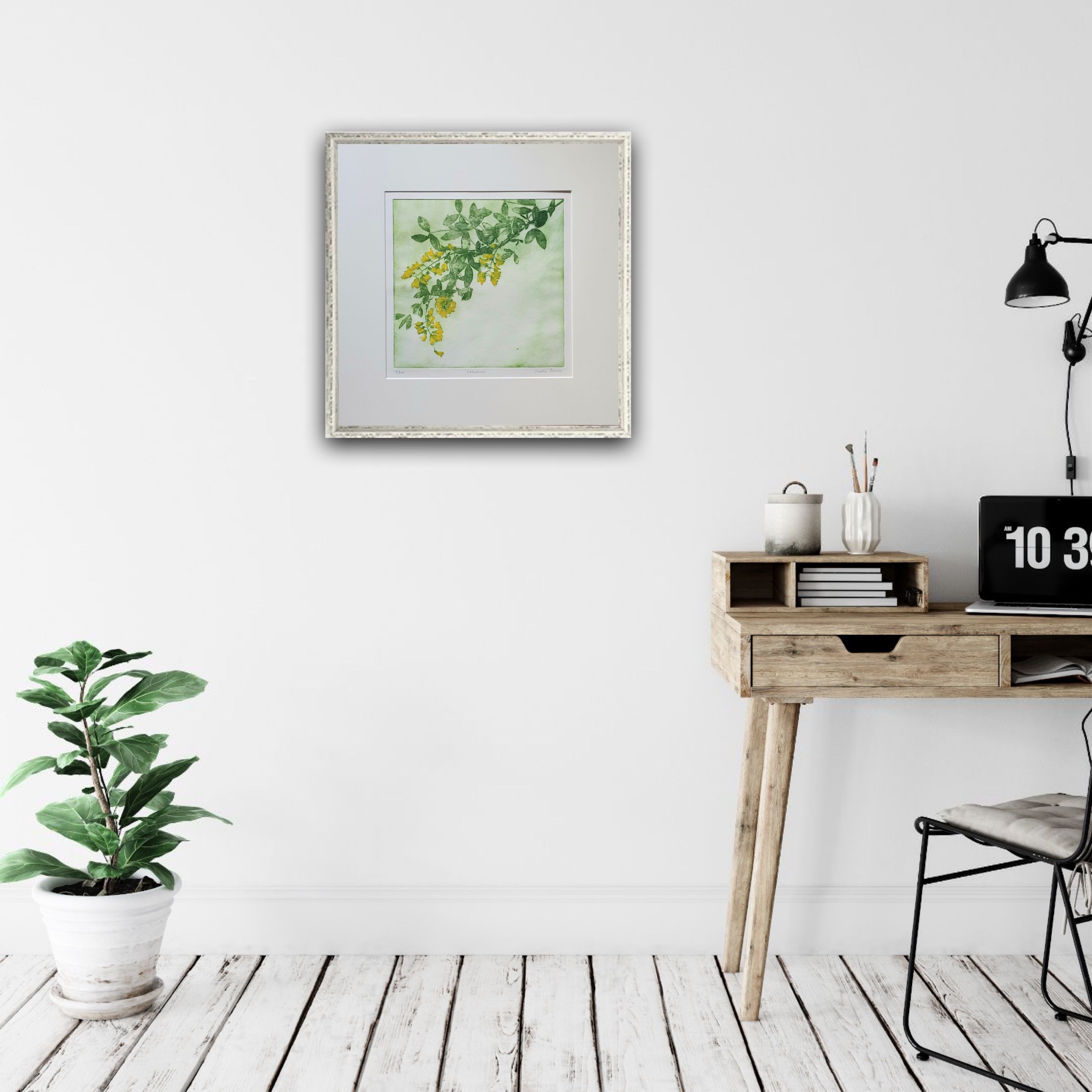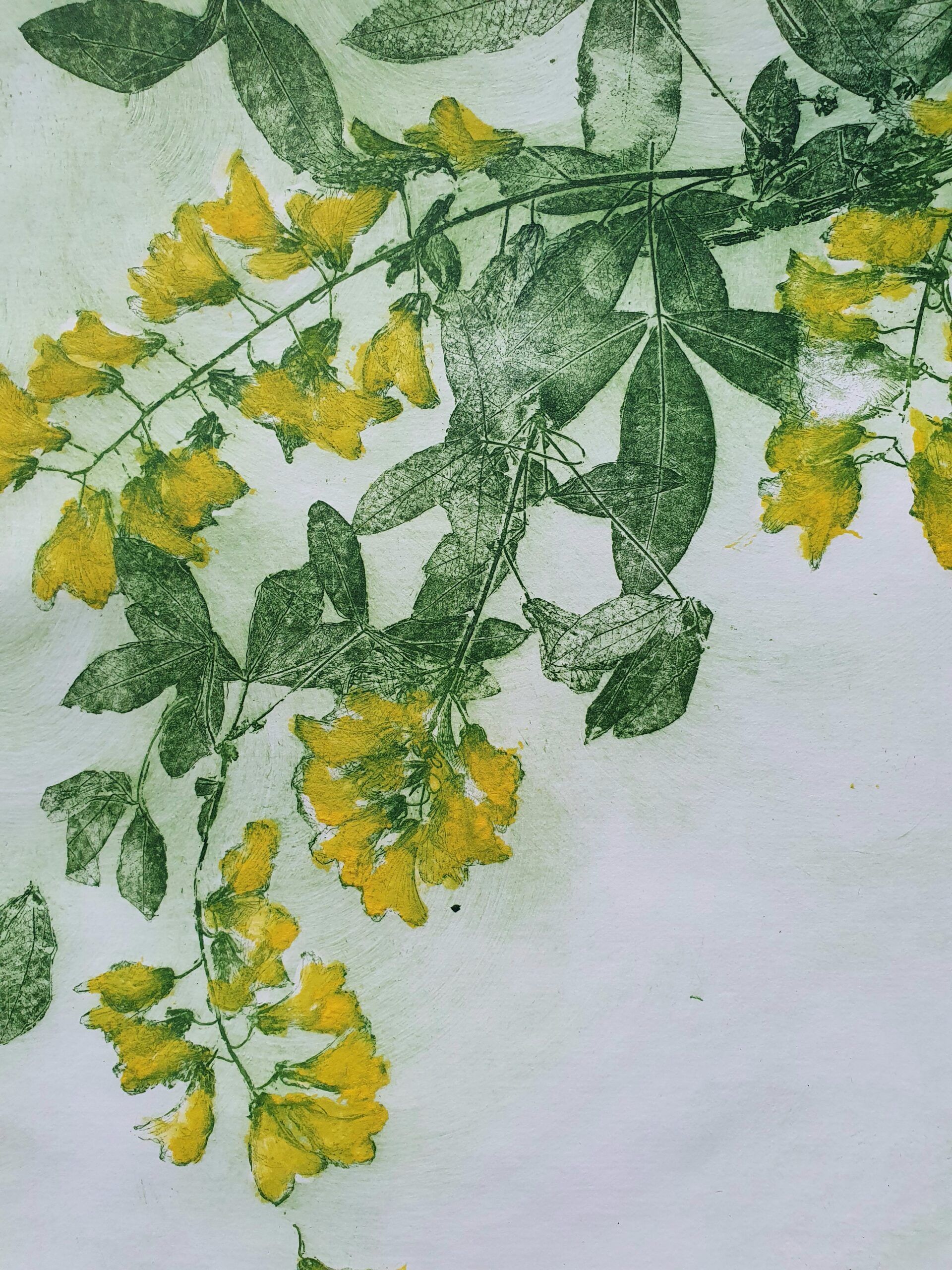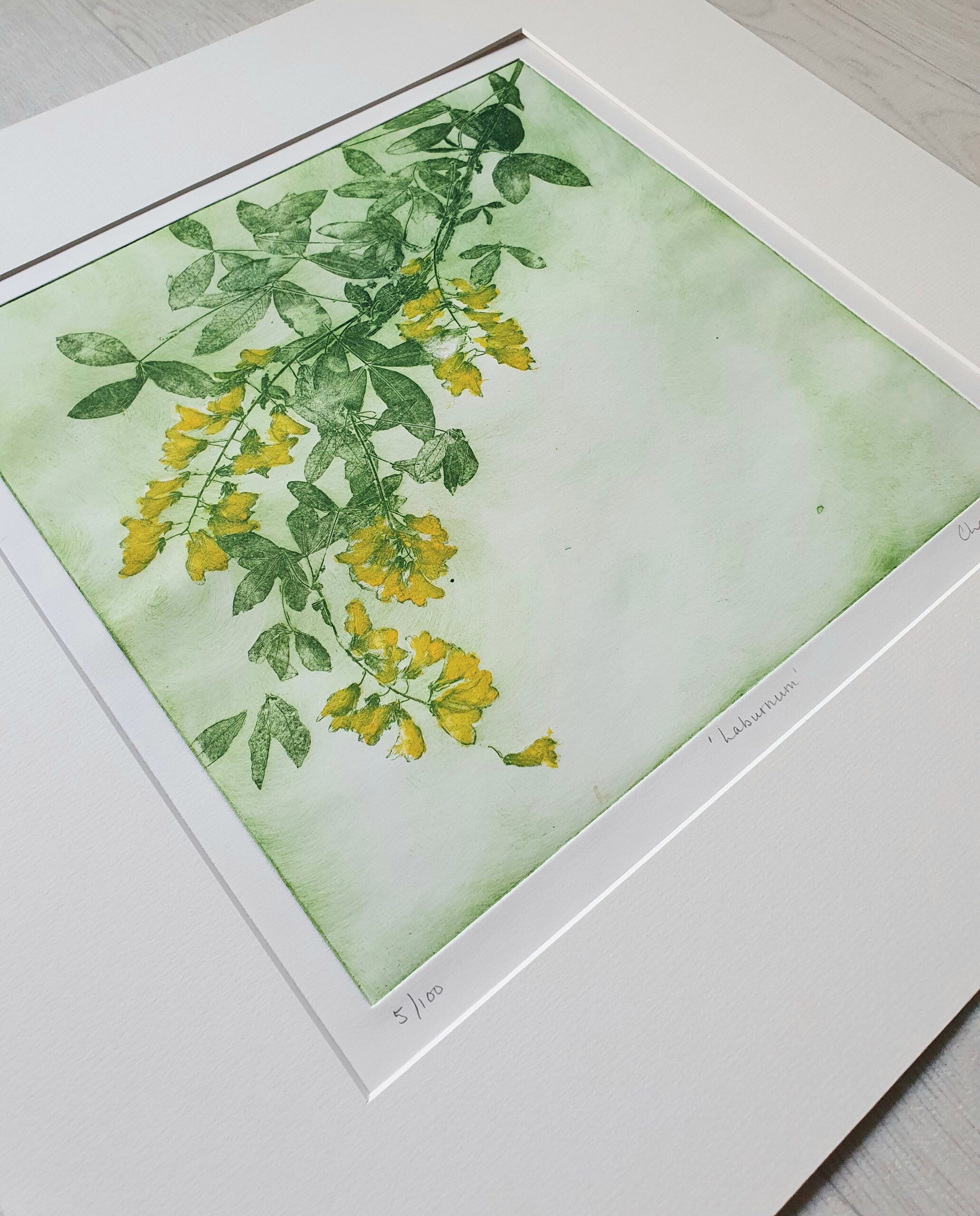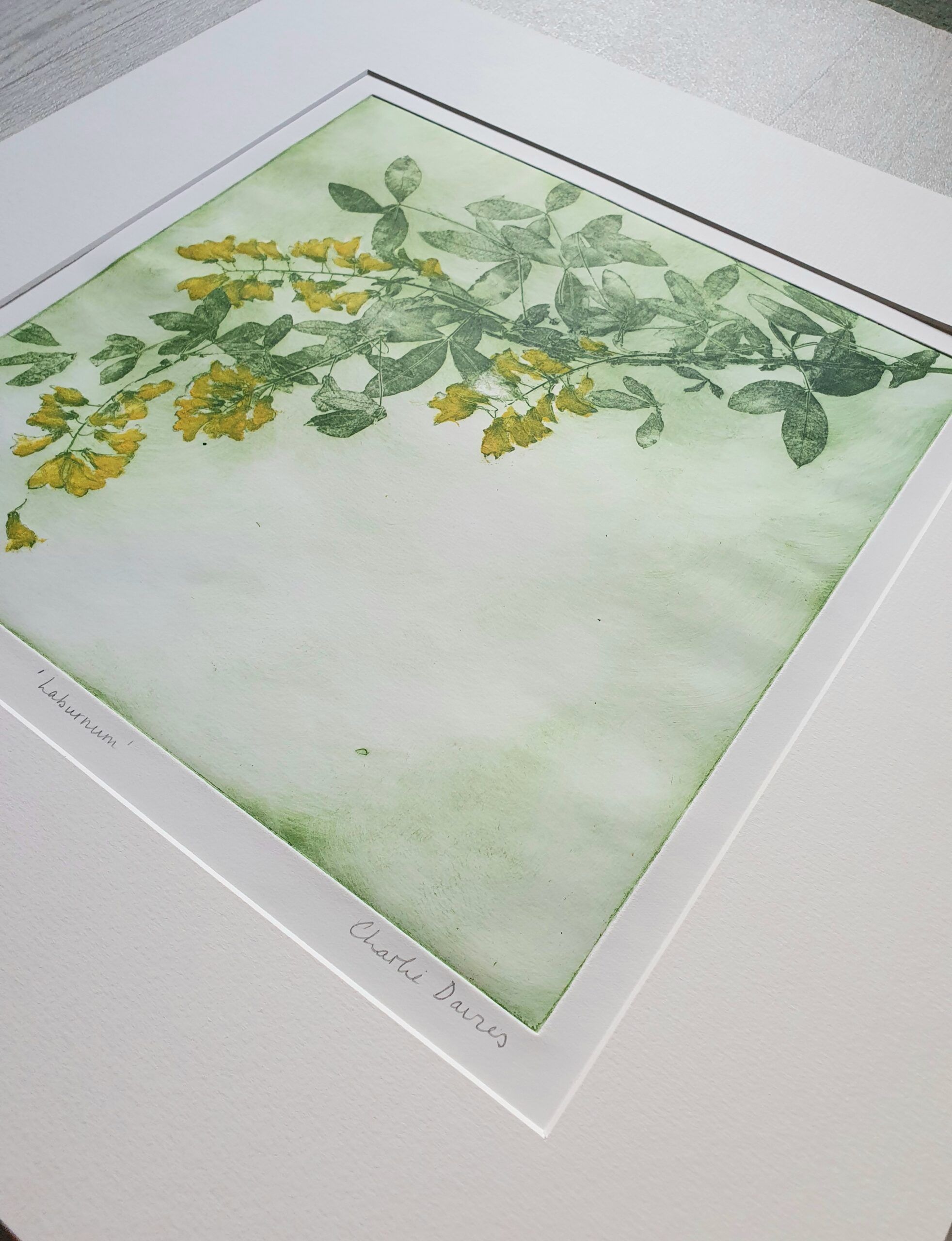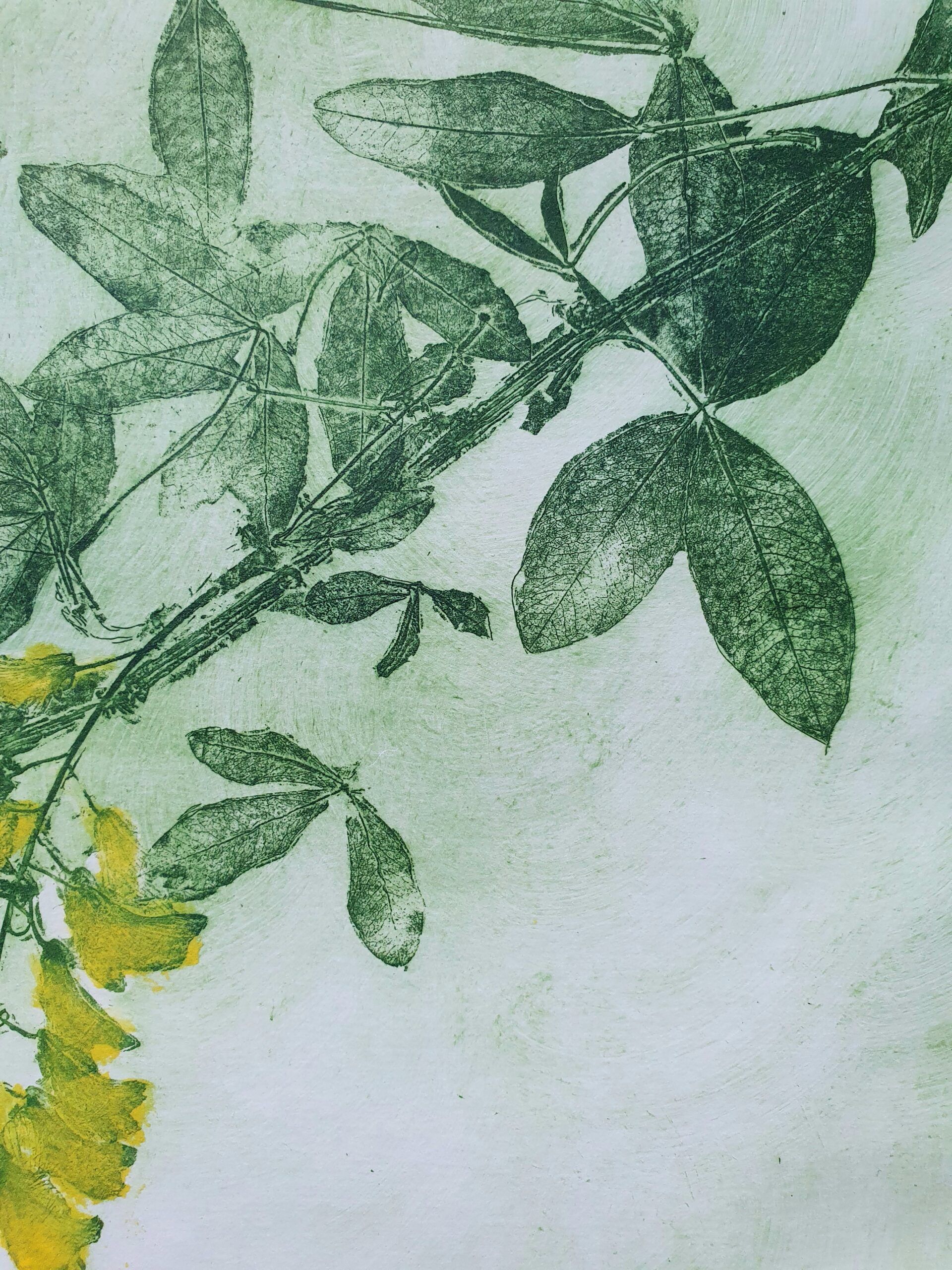 This soft ground etching was made using natural plants. ADDITIONAL INFORMATION: This print is a variable edition of 100, so each print is unique. Printed with etching inks on Fabriano paper. Please note that insitu pictures are just an indication of how the art work might look Please also note the sheet size may differ