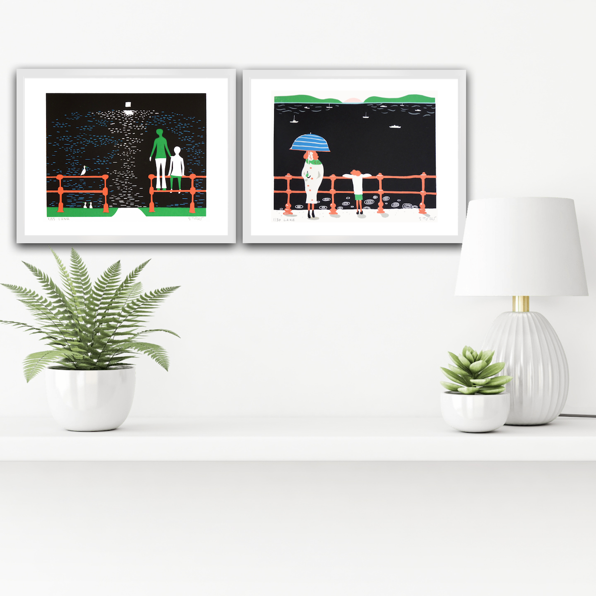 Lake Walk and Luna Diptych is a screenprint collection by Simon Tozer. It depicts the beauty of nature in a minimalist style.