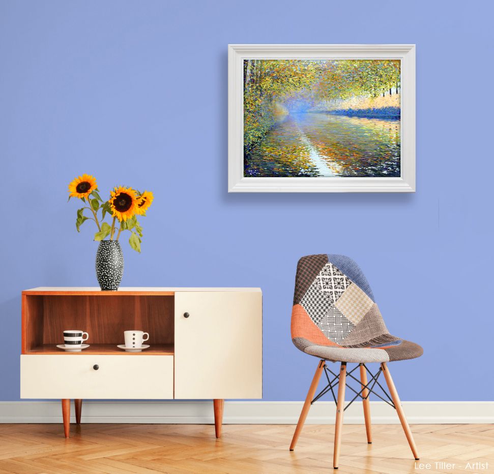 In 'September Purple Haze' Lee Tiller has used a rich autumnal palette of burnt oranges, greens and yellows which are accentuated by purples and lilacs in the distant haze. He paints in the same tradition as the original impressionist artists, painting with an immediacy that recreates the sensation of a