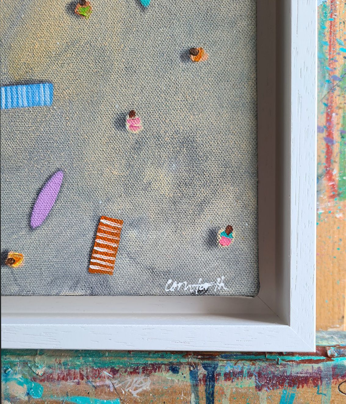 This piece was inspired by long summer weekends in Cornwall, surfing and relaxing with friends and family, enjoying the bright colours of all the beach accessories! All my tiny figures have a story!
