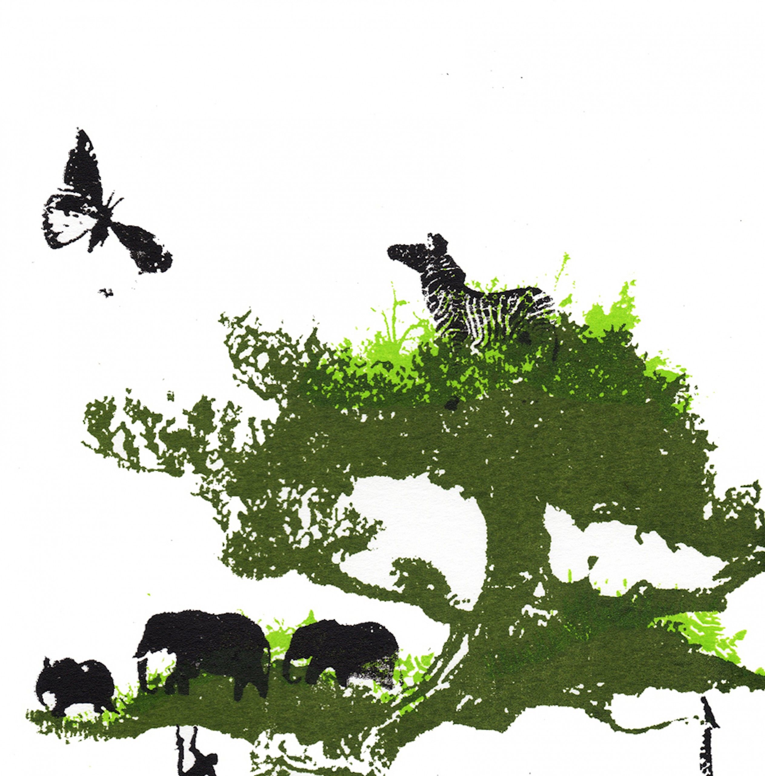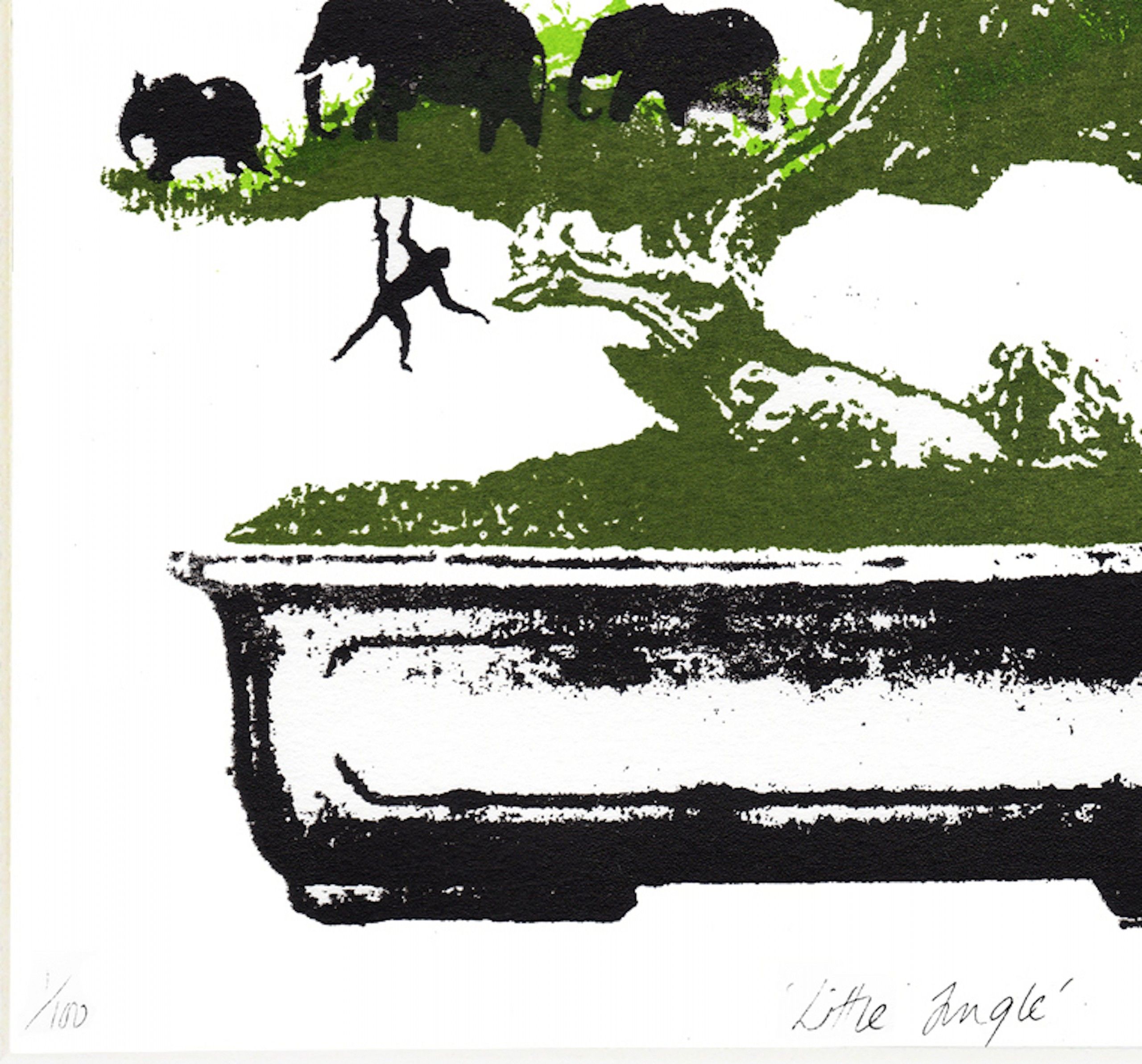 Katie Edwards Little Jungle Limited Edition 3 Colour Silkscreen Print Edition of 100 Mounted Size: H 40.5cm x W 30.5cm x D 0.5cm Sold Unframed (Please note that in situ images are purely an indication of how a piece may look) Little Jungle is a limited edition handmade silkscreen print by Katie Edwards. The bright colours and