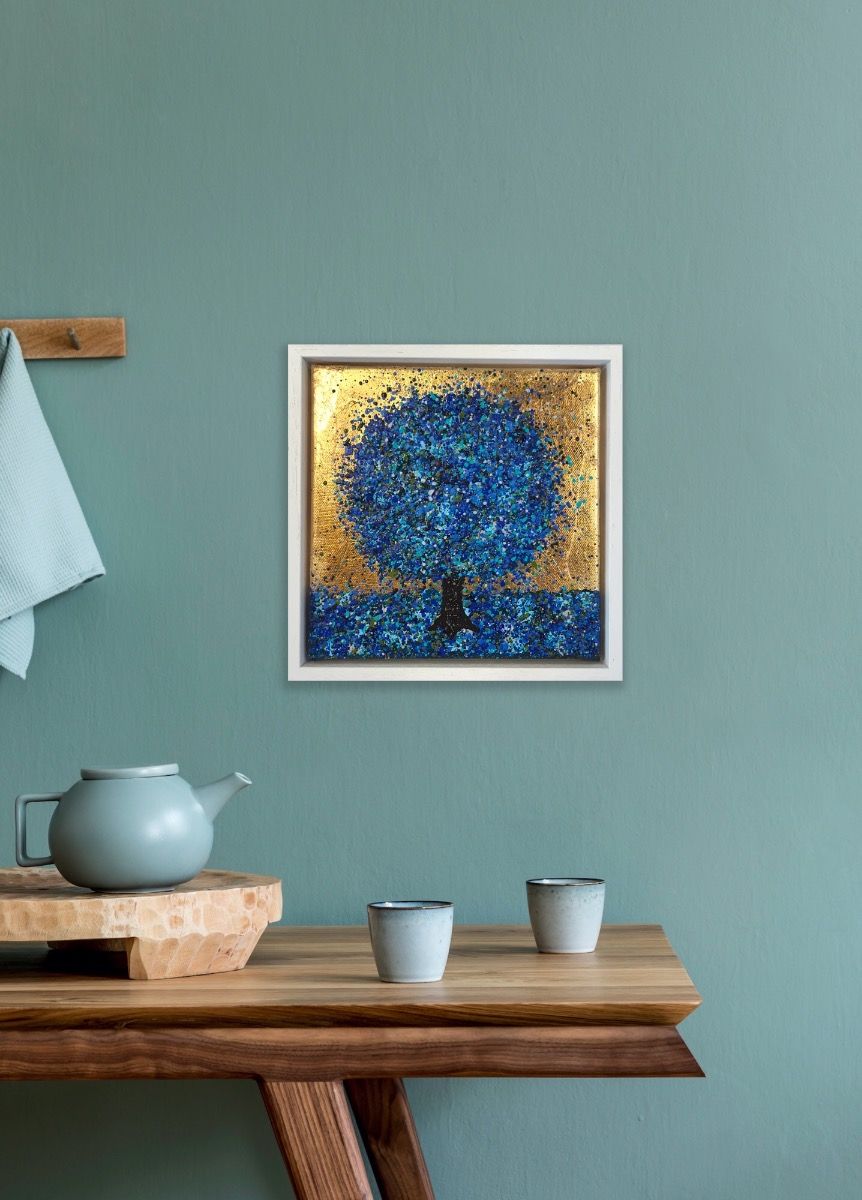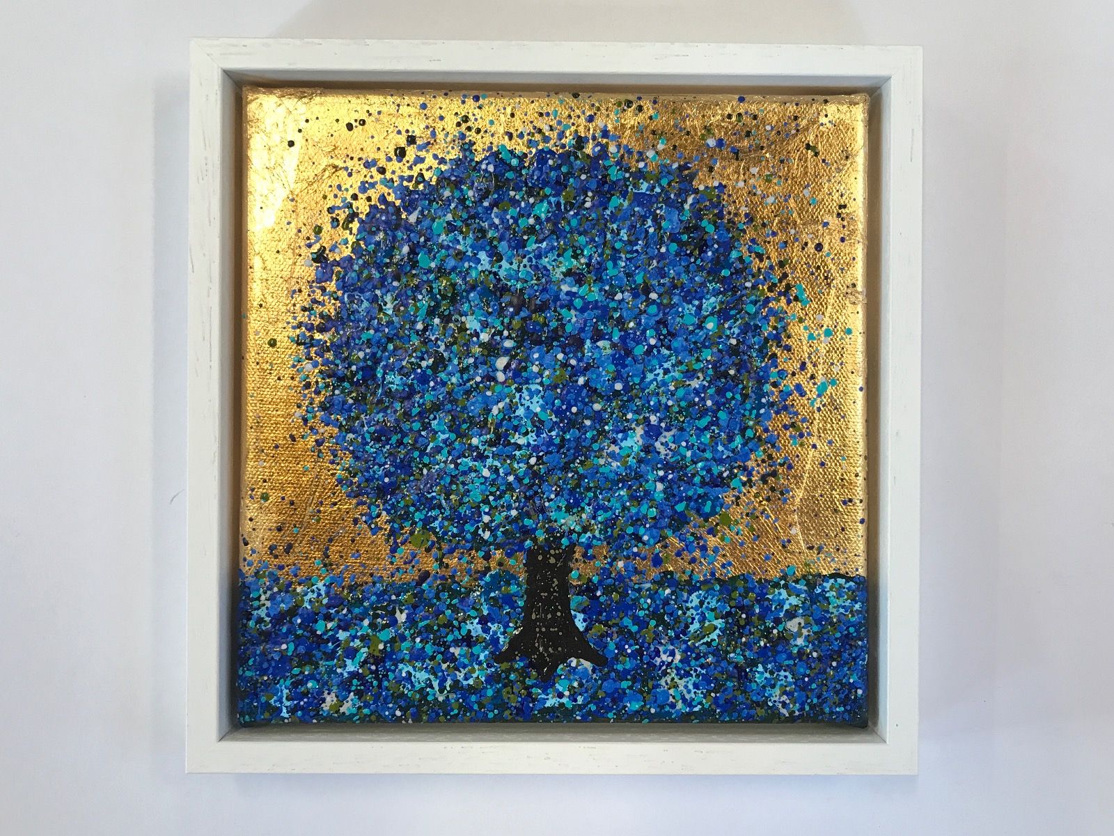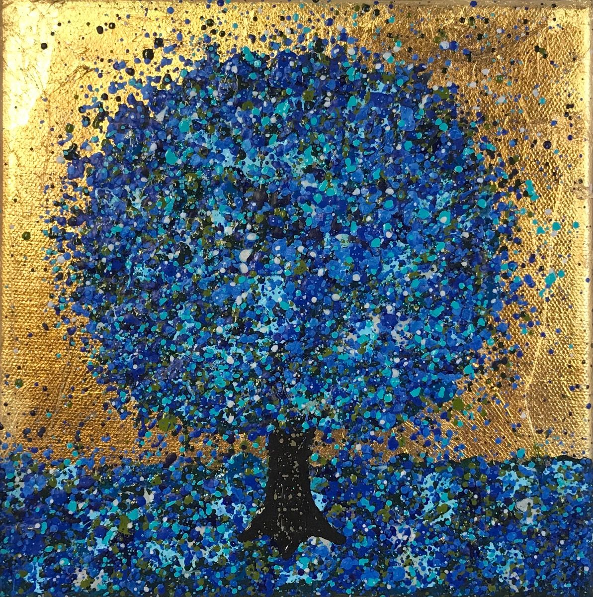 New original landscape painting by Nicky Chubb. Colourful and textured landscape painting of a tree with a gold shiny background. ADDITIONAL INFORMATION: signed and dated by artist on the back of the painting Acrylic on Canvas 23.2 H x 23.2 W x 4 D cm (9.13 x 9.13 x 1.57 in) Sold framed Image size: Height: