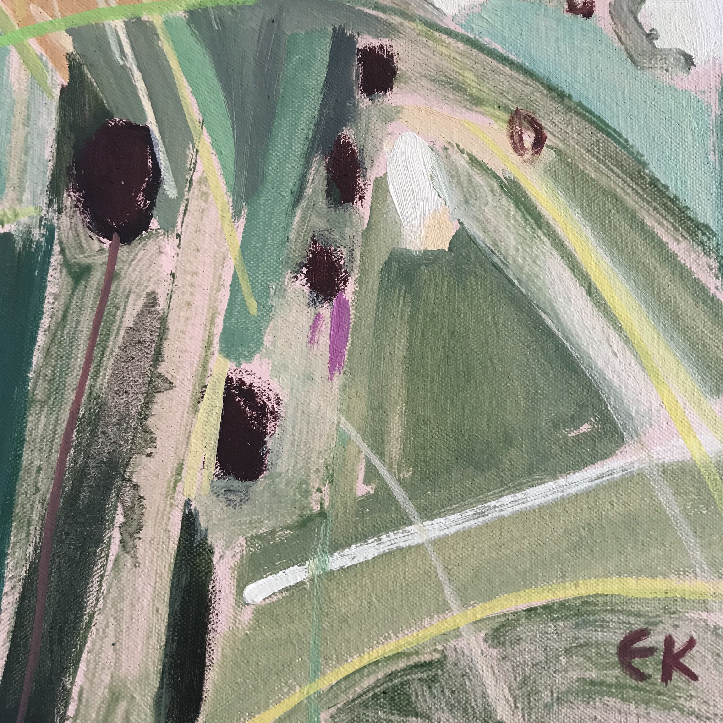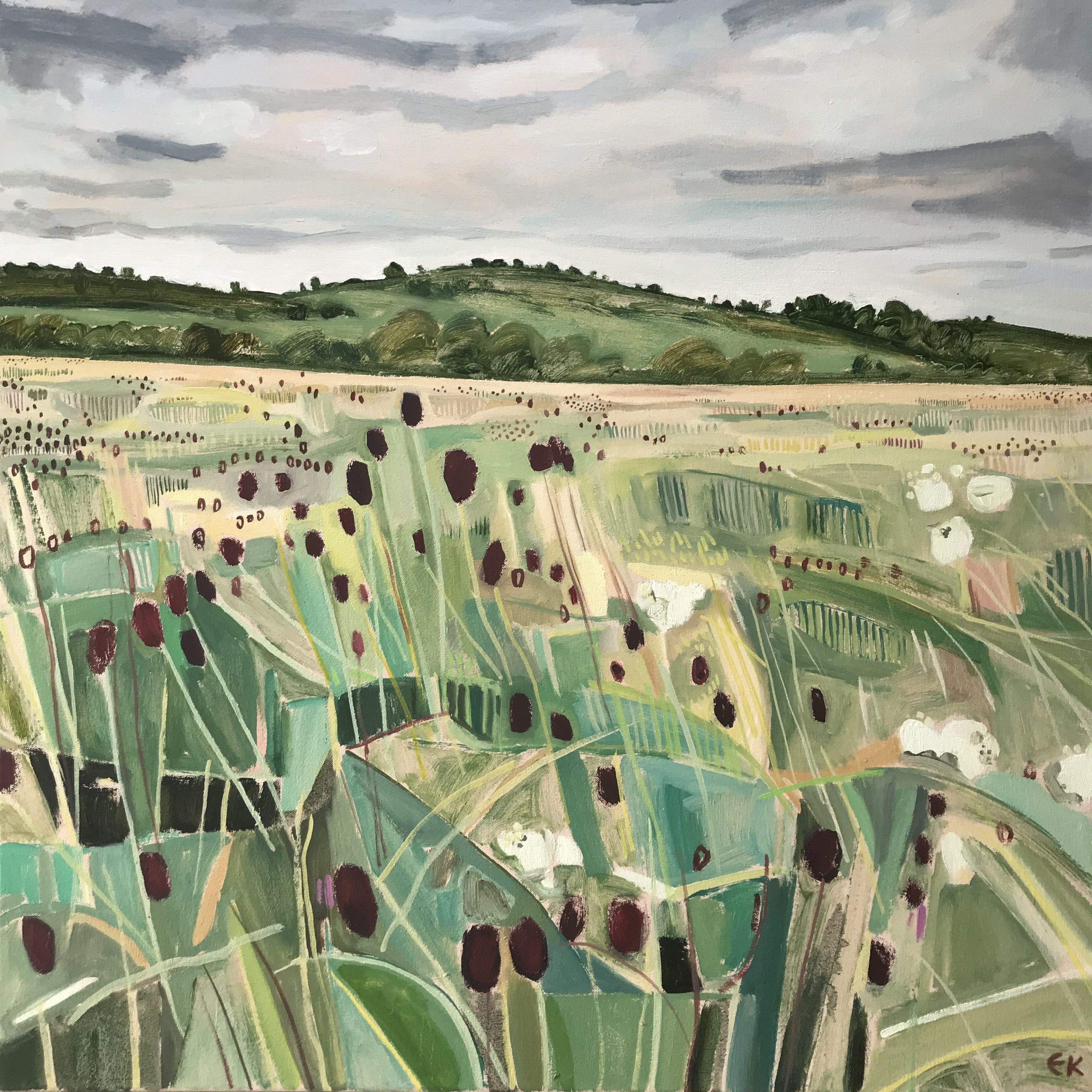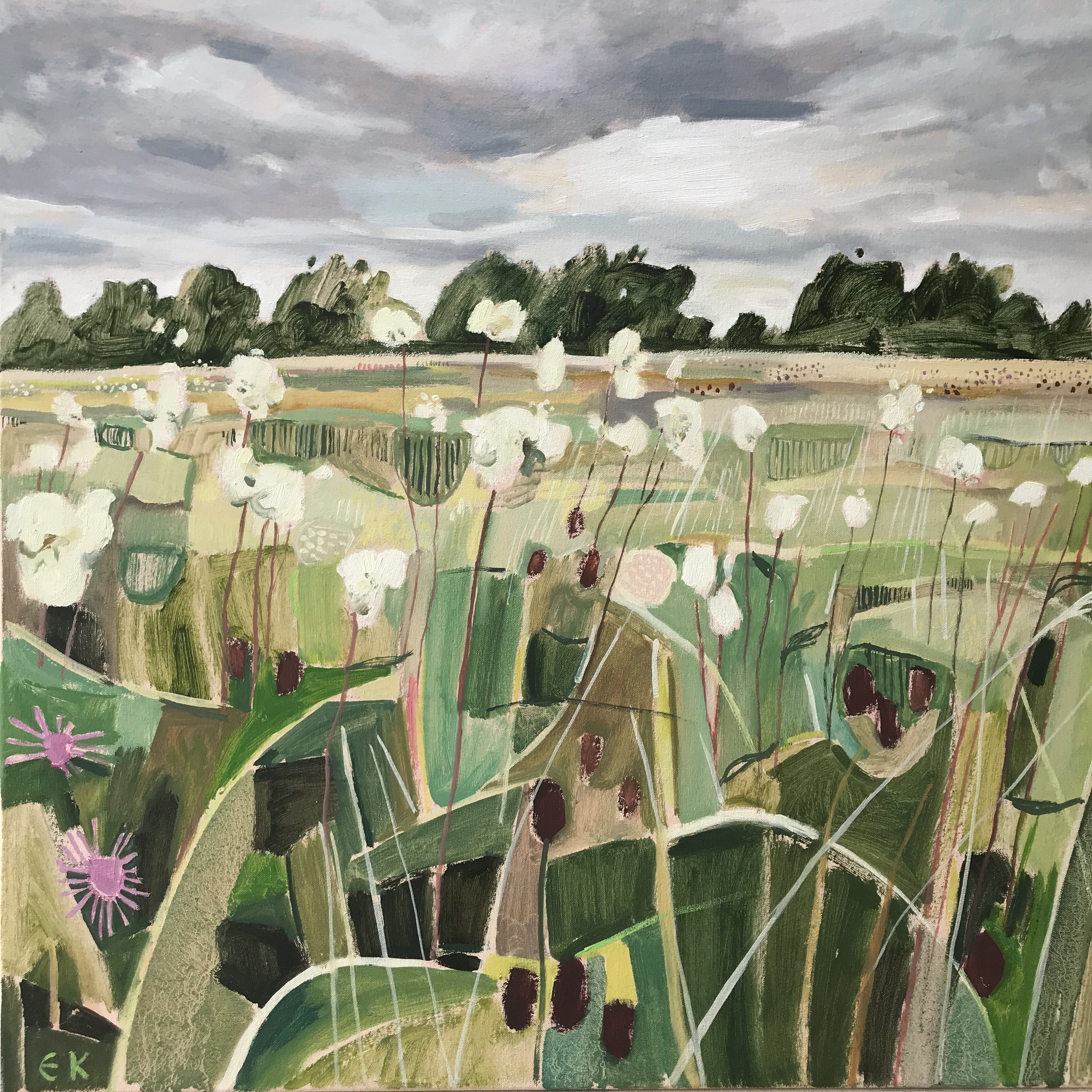 This work comprises a pair of paintings of a meadow called Long Mead, which create a diptych. Although the paintings could be available separately, they compliment one another when hung side by side, on opposite walls or within the same interior. The subject of the diptych is a floodplain meadow