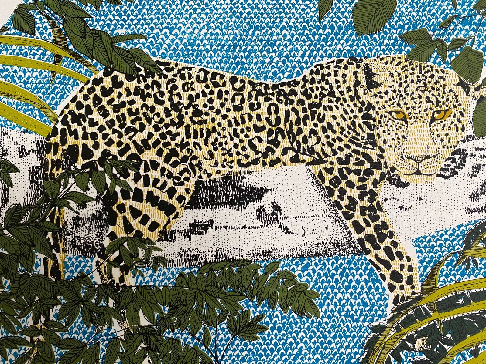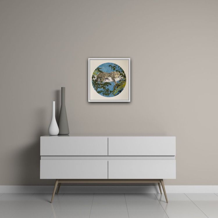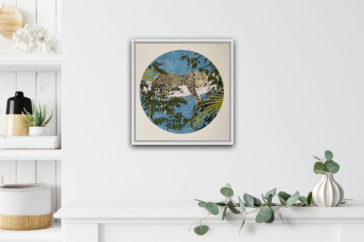 Clare Halifax Lounging Leopard Limited Edition 6 Colour Silkscreen Print Edition of 50 Sheet Size: H 37cm x W 38cm x D 0.1cm Sold Unframed Please note that in situ images are purely an indication of how a piece may look. Lounging Leopard is a contemporary animal print by Clare Halifax. This bright depiction of a sleepy leopard
