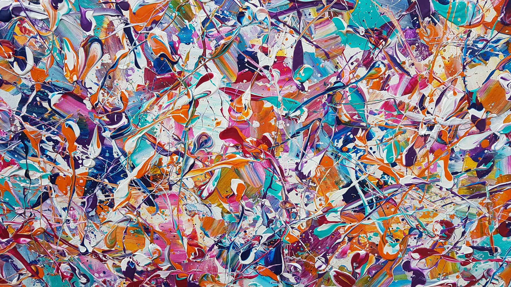 Abstract Synapses - Meet Me On The Other side - An Original abstract painting on deep edge canvas by Lucy Moore. This piece turned out better than I imagined. It takes a lot of patience to paint in this style mixing the paint just enough so it doesn't muddy. What