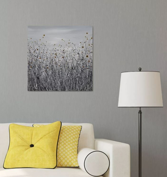 Be The Light In The Dark #2 - An Original semi-abstract painting by Lucy Moore I really like the contrast of the monochrome back ground against the vibrant pop of poppies. I love painting abstract landscapes, using my techniques to put movement into the painting bringing it to life Wychwood