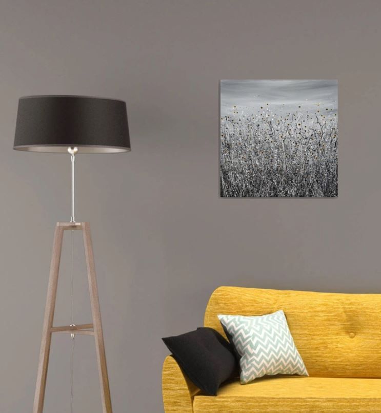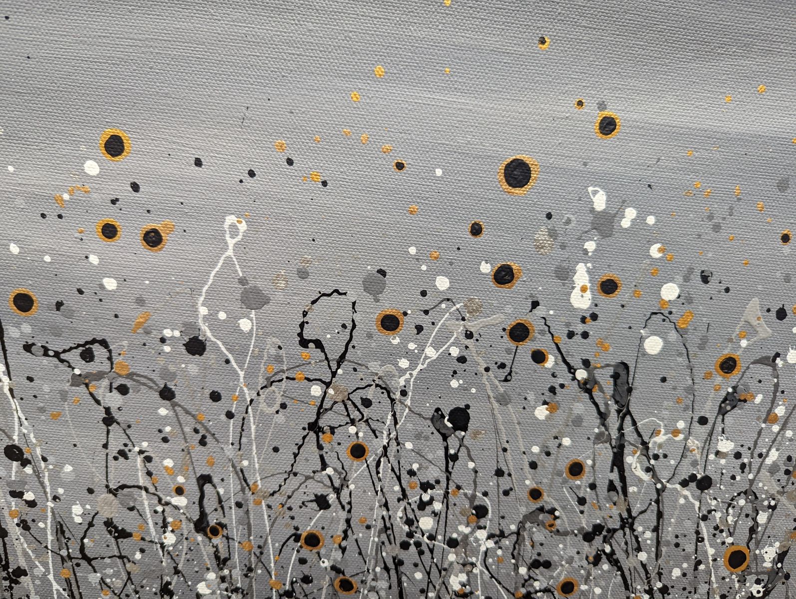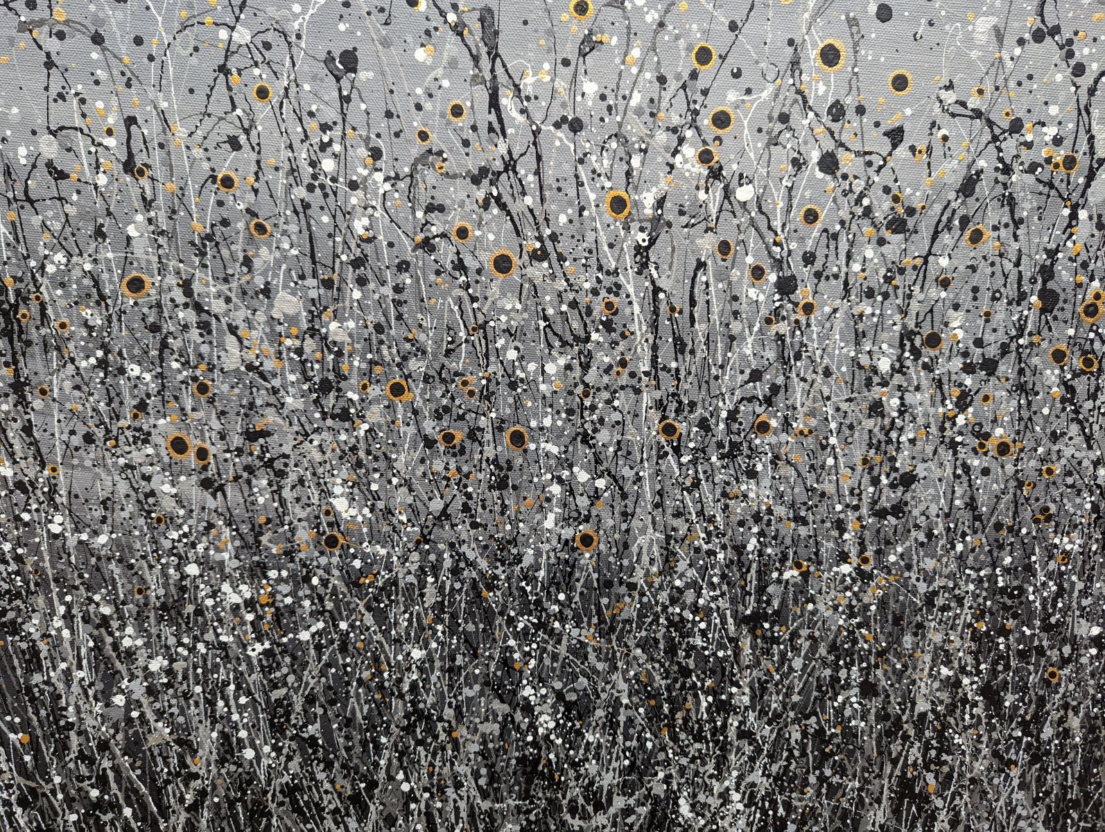 Be The Light In The Dark #3 - An Original semi-abstract painting by Lucy Moore I really like the contrast of the monochrome back ground against the glowing pops of gold . Be The Light In The Dark #3 is part of my monochrome colour pop series. I love painting