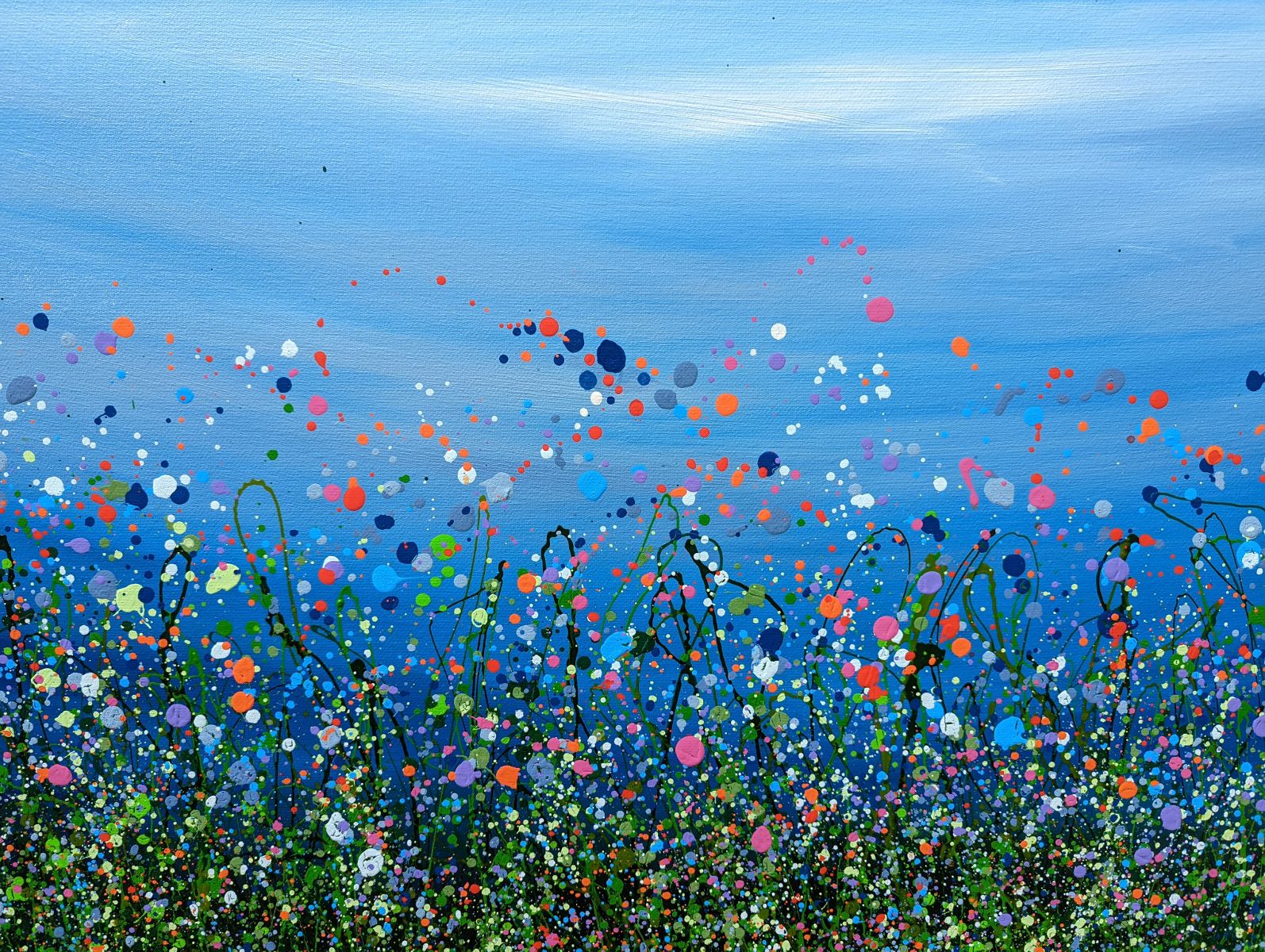 In The Still Of The Night, I love to splash around with colour creating wild abstract fields of flowers. This piece will come ready to hang, signed on the front The edges are painted White. if you would like something similar painting please don't hesitate to contact me. A