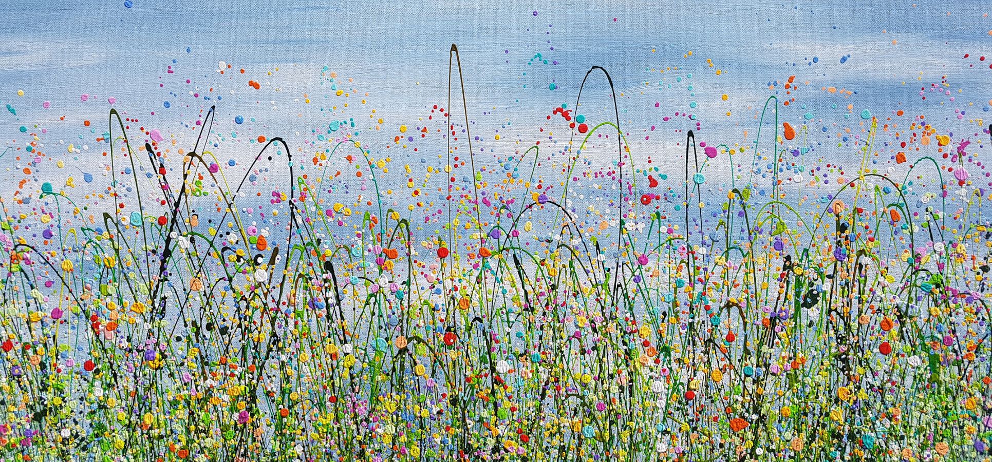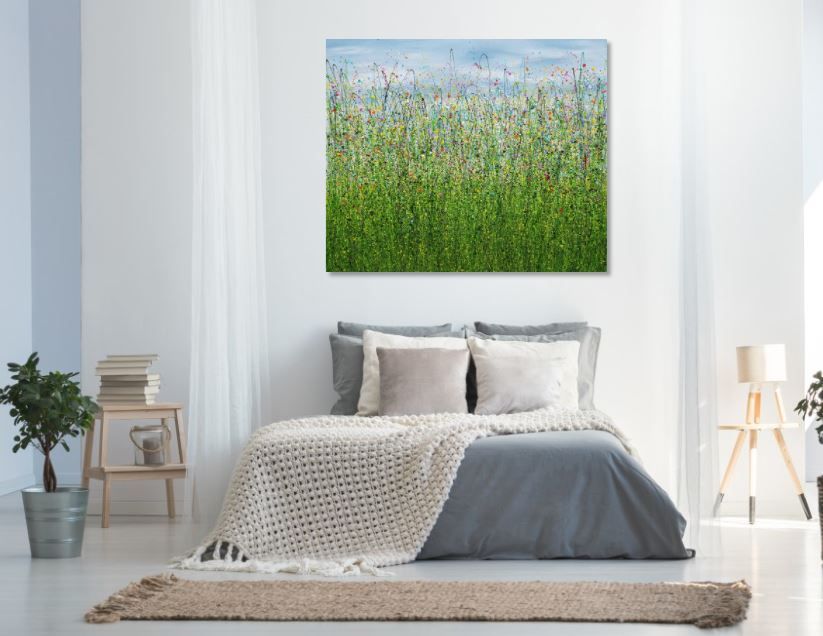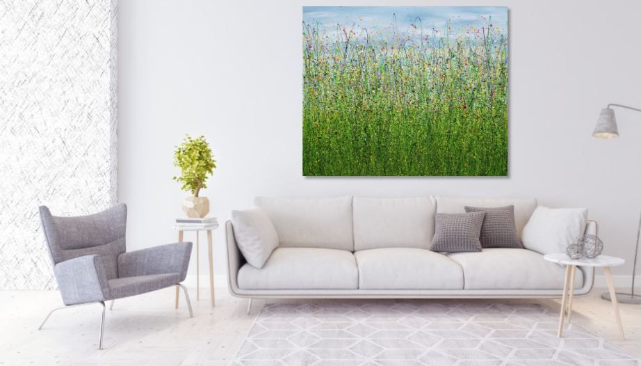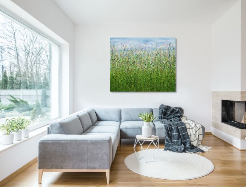 Natures Splendor, is an original semi-abstract painting by Lucy Moore. Using my signature string grass technique I have created an abstract meadow. This piece would brighten any home or office. Lucy Moore comments "I have always enjoyed being creative but lacked the confidence to pursue a career as an artist,