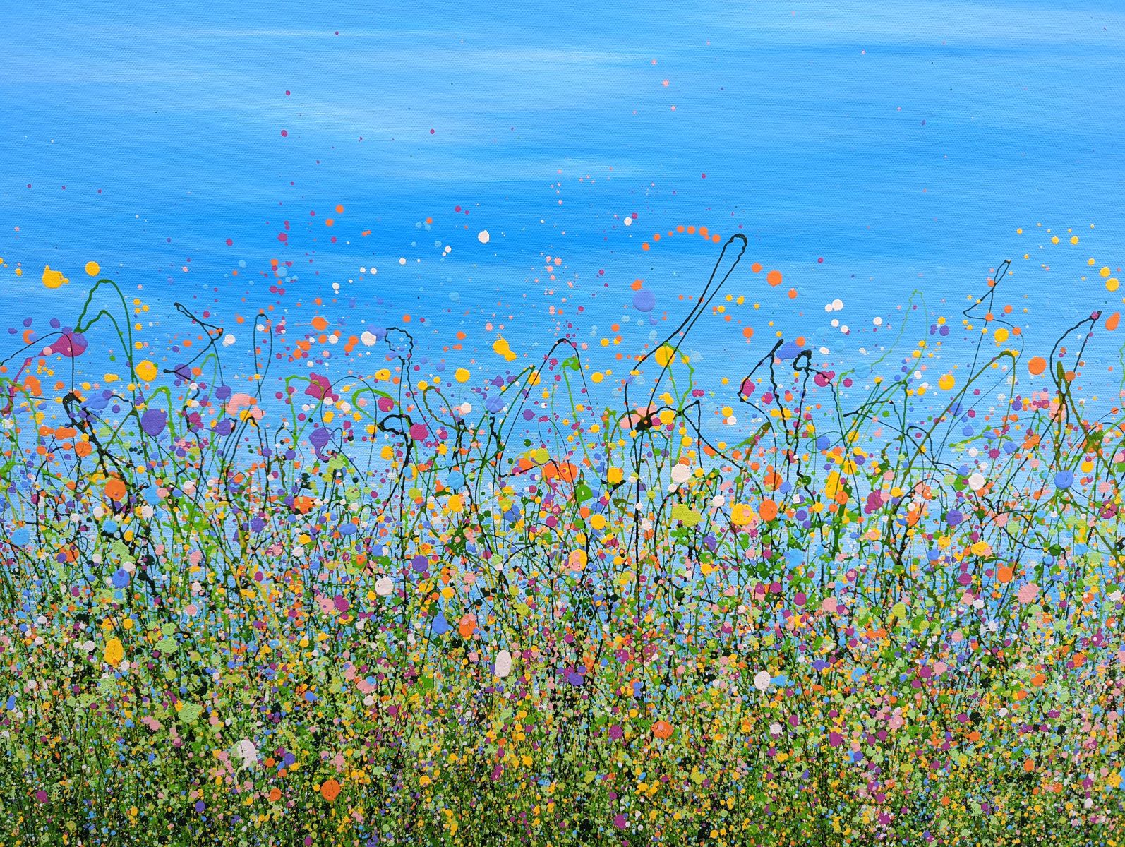 Springs On The Horizon #2 - An Original semi-abstract painting by Lucy Moore. Using her signature string grass technique Lucy has created a semi-abstract twist to her classic meadow paintings. This piece would brighten any home or office, bring a little of the outside inside. We love Lucy Moore's original