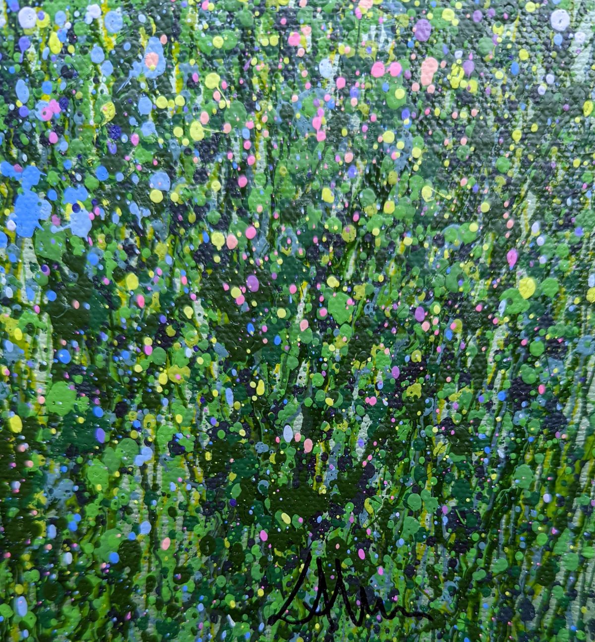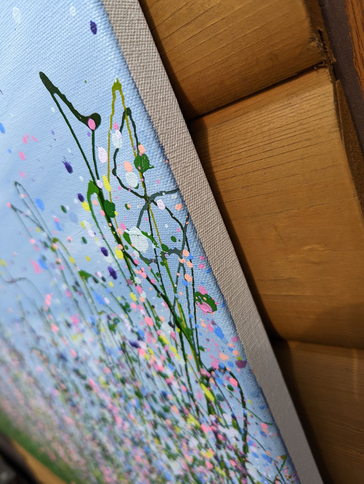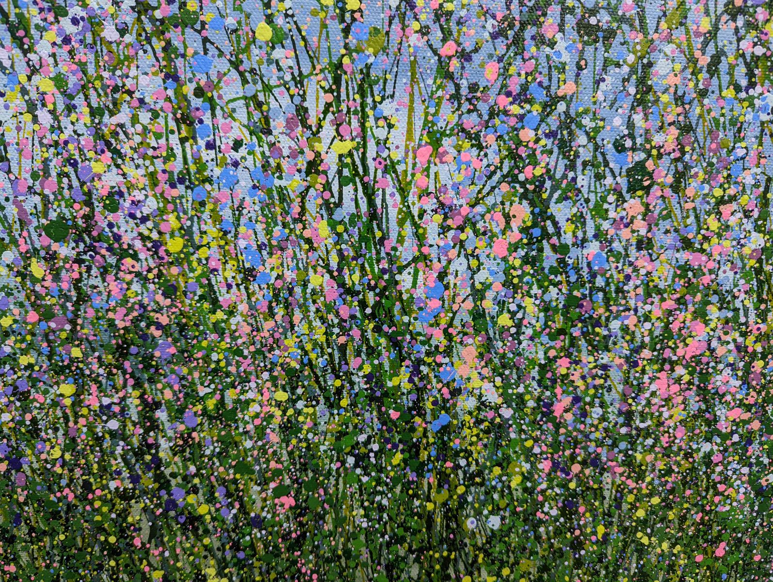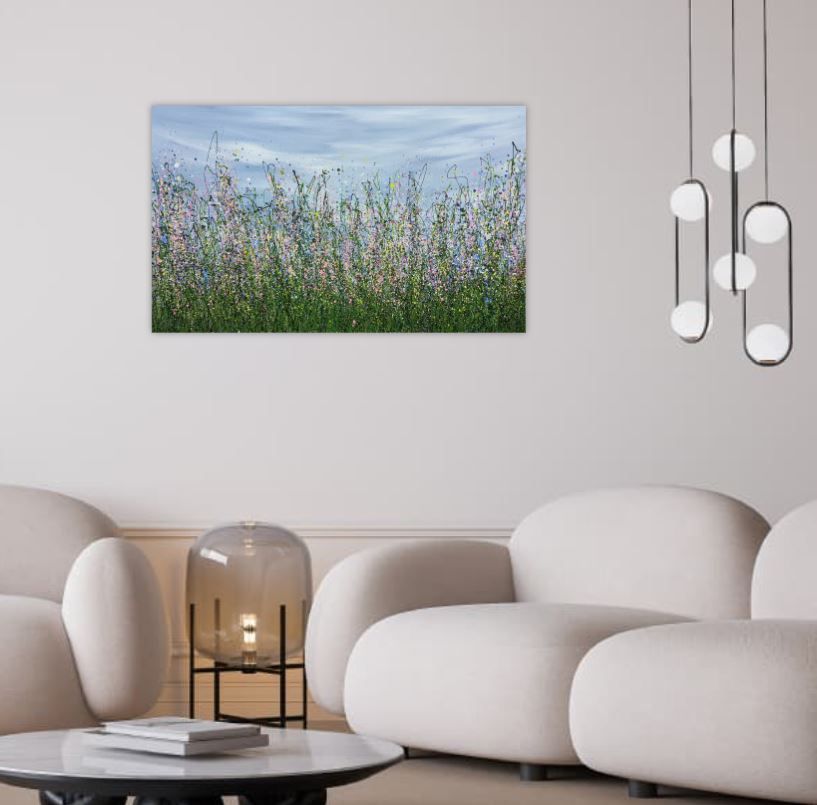Step Into Spring - An Original semi-abstract painting by Lucy Moore. Using her signature string grass technique and a muted palette Lucy has created a semi-abstract twist to her classic meadow paintings, This piece would brighten any home or office, bring a little of the outside inside. We love Lucy