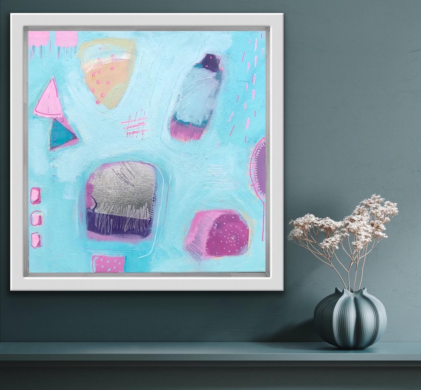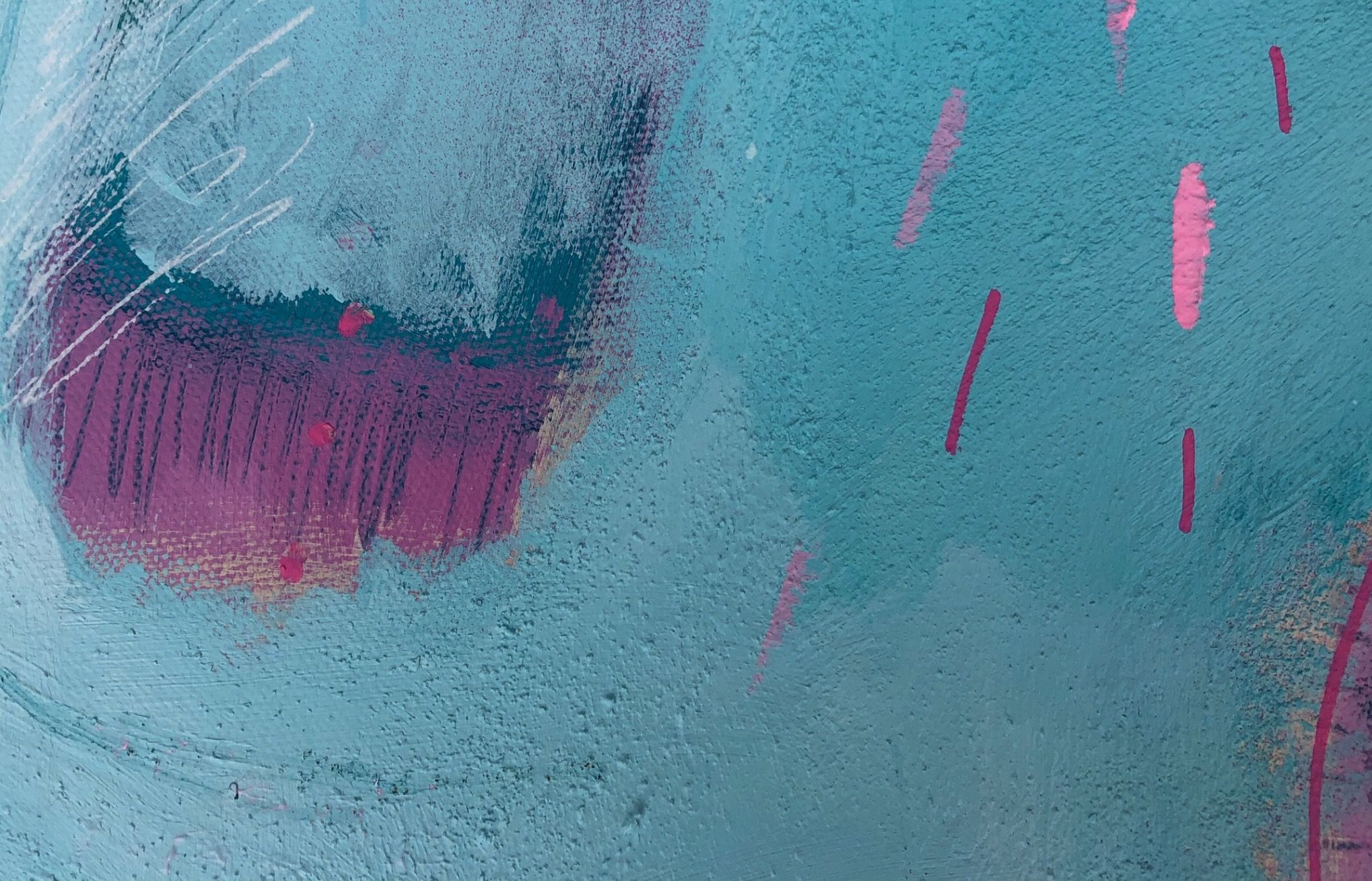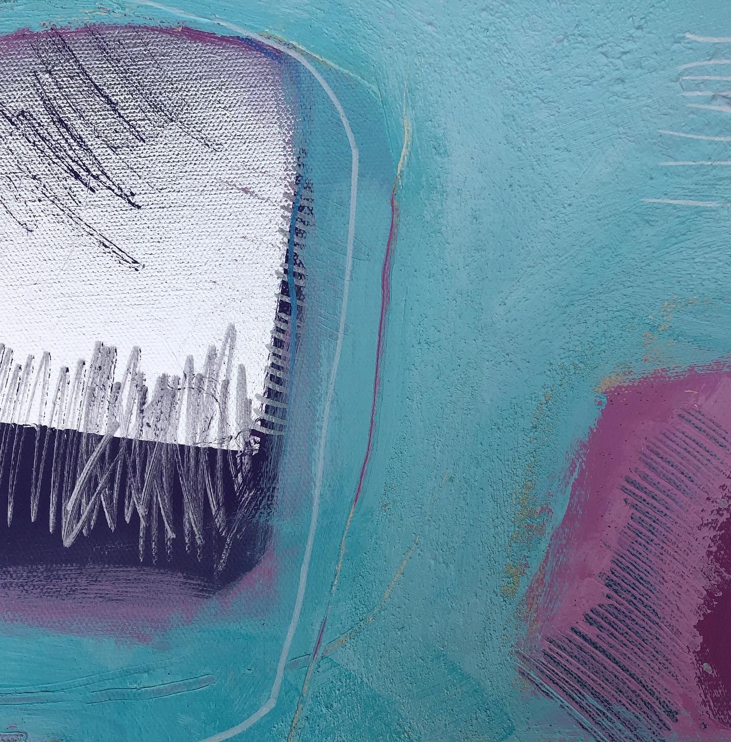 This canvas is a lead on from a large canvas called Pink Bikini (also on site), a piece based on th surroundings of the beaches and the seaside in South Devon in summertime. For this canvas I wanted to use turquoise to depict the colour of the sea so often