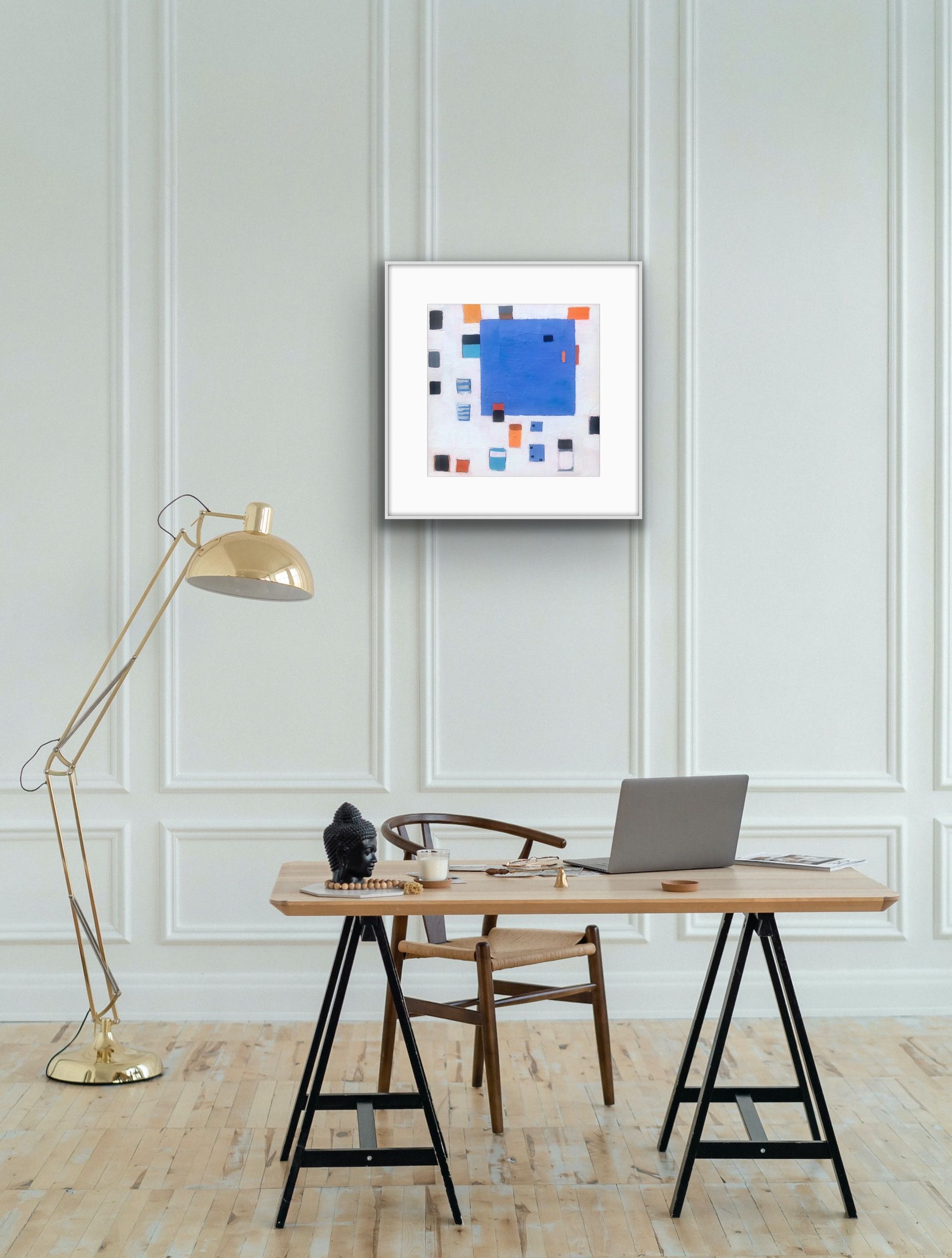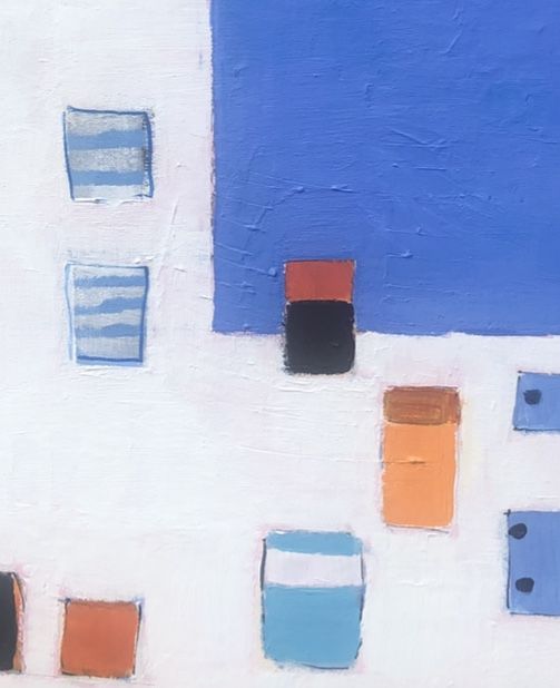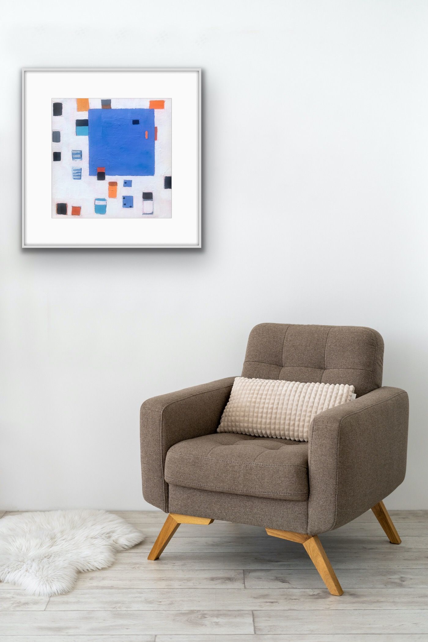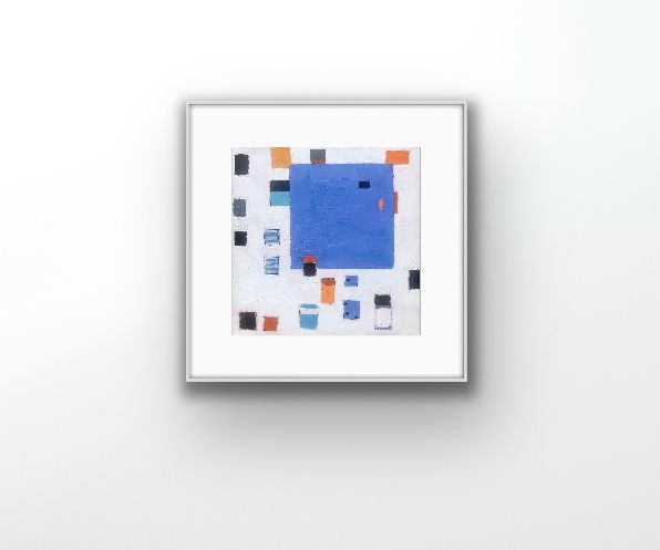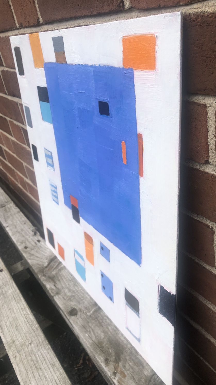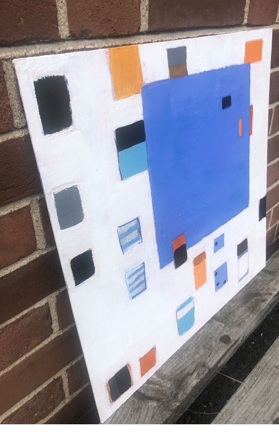 While tangerine space 1, was loosely based on still life, Tangerine Space 2 has evolved into an abstract work. The tangerine oblong placed on the blue square , gives the work its title. There is some influence here from Paul Klees work, which I fell in love with, after visiting
