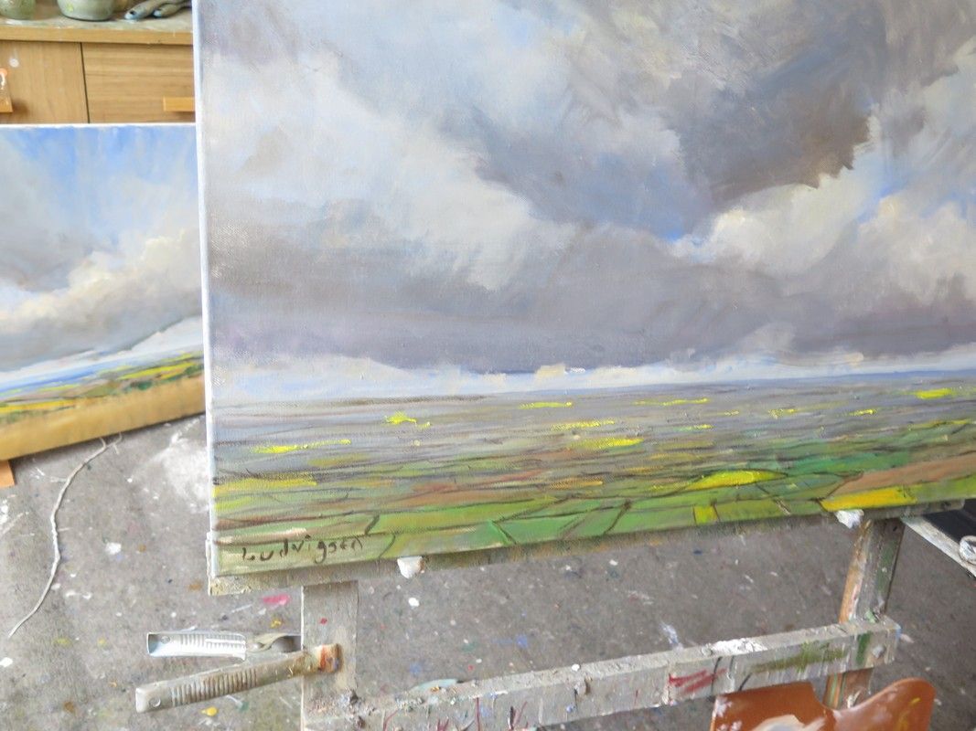THIS WORK IS NO LONGER AVAILABLE, PLEASE SEE THE ARTIST’S OTHER WORKS From Garrowby Hill, is an original painting by Malcom Ludvigsen. It’s a proper plein-air oil painting, painted from Garrowby Hill in the Yorkshire Wolds looking over the Vale of York. It is unframed but painted round the edge and