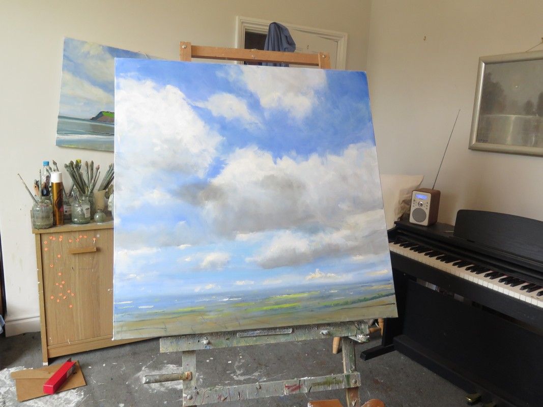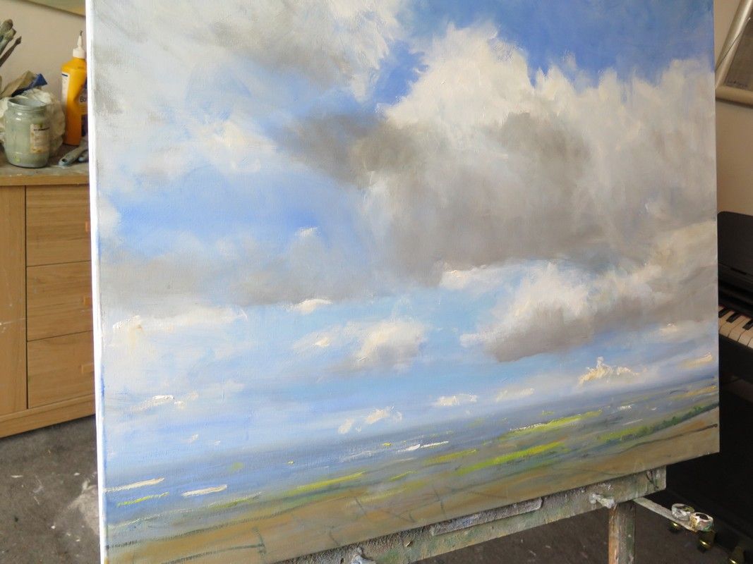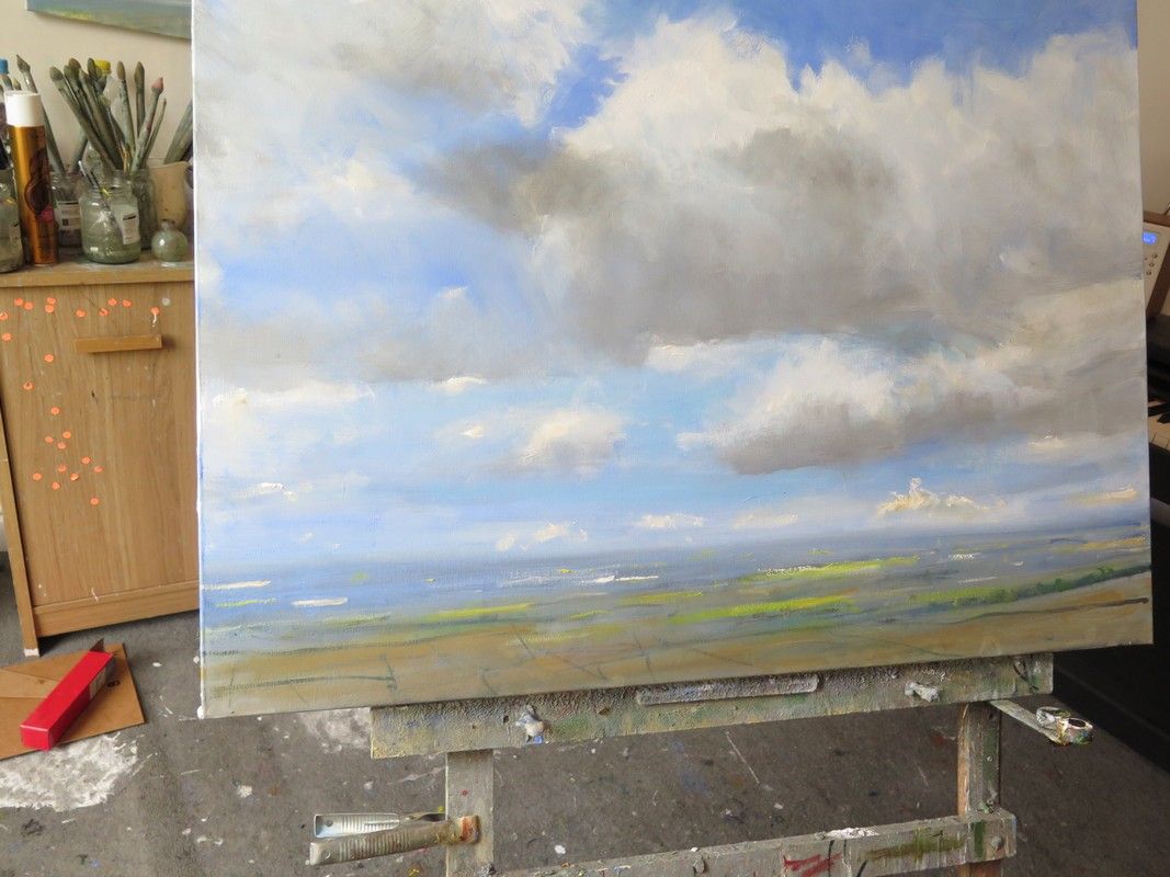 THIS WORK IS NO LONGER AVAILABLE, PLEASE SEE THE ARTIST’S OTHER WORKS View from the Wolds, is an original painting by Malcom Ludvigsen. It’s a proper plein-air oil painting, painted on the spot from Garrowby Hill in the Yorkshire Wolds. It is unframed but painted round the edge and D-rings and