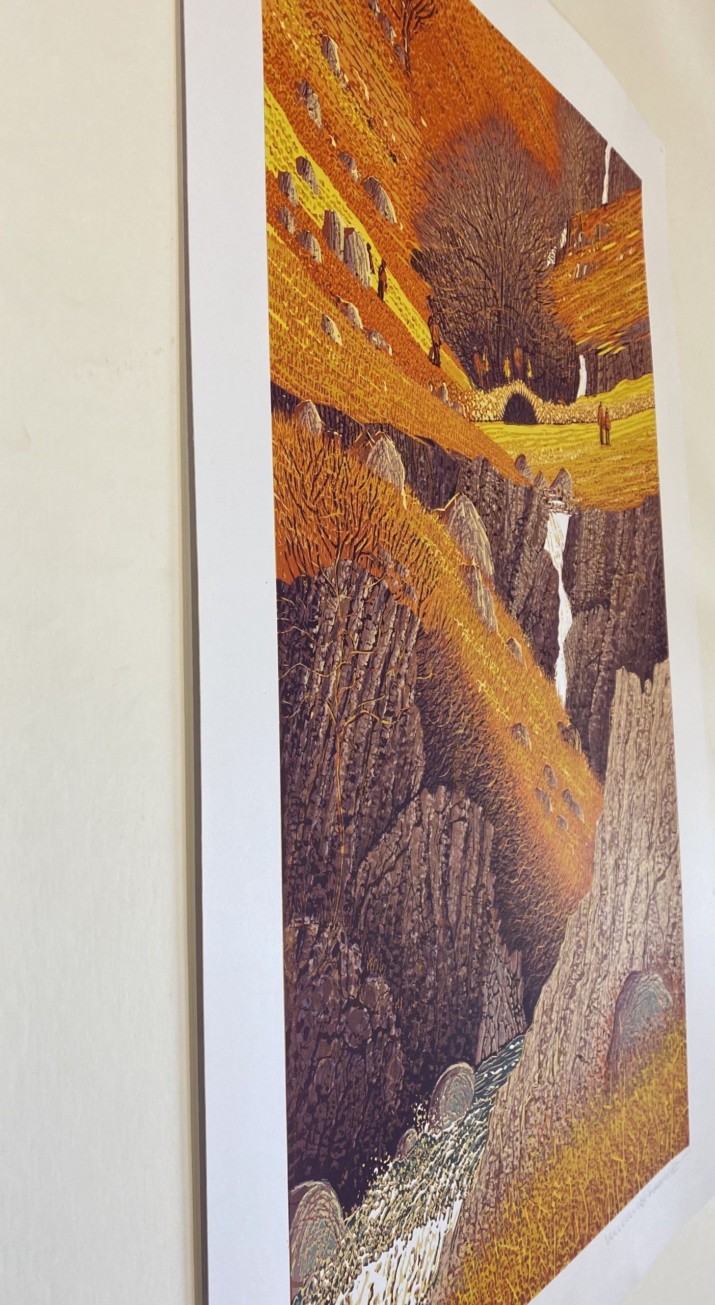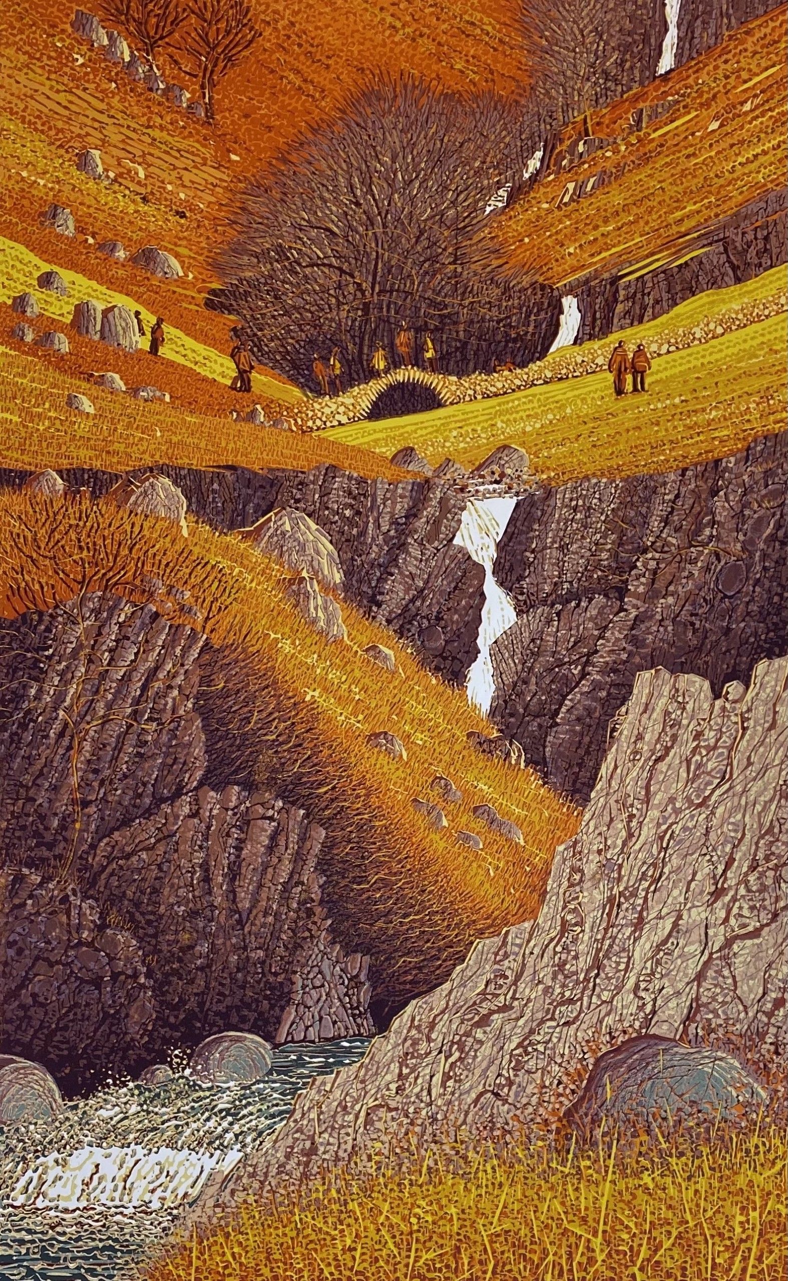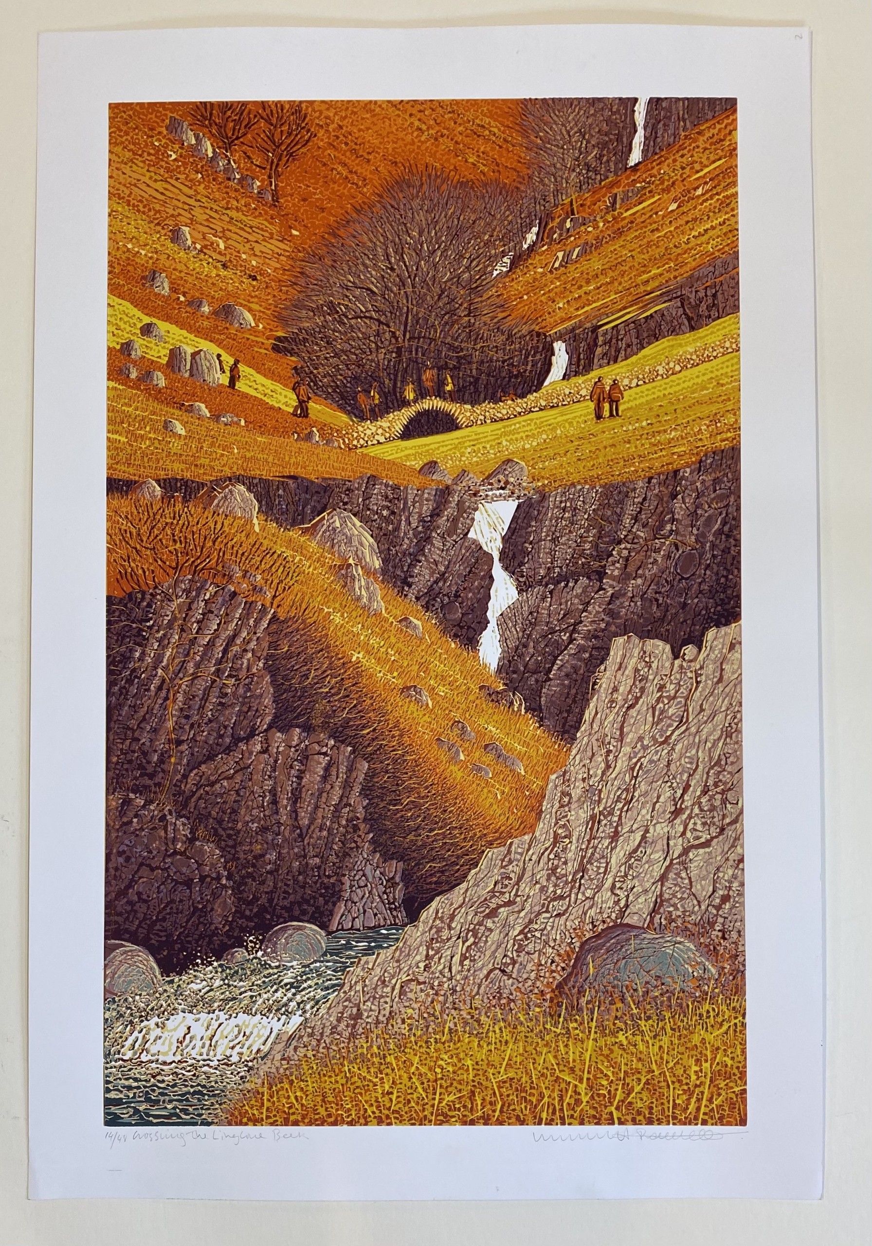 Mark A Pearce Crossing Lingcove Beck Limited Edition Linocut Print Edition of 48 Image Size: H 71cm x W 44cm Paper Size: H 81cm x W 54cm x D 0.1cm Sold Unframed Please note that in situ images are purely an indication of how a piece may look. Mark A Pearce hand prints these original prints using