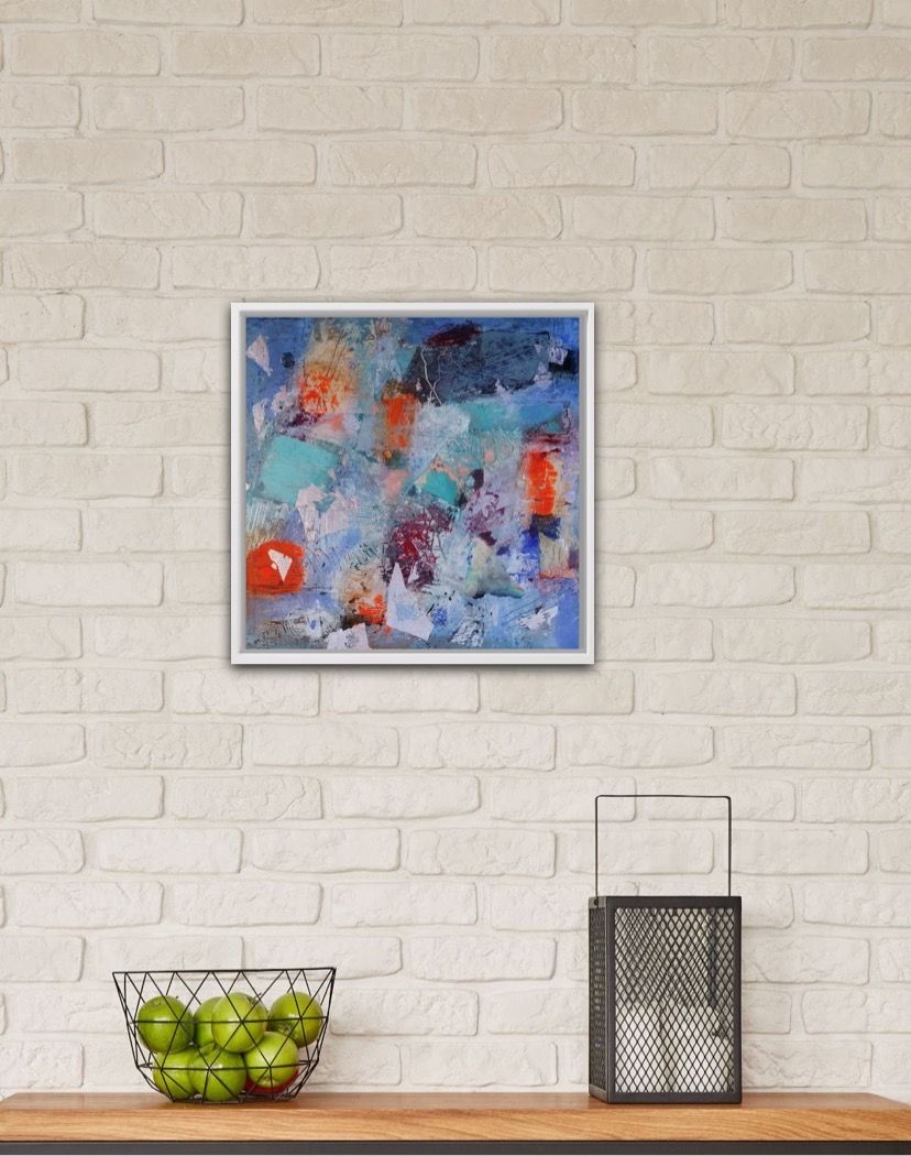 Mary Scott All The Ancient Rocks I Ever Met (I) Original Semi-Abstract Painting, Semi-Abstract Painting, Affordable Contemporary Art Acrylic Paint and Gold Leaf (Silver Finish) on Board Board size: H 30 cm x W 30 cm x D 0.5 cm Framed size: H 33 cm x W 33 cm x 3 cm Sold Framed in
