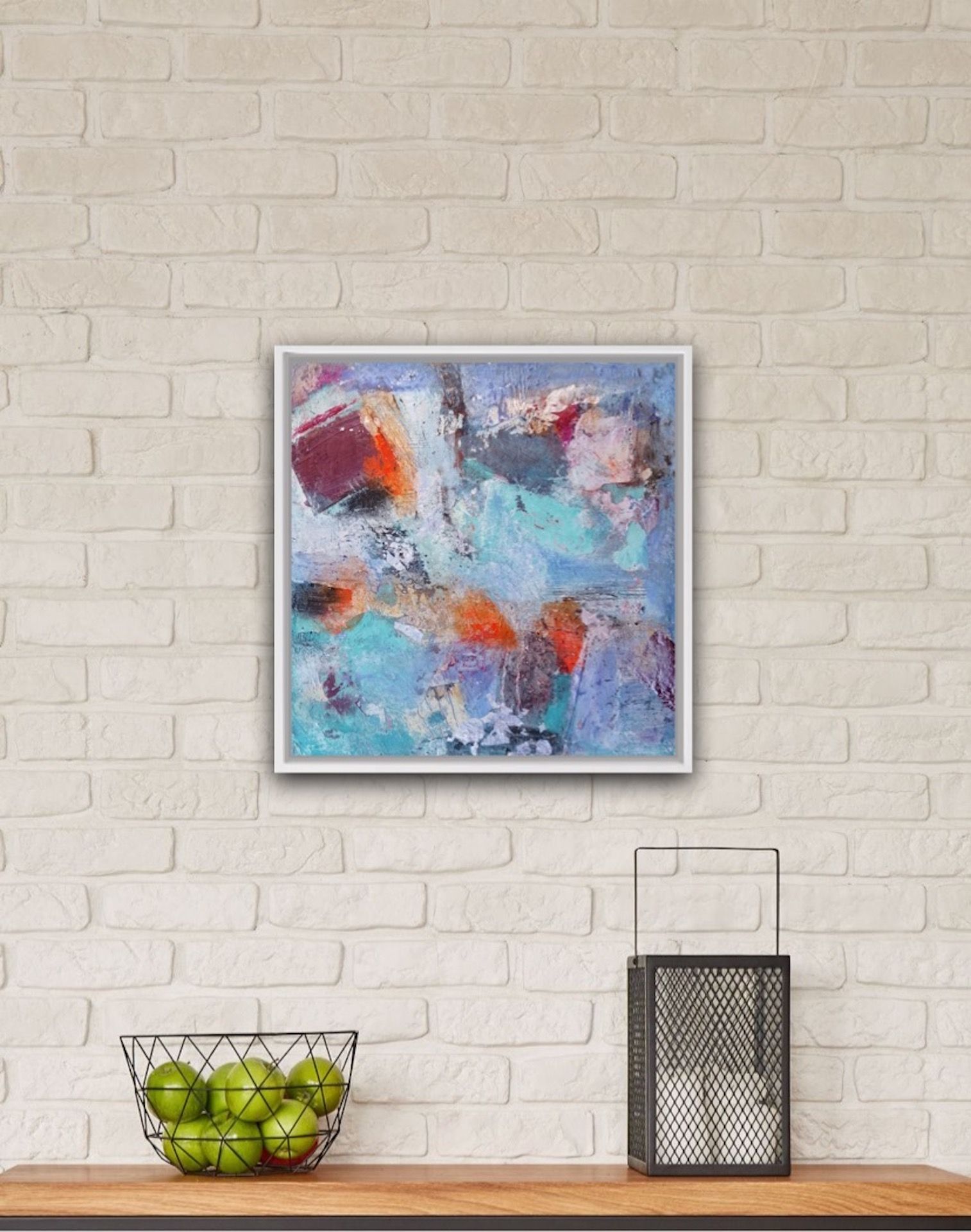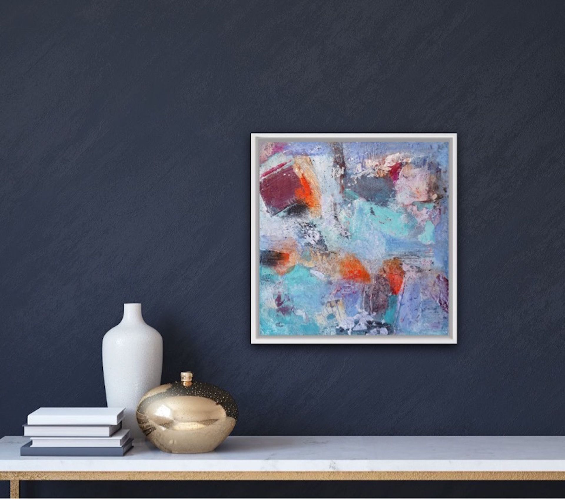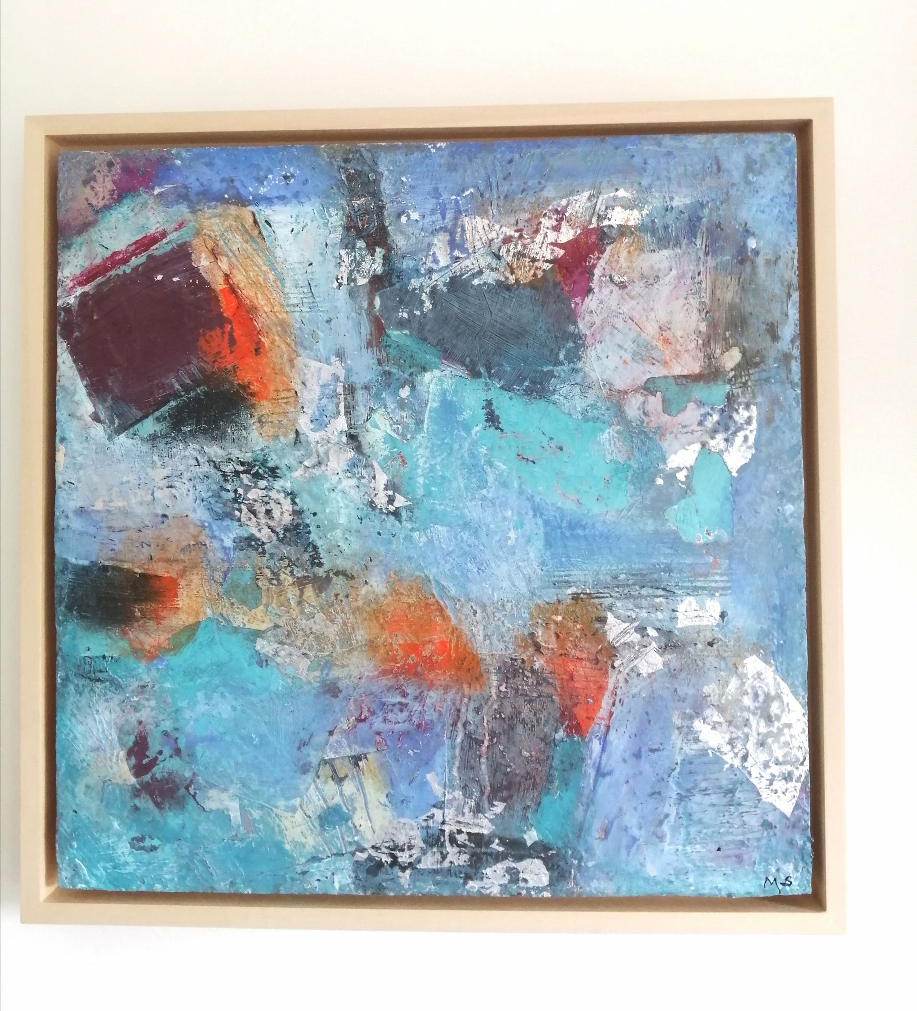All The Ancient Rocks I Ever Met (II) Mary Scott Original Semi-Abstract Painting Acrylic Paint and Gold Leaf (Silver Finish) on Board Board size: H 30 cm x W 30 cm x D 0.5 cm Framed size: H 33 cm x W 33 cm x 3 cm Sold Framed in a Lime Wood Float Frame Free