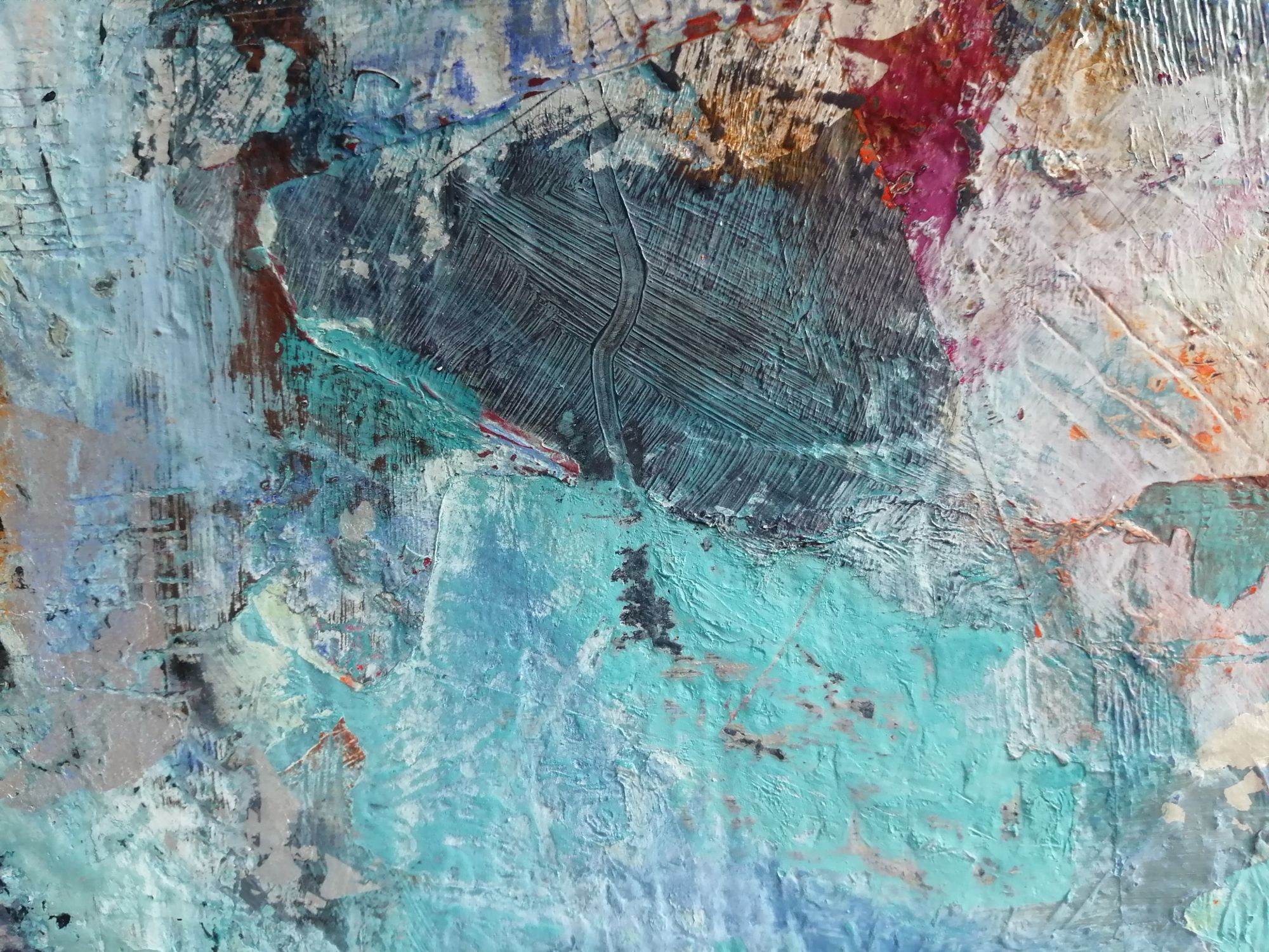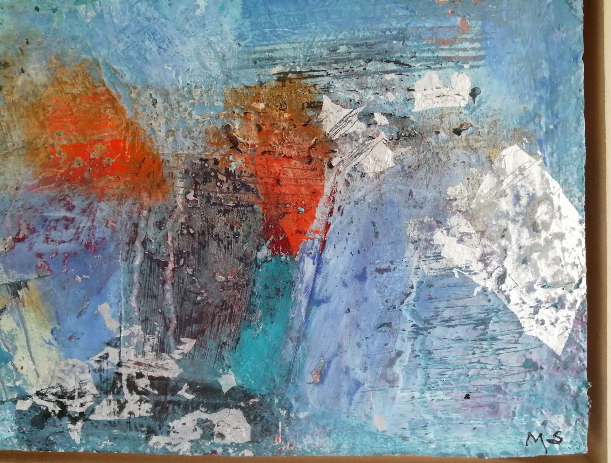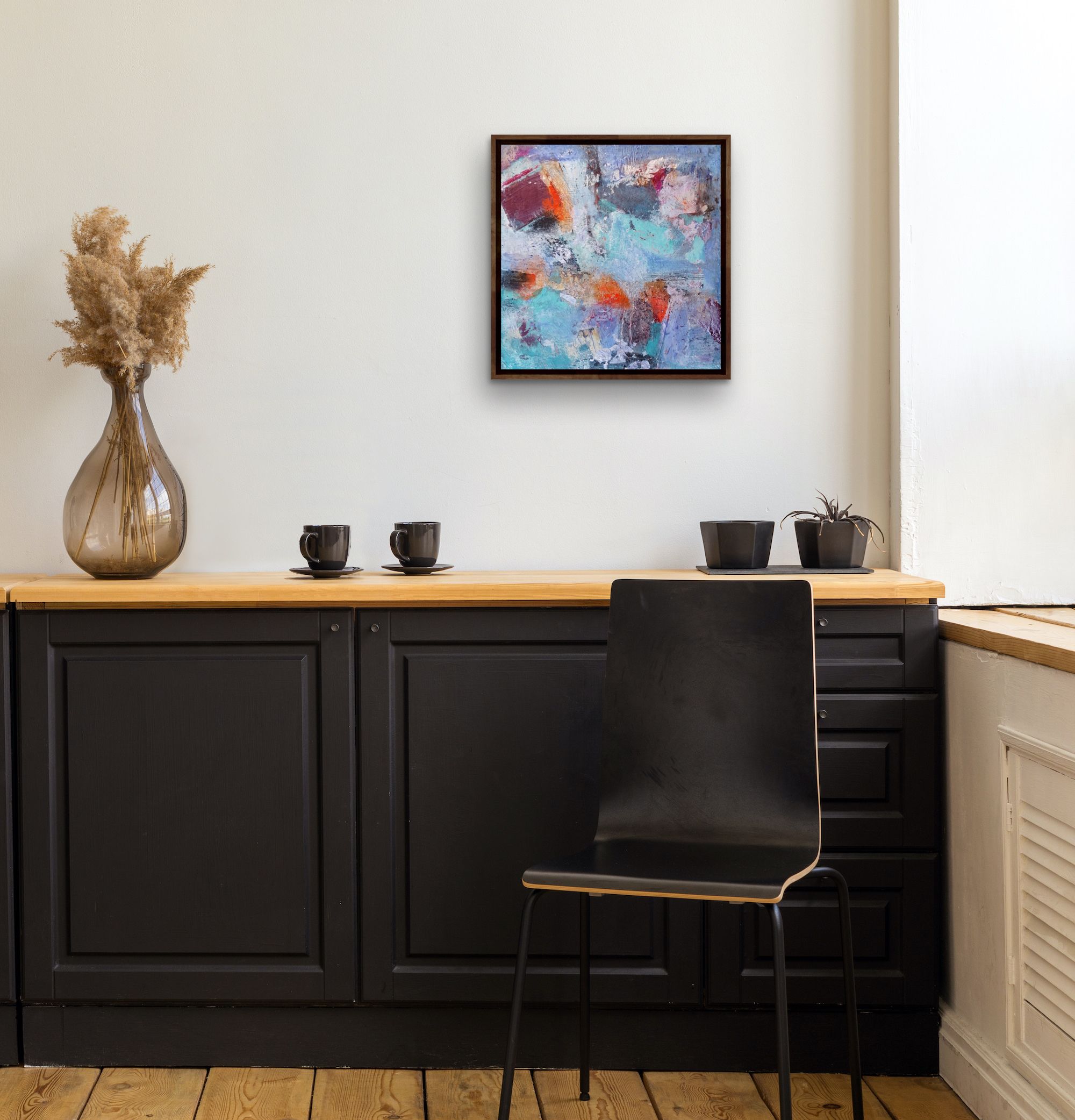 All The Ancient Rocks I Ever Met (II) Mary Scott Original Semi-Abstract Painting Acrylic Paint and Gold Leaf (Silver Finish) on Board Board size: H 30 cm x W 30 cm x D 0.5 cm Framed size: H 33 cm x W 33 cm x 3 cm Sold Framed in a Lime Wood Float Frame Free