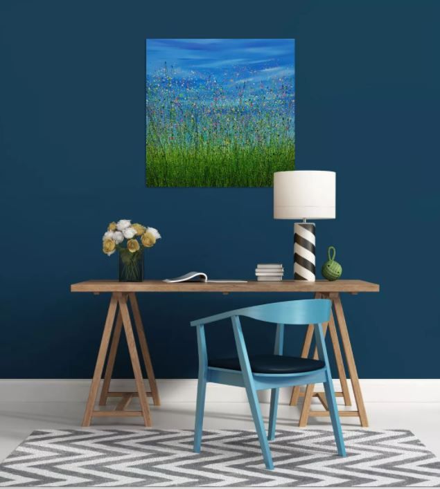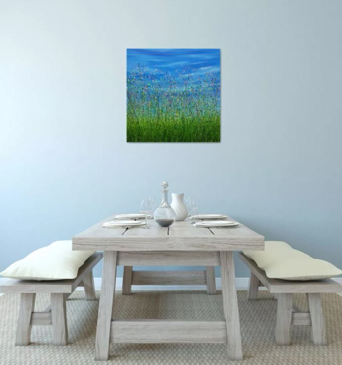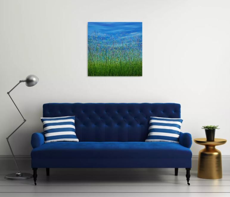 Memories Of Summer - An Original semi-abstract painting by Lucy Moore. A large statement piece to brighten any home or office. Using my signature stringy grass technique I have created a bountiful vibrant meadow with an abstract twist. This piece would brighten any home or office, bring a little of the outside