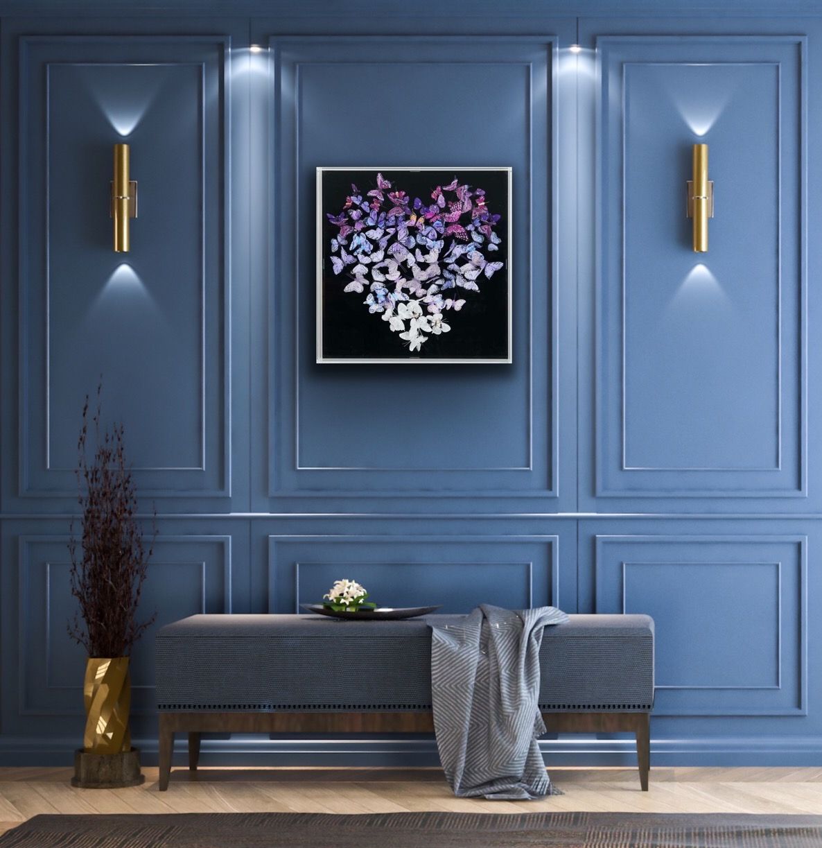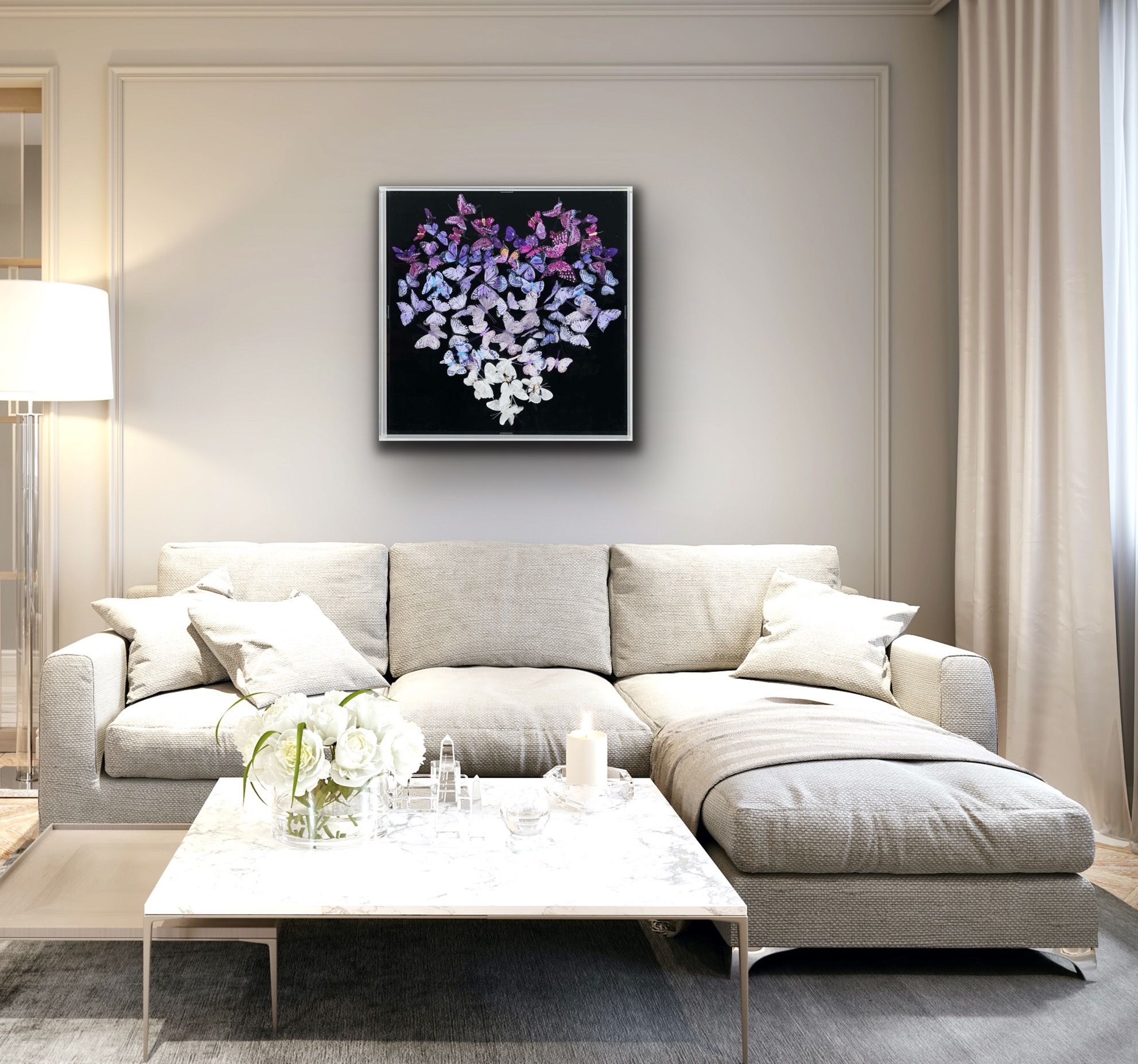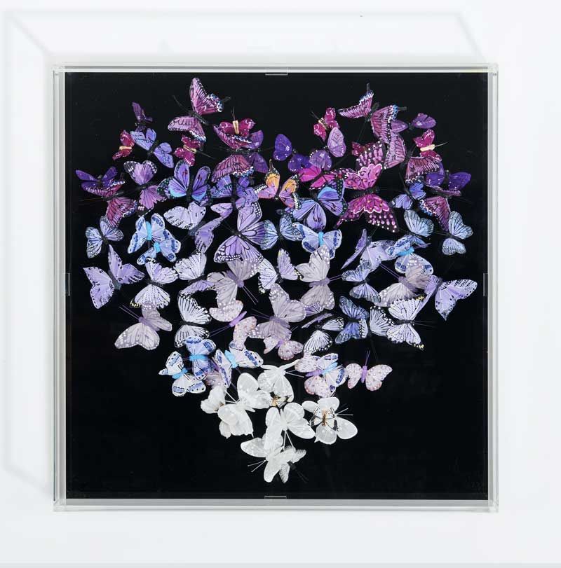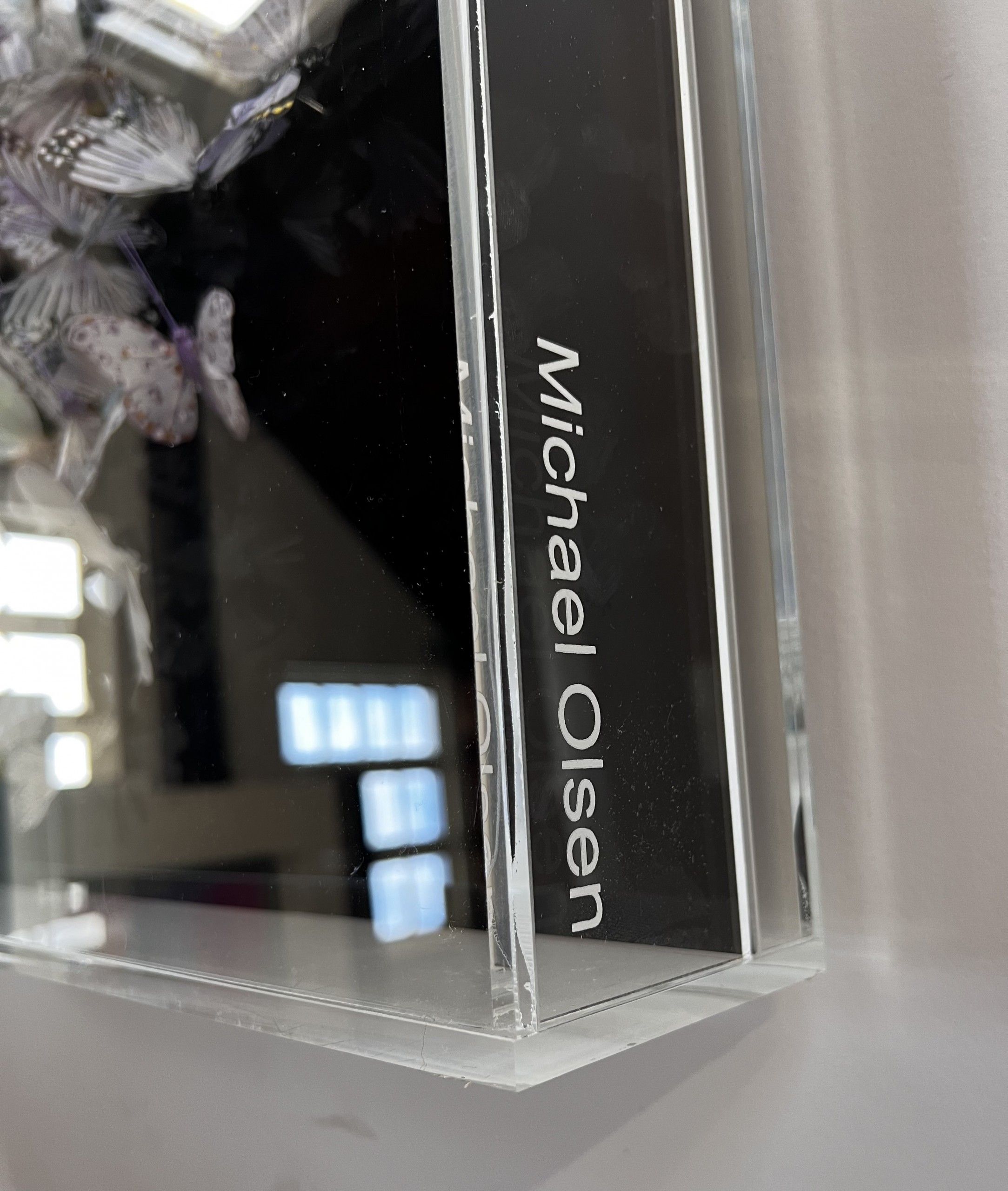 Romantic Flutter is an original work by Michael Olsen. The bright and bold colours of the butterflies make this a joyful piece. Olsen’s use of perspex allows for work to fit sleekly into any interior. Michael Olsen says: My working life has lead me down numerous paths. Retailing medicines through my