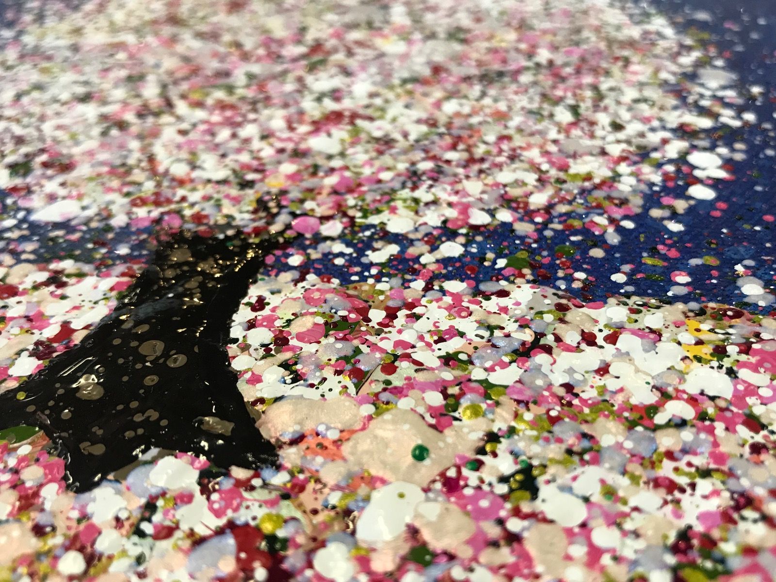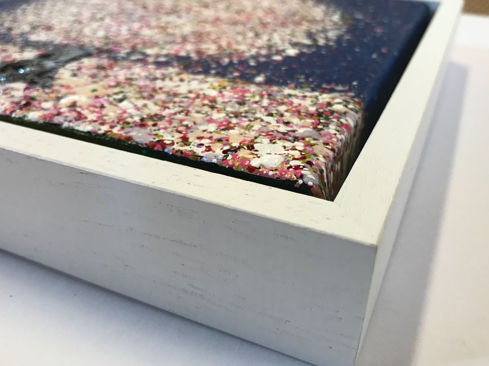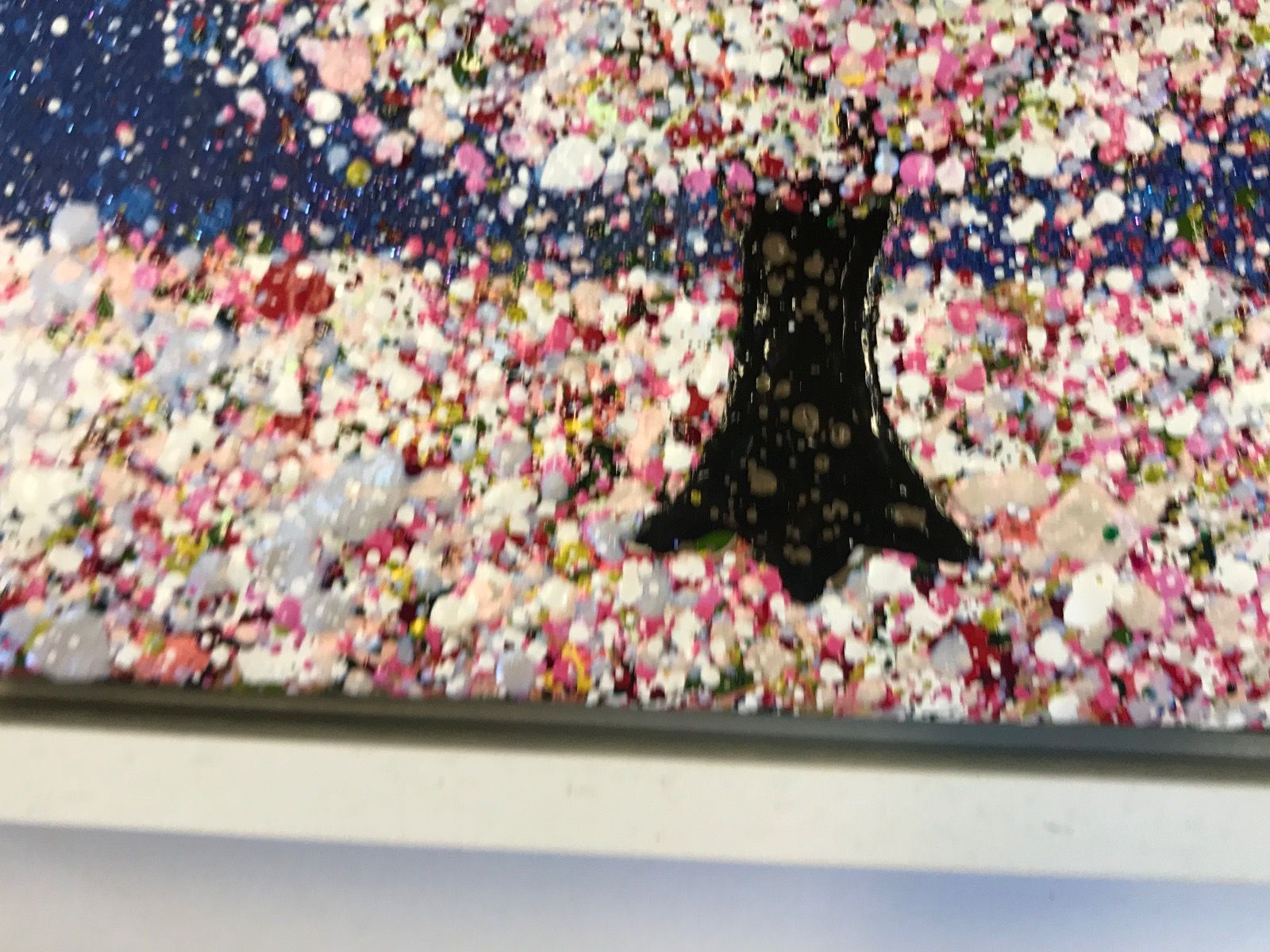 New original landscape painting by Nicky Chubb. Colourful and textured landscape painting of a tree with a shiny background. ADDITIONAL INFORMATION: signed and dated by artist on the back of the painting Acrylic on Canvas 23.2 H x 23.2 W x 4 D cm (9.13 x 9.13 x 1.57 in) Sold framed Image size: Height: 20.5cm