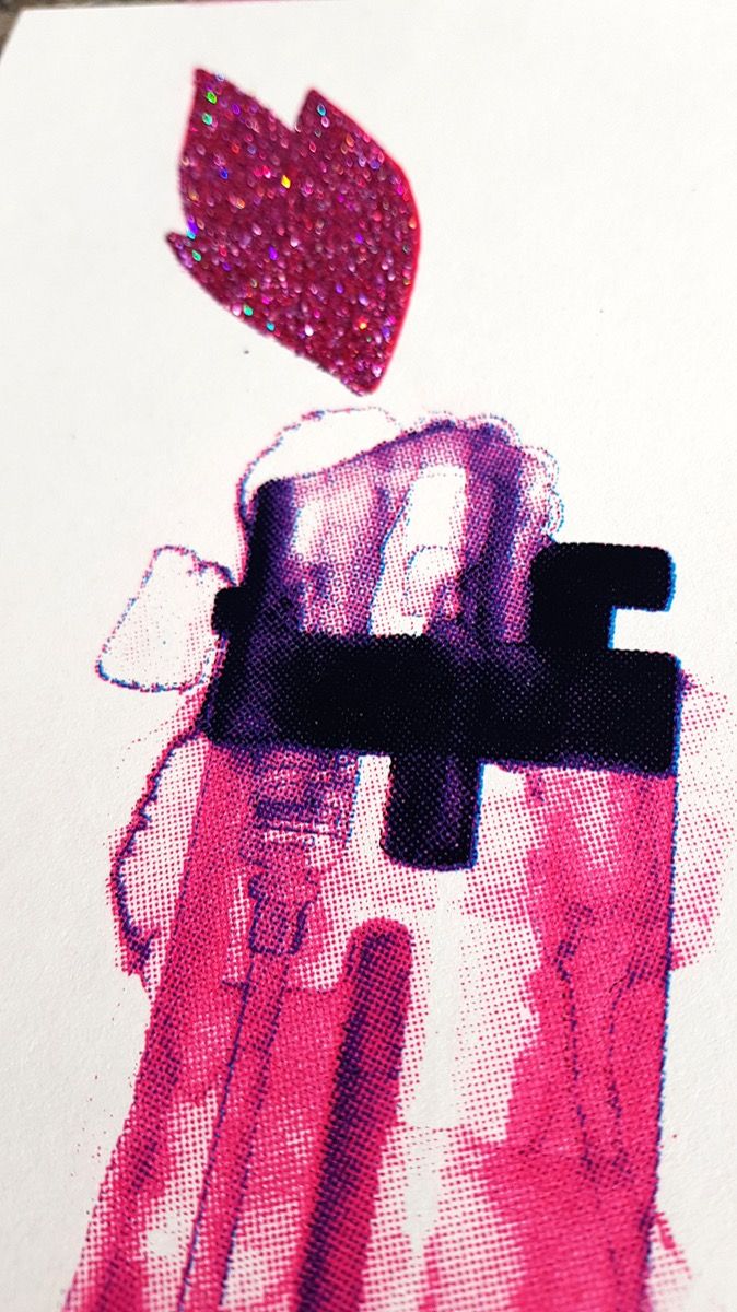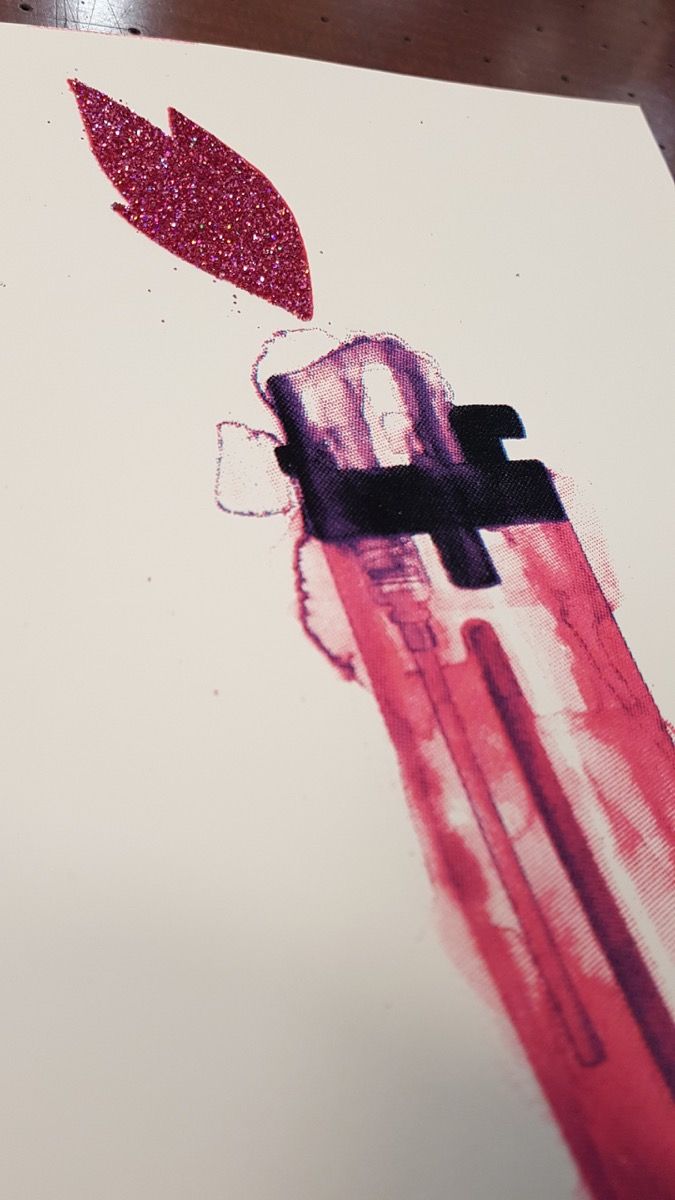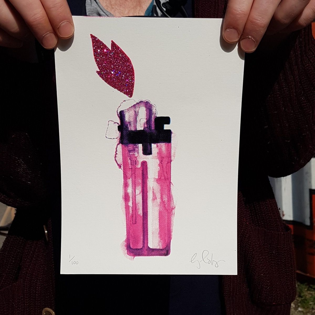 Gavin Dobson Mimi Lighter A 5 layer hand silk screen with a final hand finished layer with pink glitter! Urban art based on a classic design.