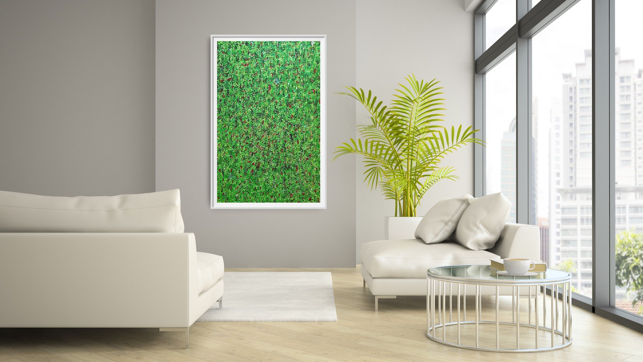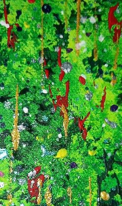 The greens, reds, golds and other vibrant colours makes 'Mistletoe and Wine' a divine painting. It oozes celebration, traditions and festivities.