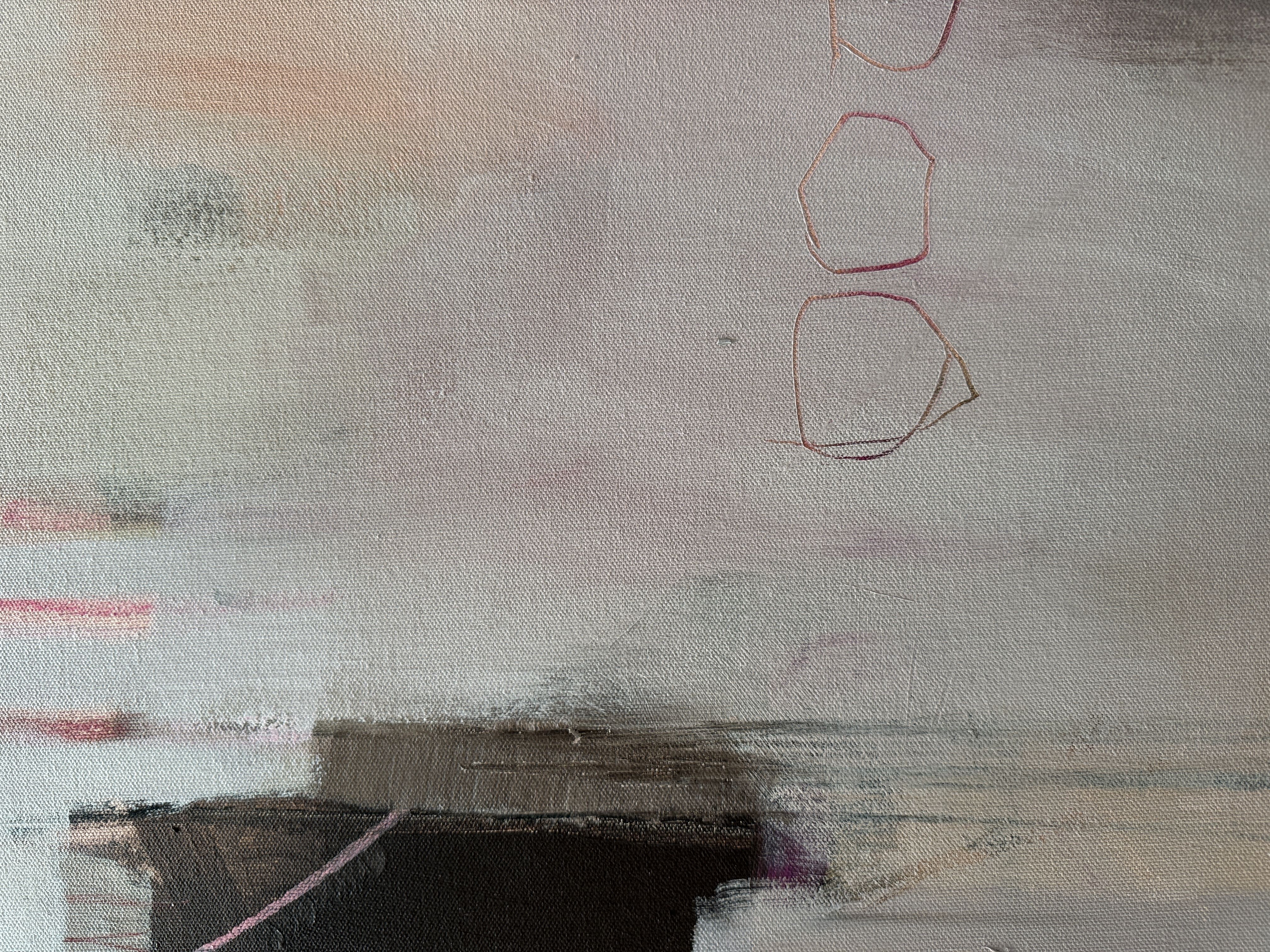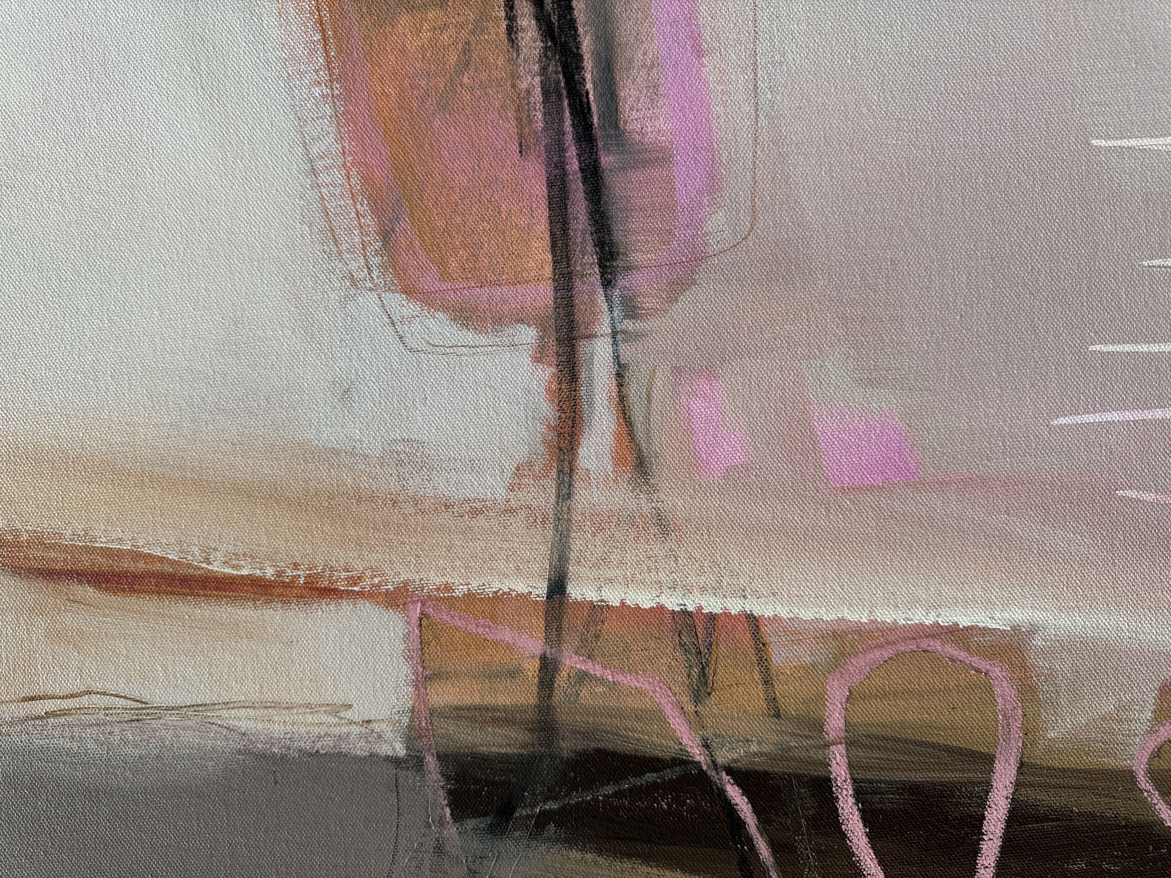 Sometimes just a colour will inspire a painting and the colour mocha did just that with this one. Its a warm muted brown with undertones of chocolate, soft pinks and creamy orange - this is a painting that will inspire some peaceful relaxation but with marks and textures giving extra