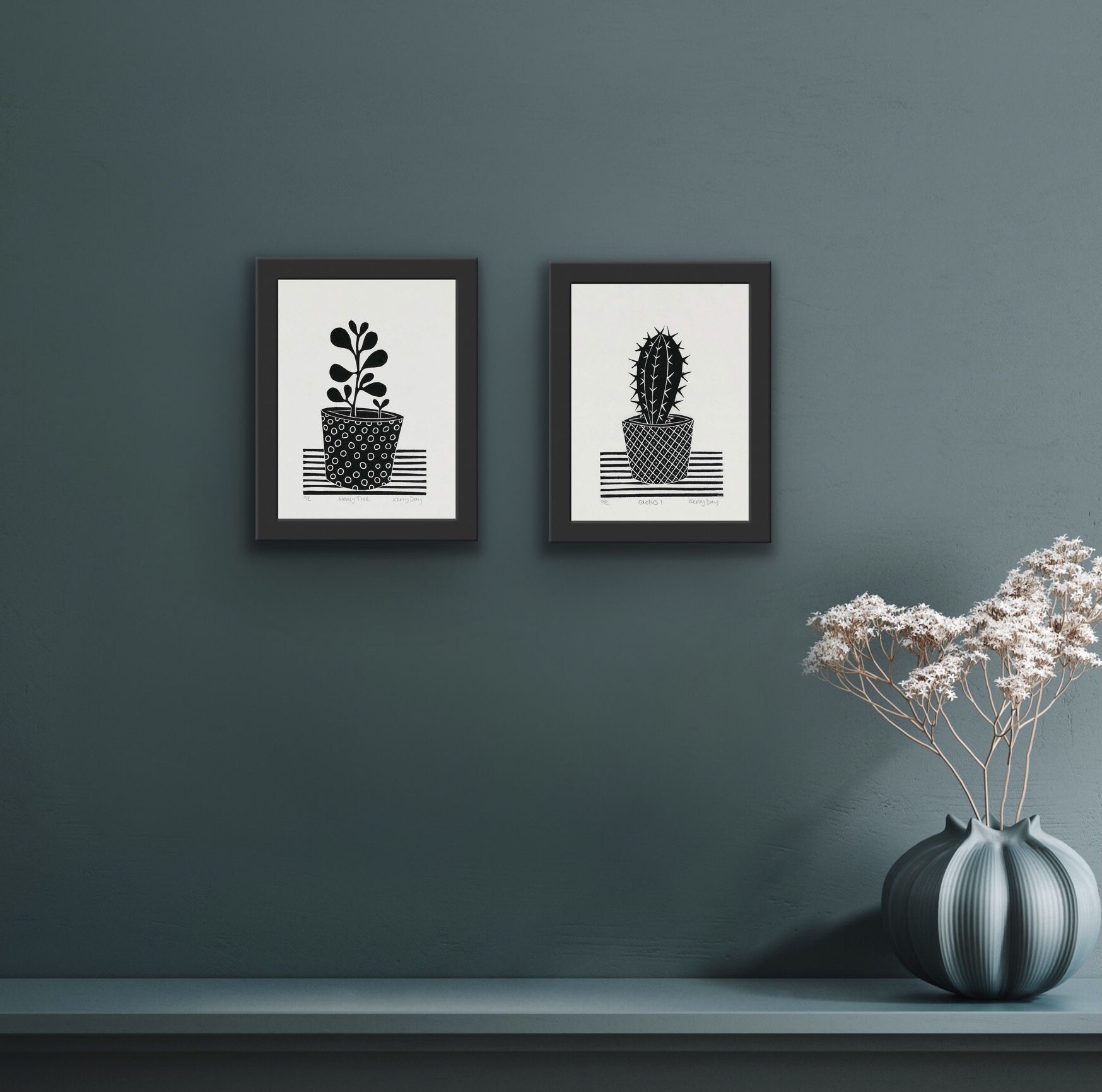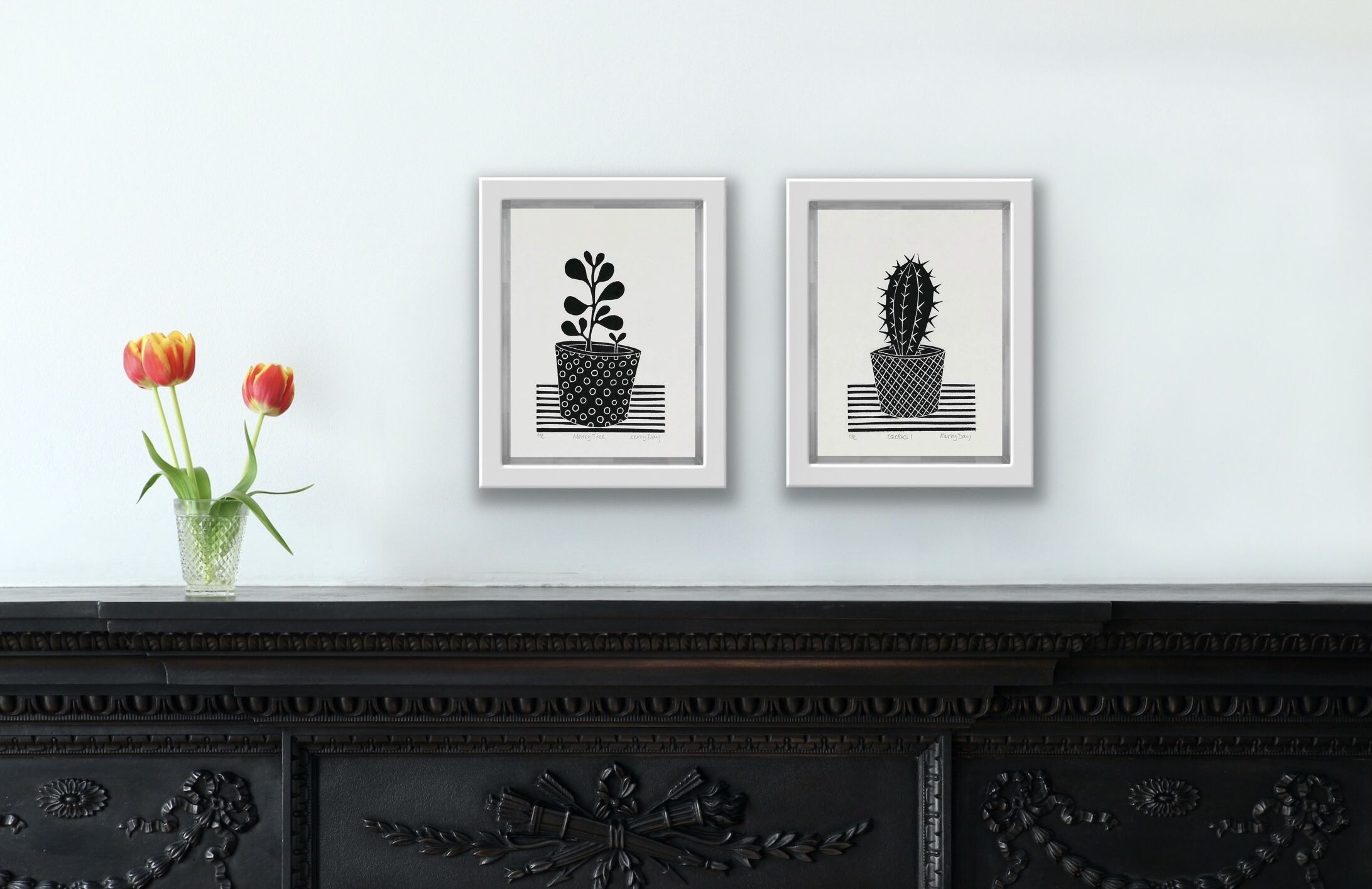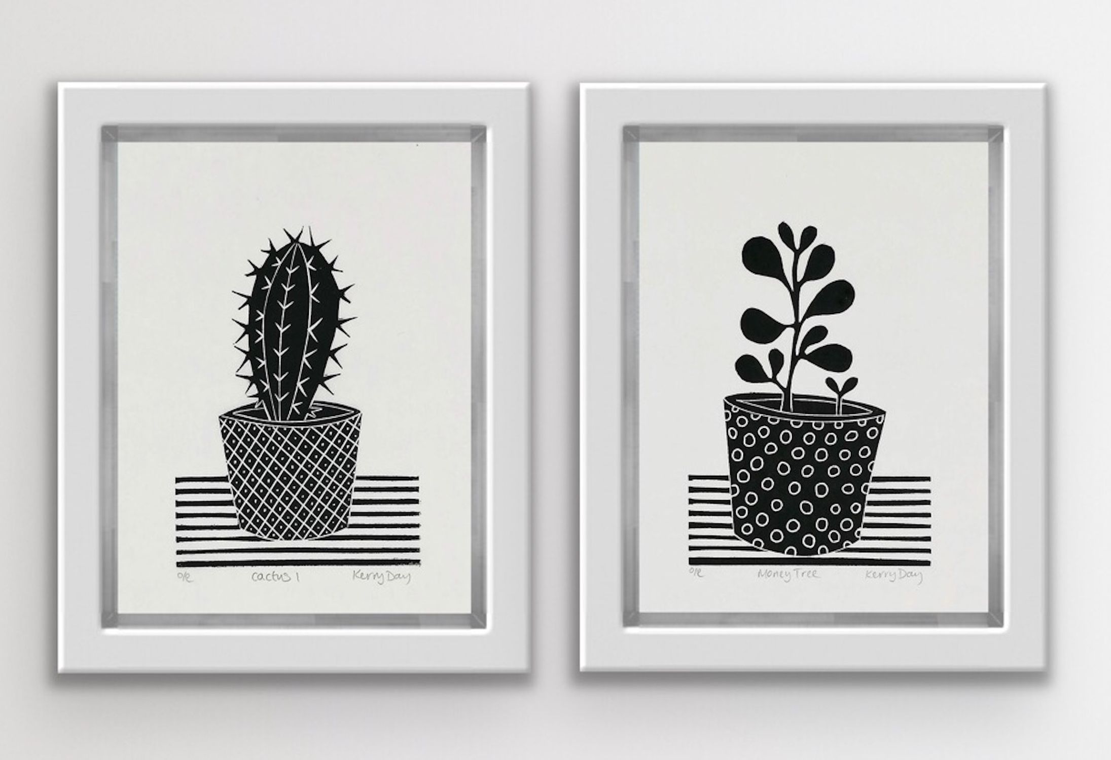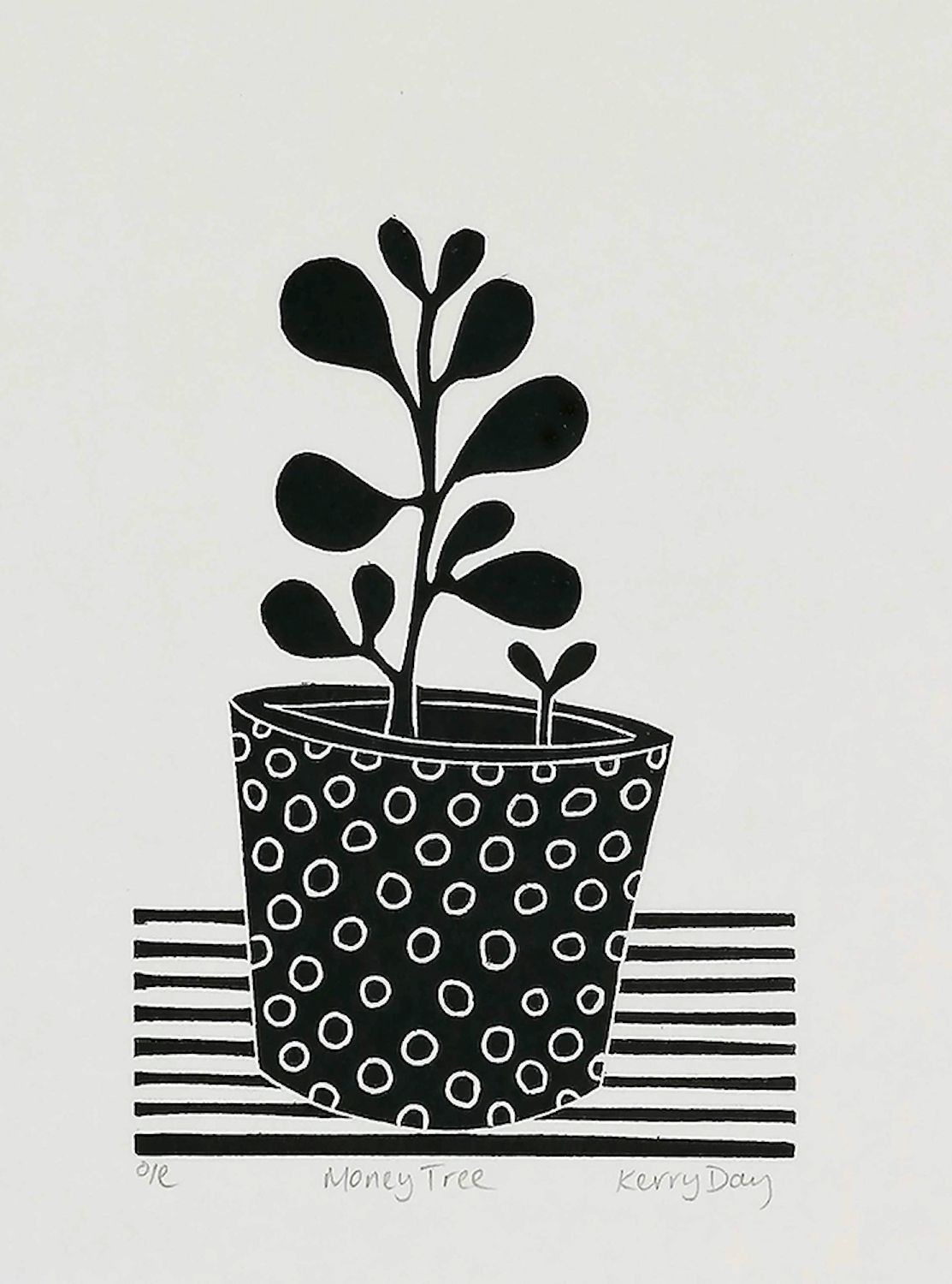 Money Tree and Cactus I Diptych Overall size cm : H40 x W30 Kerry Day, Money Tree, Limited Edition Linocut Print, Still Life Art for Sale [2019] limited_edition Linocut Print Edition number O/E Image size: H:14 cm x W:10 cm Complete Size of Unframed Work: H:20 cm x W:15 cm x D:0.1cm Sold Unframed Kerry Day Money Tree Open