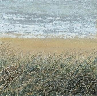 Mull Beach by Judith Yarrow. A limited edition mounted giclee print by Judith Yarrow, depicting the shore-front of a beach in Mull off the west coast of Scotland. Signed and dated. Size stated below includes mount.