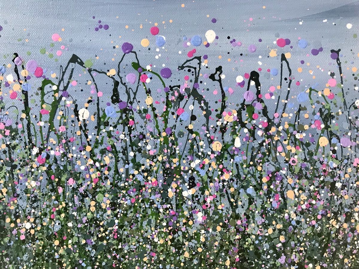 Muted Pink Meadows - An Original semi-abstract painting by Lucy Moore. Using her signature string grass technique and a muted palette Lucy has created a semi-abstract twist to her classic meadow paintings, This piece would brighten any home or office, bring a little of the outside inside. We love Lucy