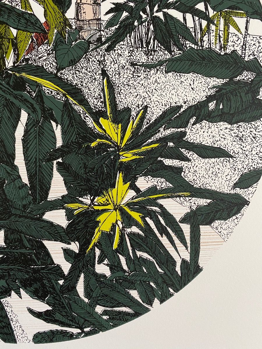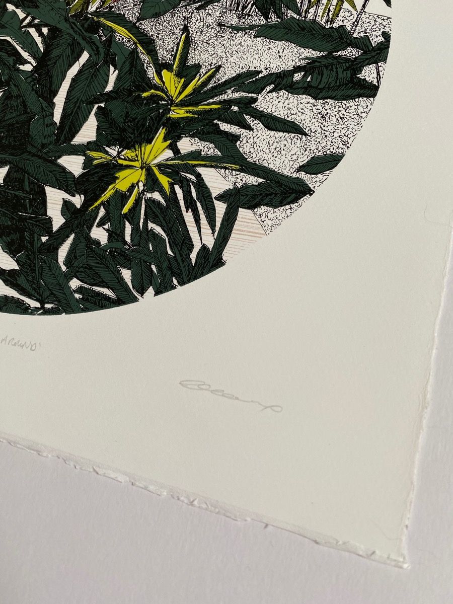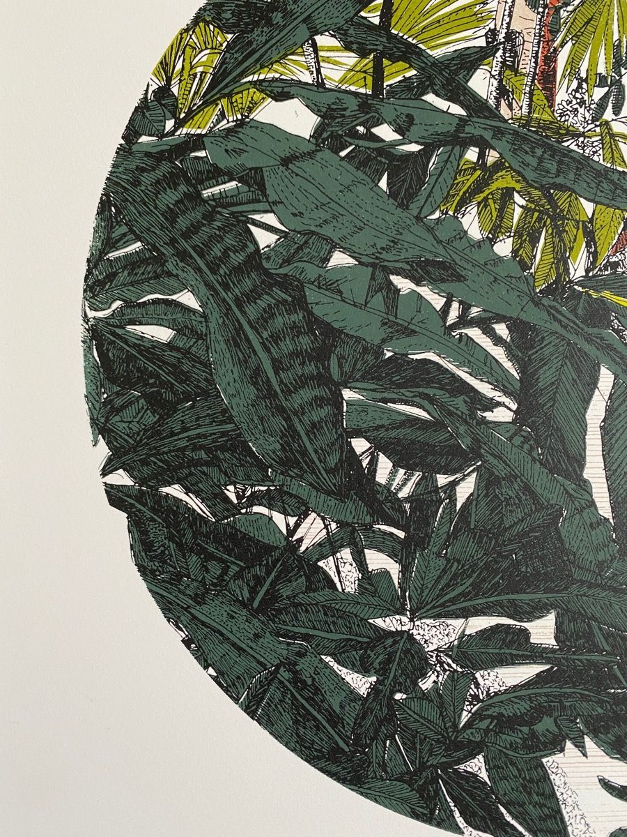 Clare Halifax Nature - Nice to Have A Round Limited Edition Botanical Screen Print Edition of 100 Sheet Size: H 38cm x W 37cm x 0.1cm Sold Unframed Hand printed by the artist onto somerset satin paper 300gms with deckle edge. Please Note that in situ images are purely an indication of how a piece may look Nature -