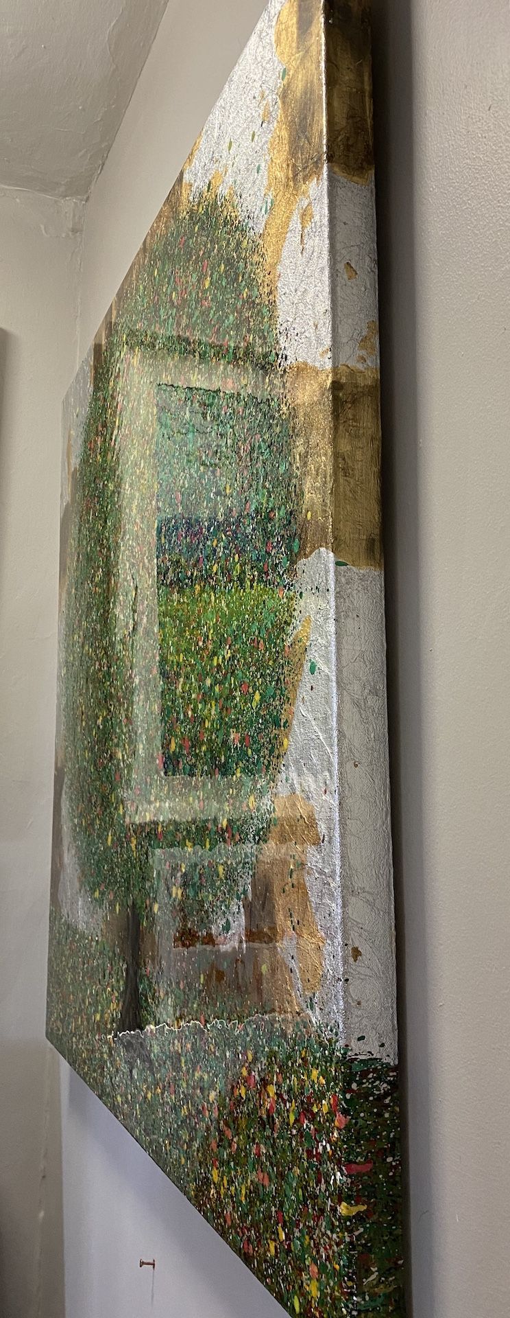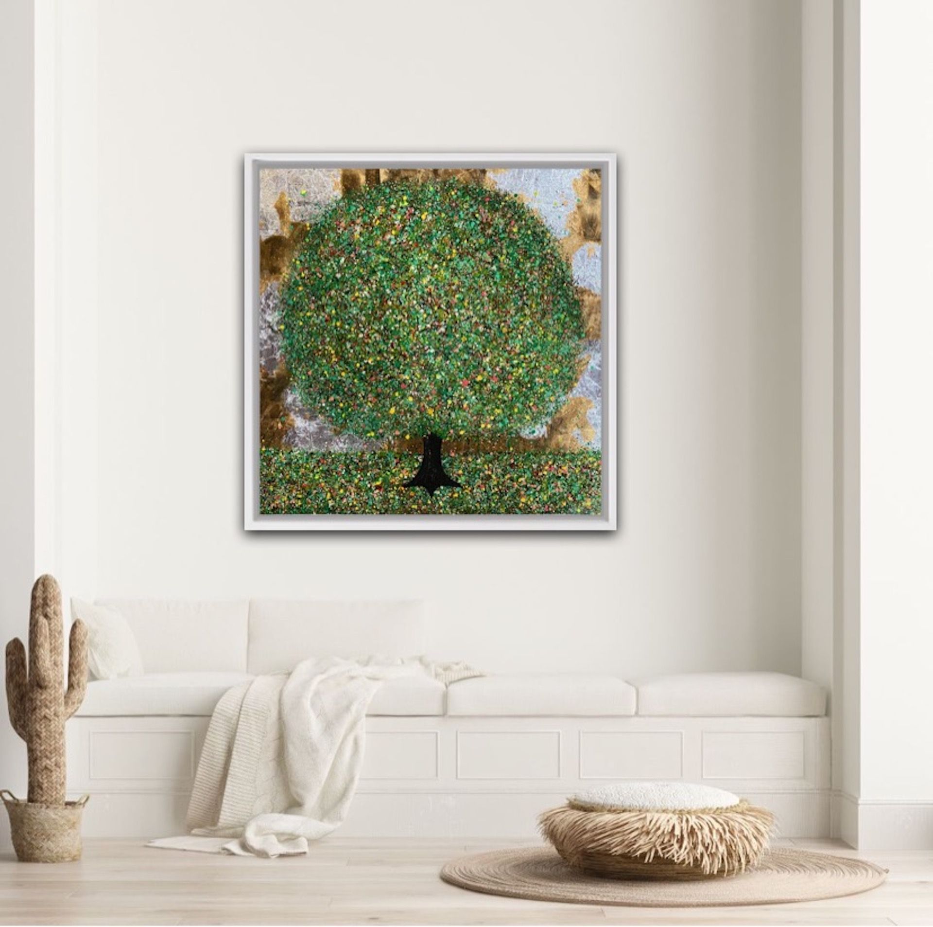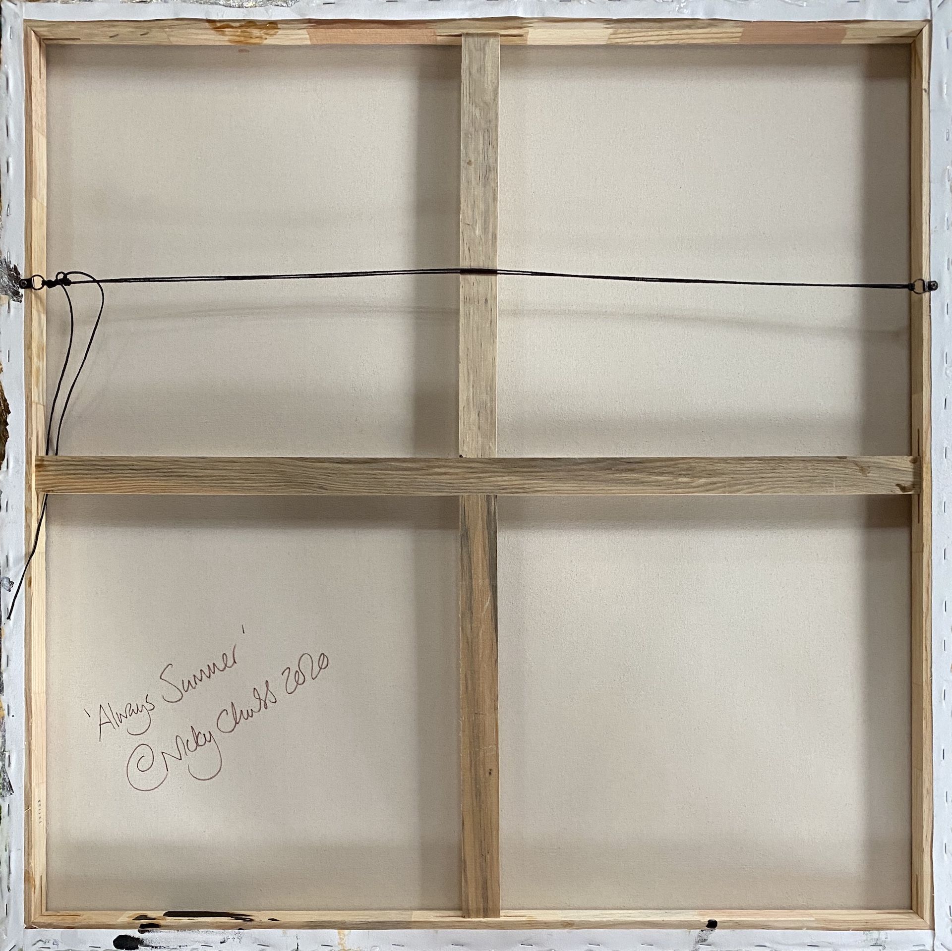 Nicky Chubb Always Summer Original Abstract Landscape Painting Acrylic Paint on Canvas Canvas Size: H 100cm x W 100cm x D 4cm Sold Unframed (Please note that in situ images are purely an indication of how a piece may look.) Always Summer is an original painting by Nicky Chubb. This large scale canvas has a bold but