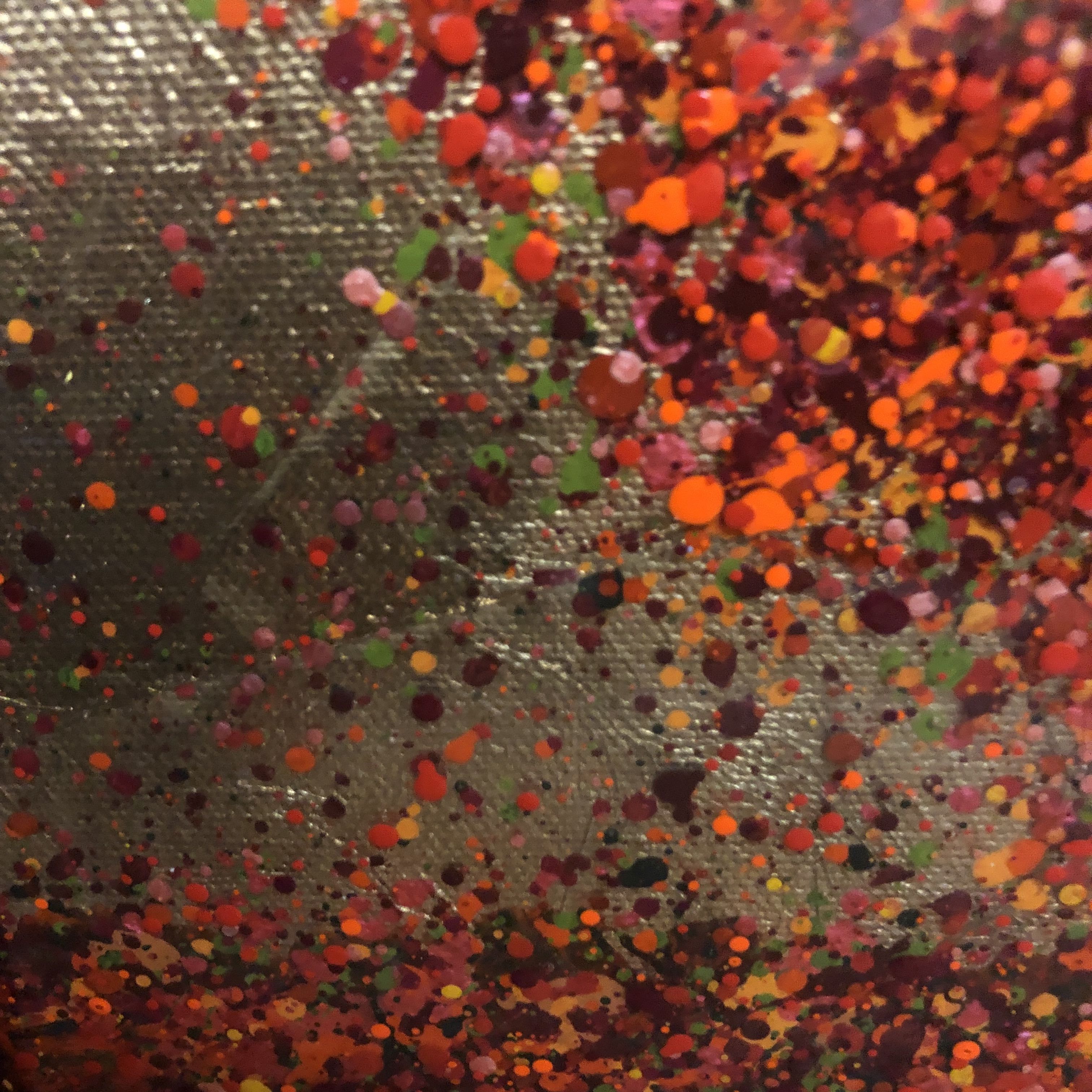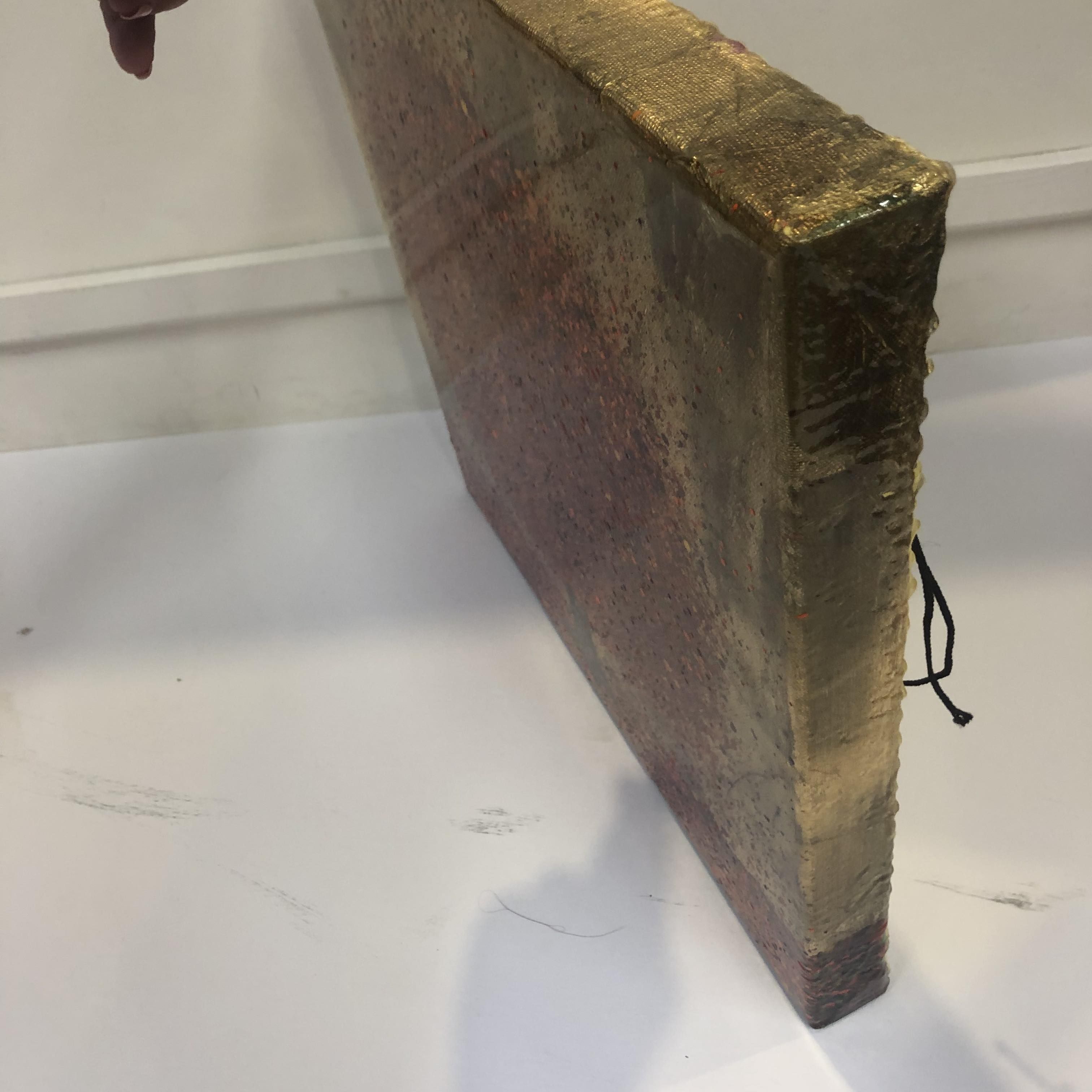 Nicky Chubb Autumn Leaves Dancing Original Landscape Painting Acrylic Paint and Resin on Canvas Canvas Size: H 41cm x W 41cm x D 4cm Sold Unframed Free Shipping Autumn Leaves Dancing is an original painting by Nicky Chubb. The gold background and resin lacquer bring out the red tones of the trees blossom evermore vibrant. Nicky Chubb artist