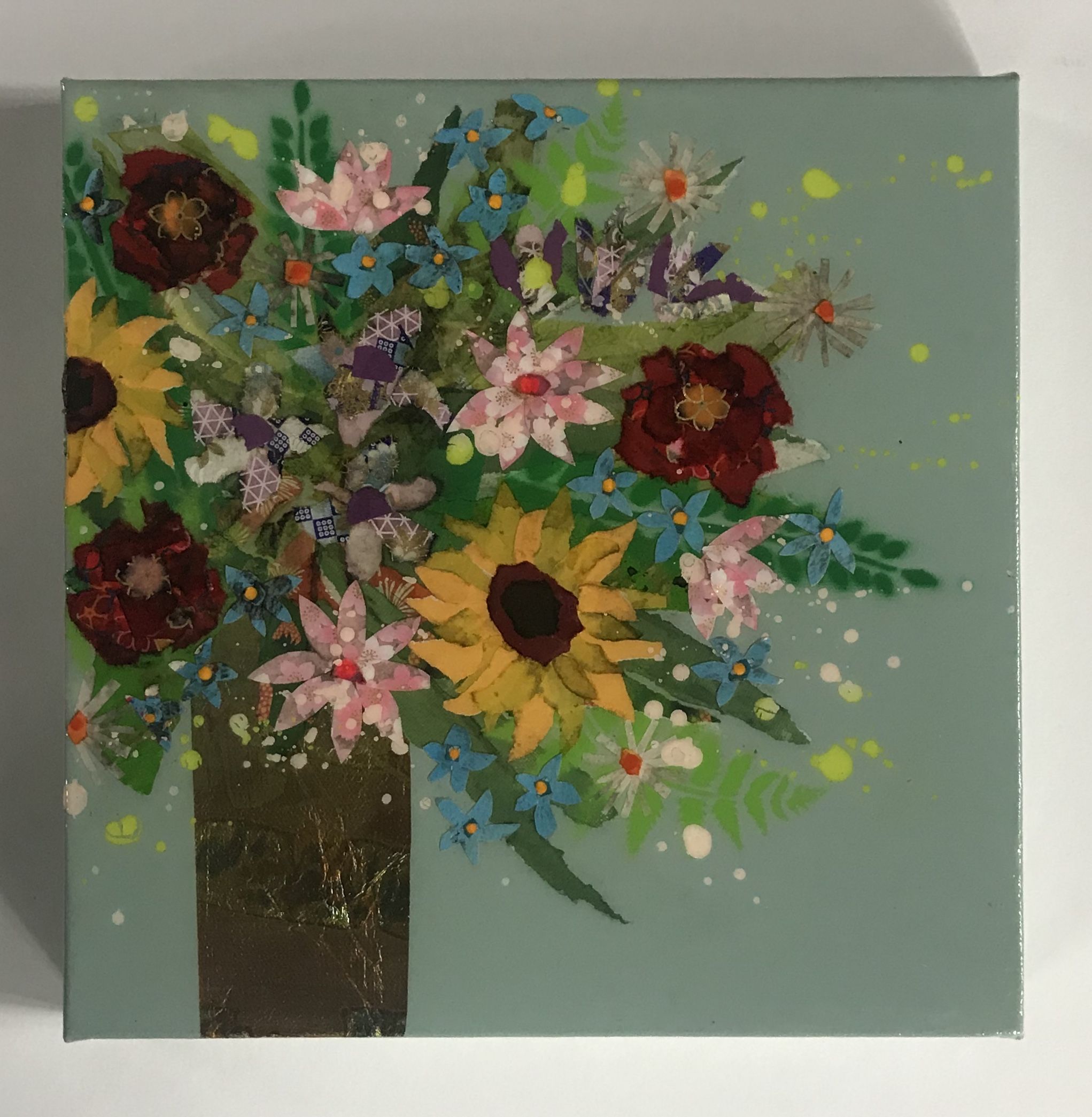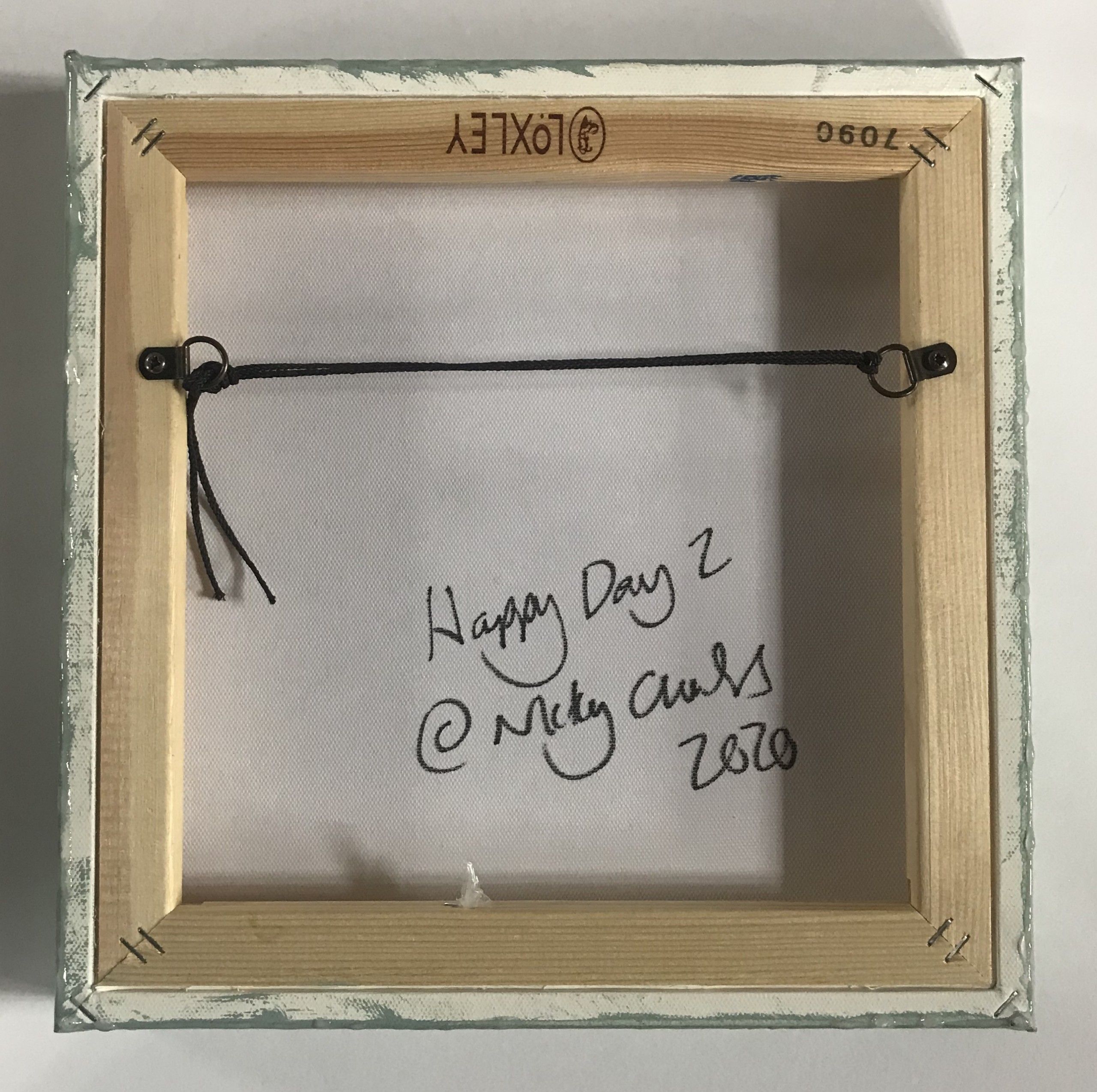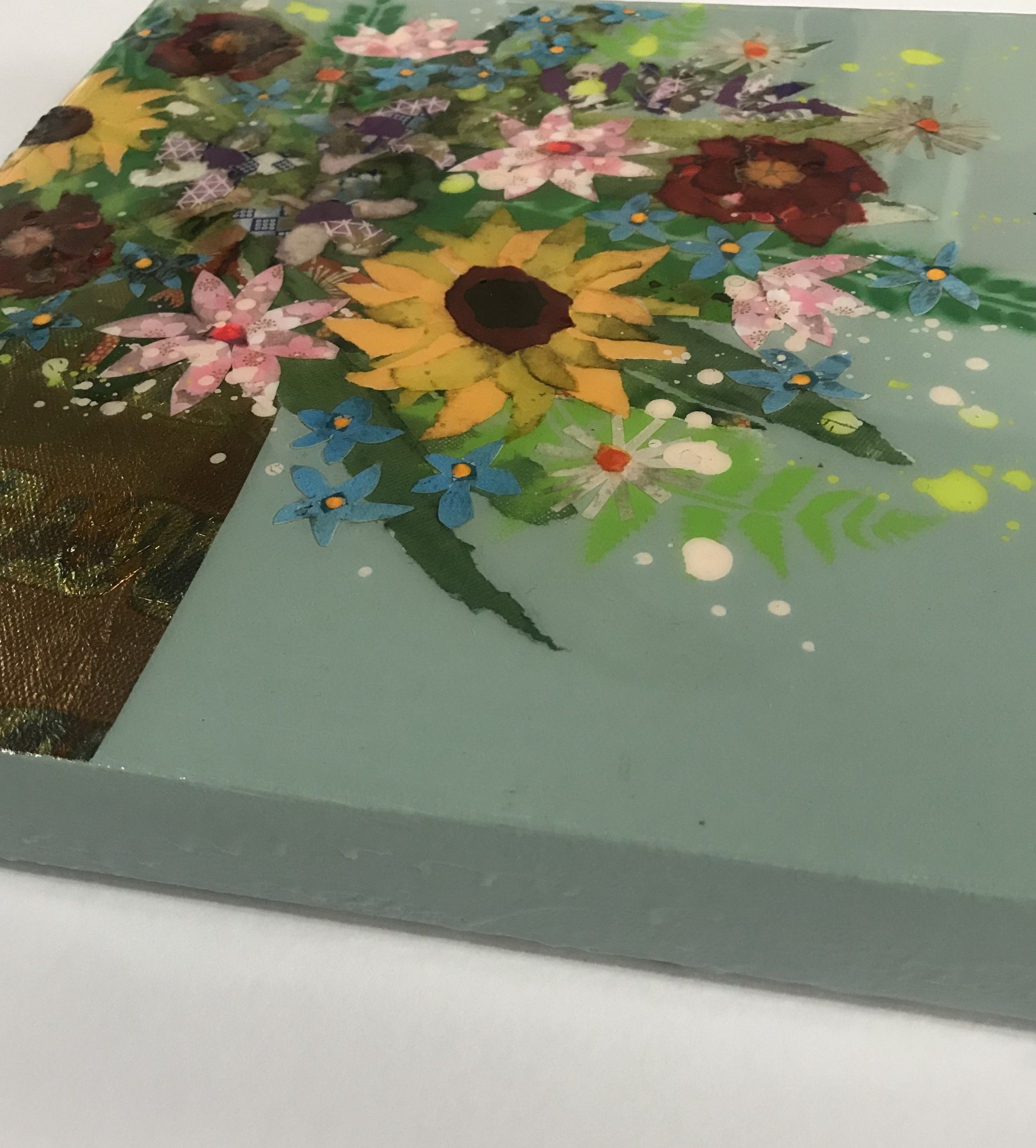 Nicky Chubb Happy Day II Original Collage Collage with Resin Image Size: H 30cm x W 30cm Signed on Back Sold Unframed but Ready to Hang Nicky Chubb artist with Wychwood Art. Nicky Chubb comments " My work is essentially optimistic, whether I'm painting flowers or the sea, the emotions I aim to