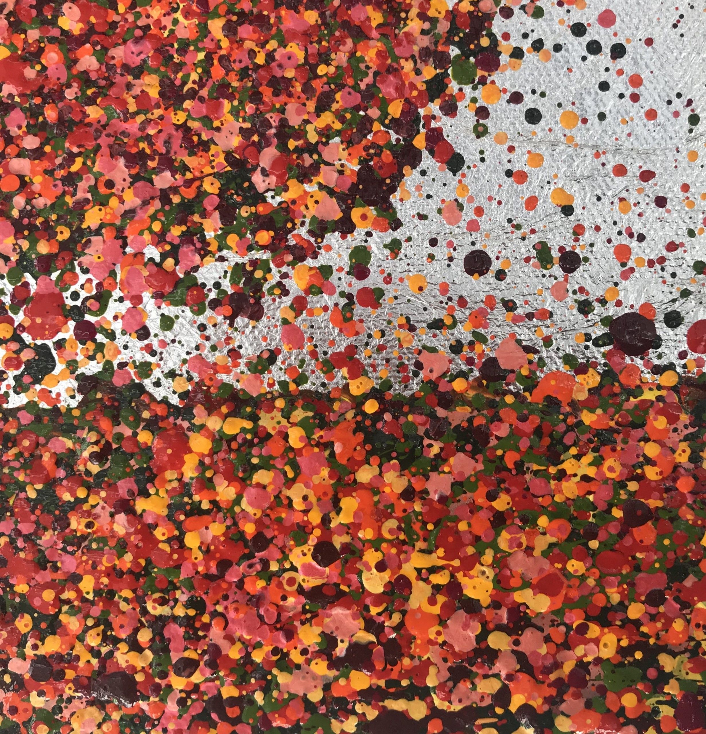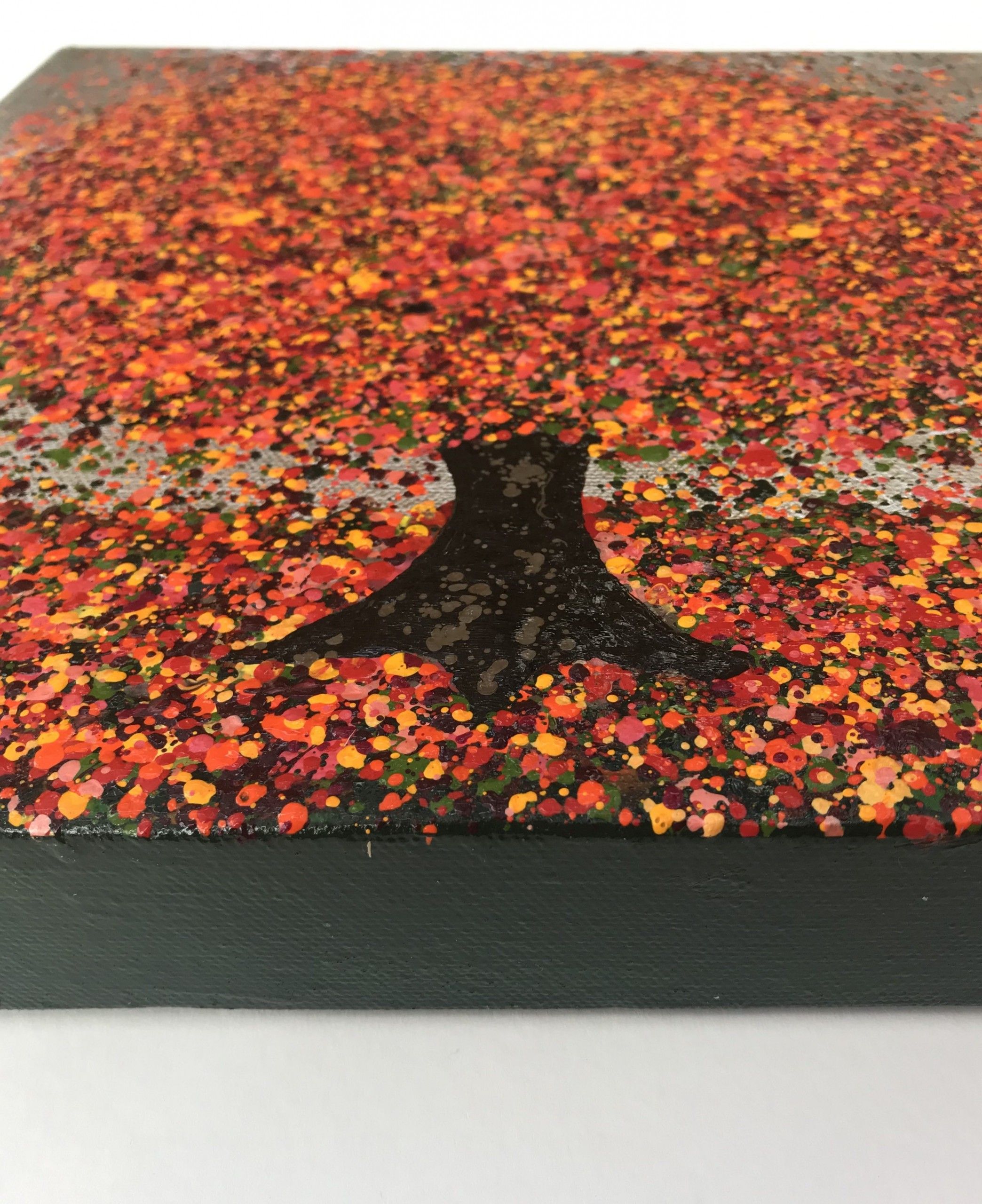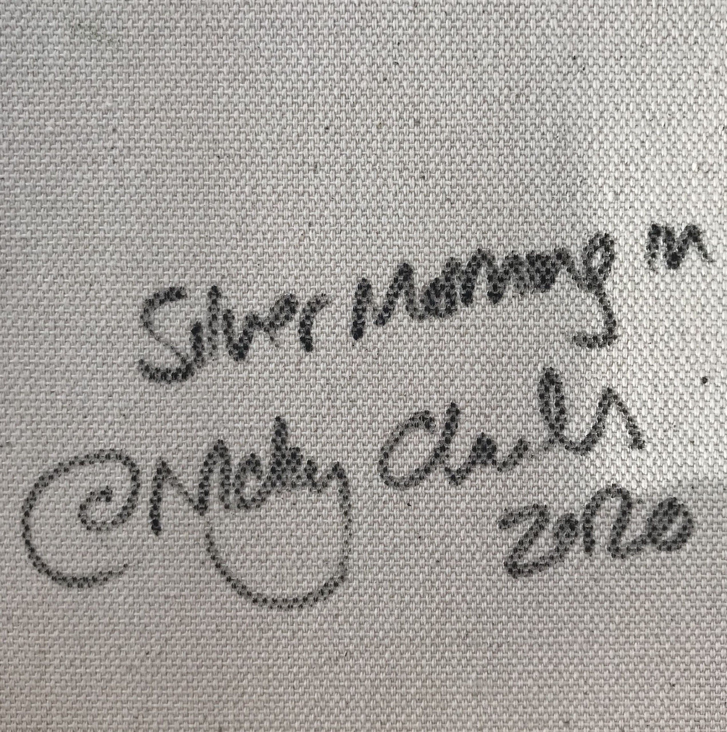 Silver Morning in Autumn III by Nicky Chubb is an original landscape painting featuring beautiful autumnal colours on the tree these are complemented with the contrasting silver background.