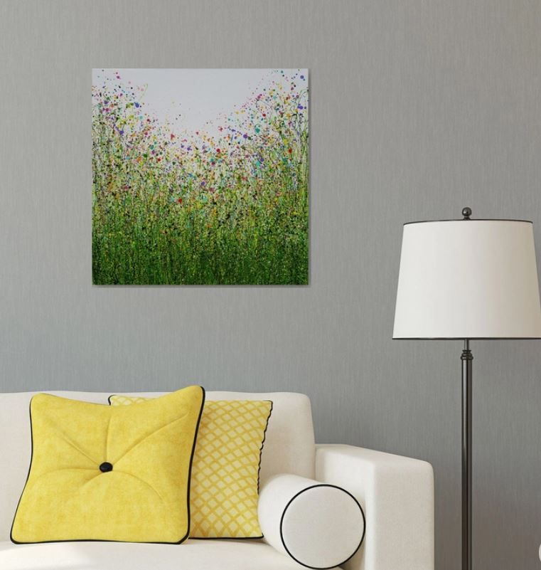 Painted Meadows 12 An Original semi-abstract painting by Lucy Moore. Using her signature string grass technique Lucy has created a semi-abstract twist to her classic meadow paintings. This piece would brighten any home or office, bring a little of the outside inside. Lucy Moore comments "I have always enjoyed being