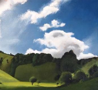 Tim Woodcock-Jones. Near Pegsdon Hill in the Chilterns. Original Oil painting on wood panel. Height 30.5, Width 40.5 Unframed.
