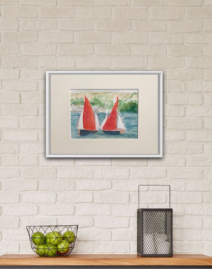 Peri Taylor Salcombe Yawls Racing Study Watercolour and Ink Size: H 30cm x W 40cm Sold Unframed (Please note that in situ images are purely an indication of how a piece may look). Salcombe Yawls Racing Study is an original painting by Peri Taylor. It features 2 sailing boats on the Salcombe Estuary in Salcombe, Devon.
