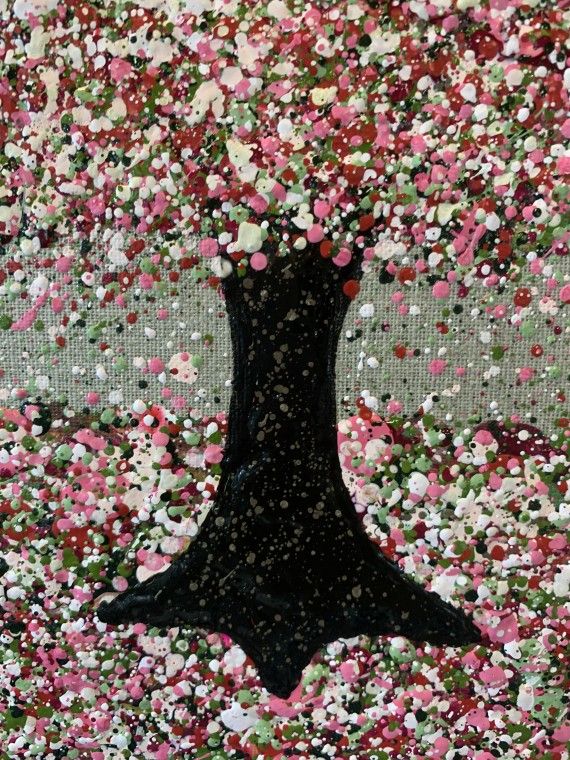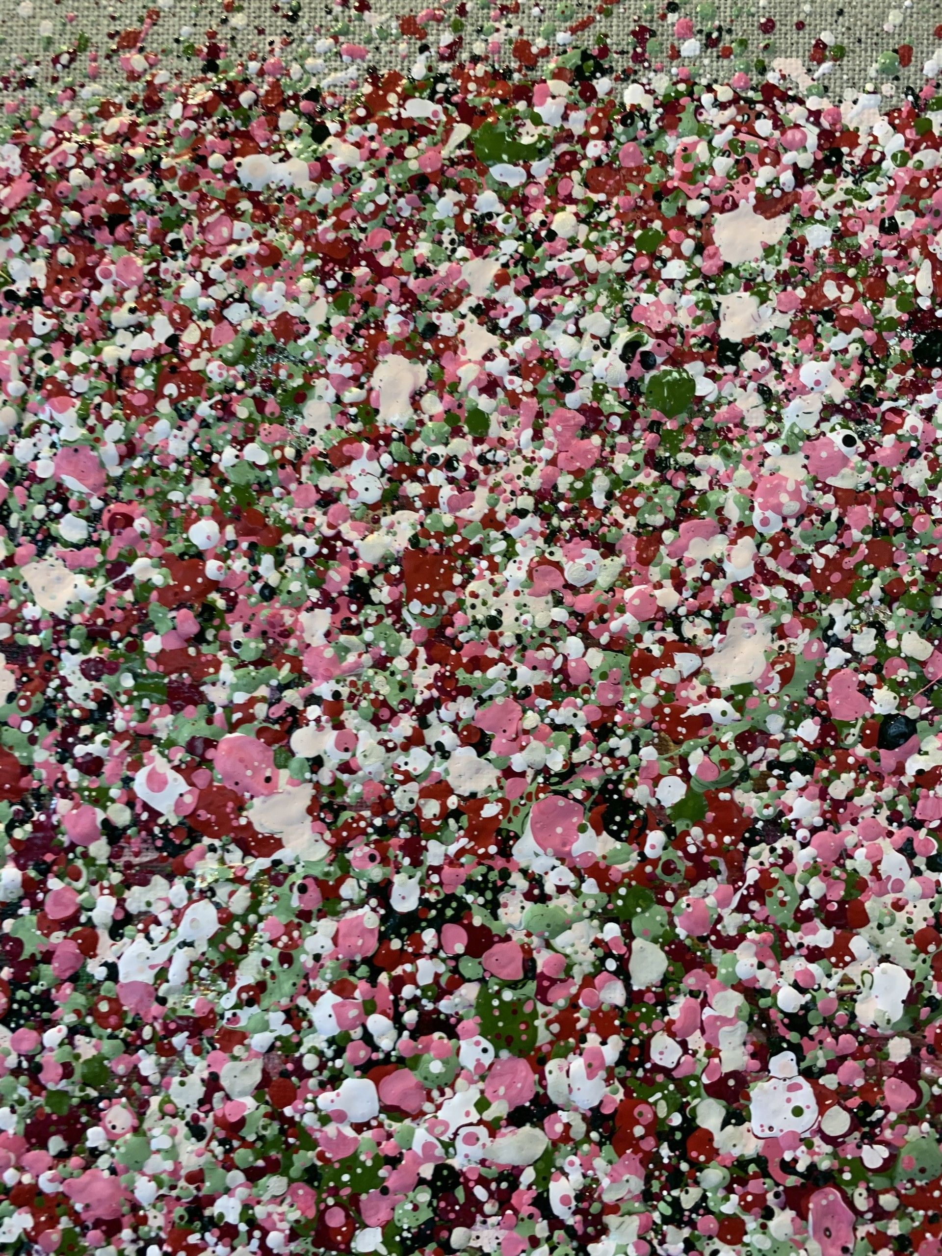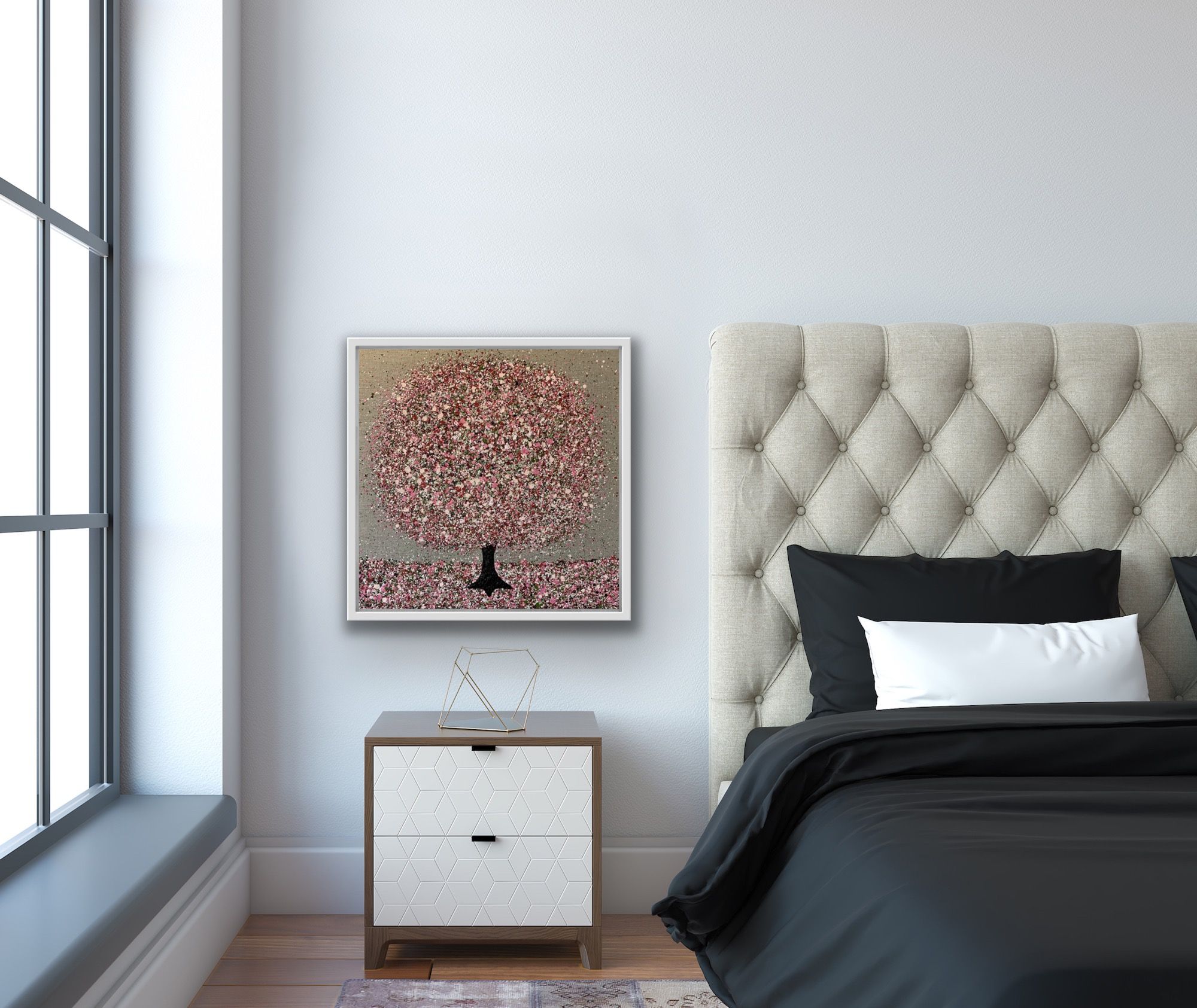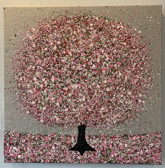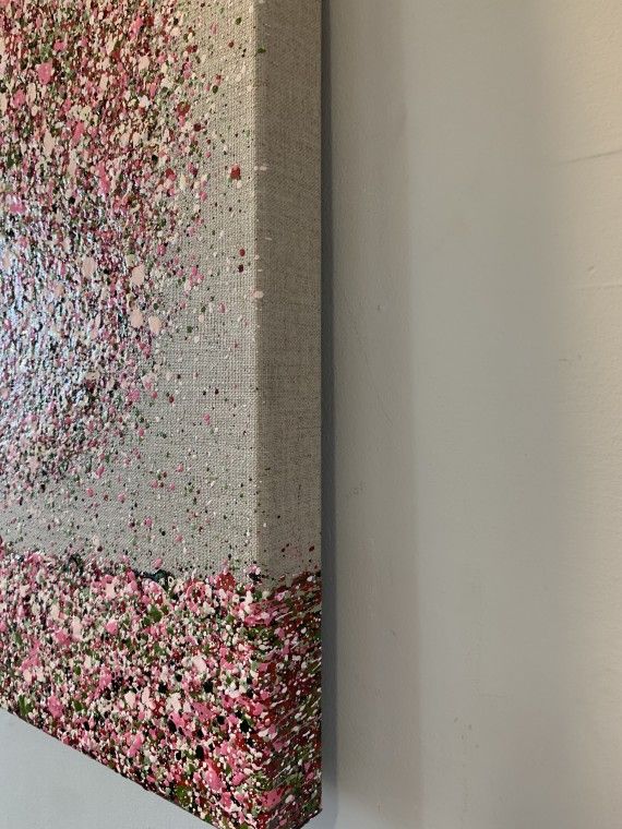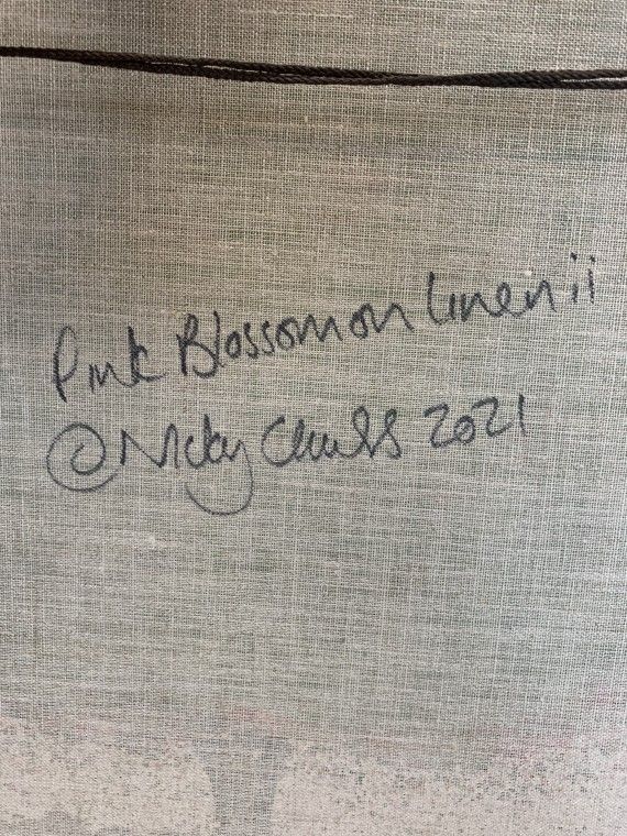 Pink Blossom on Linen II By Nicky Chubb. Original Acrylic paint on canvas.