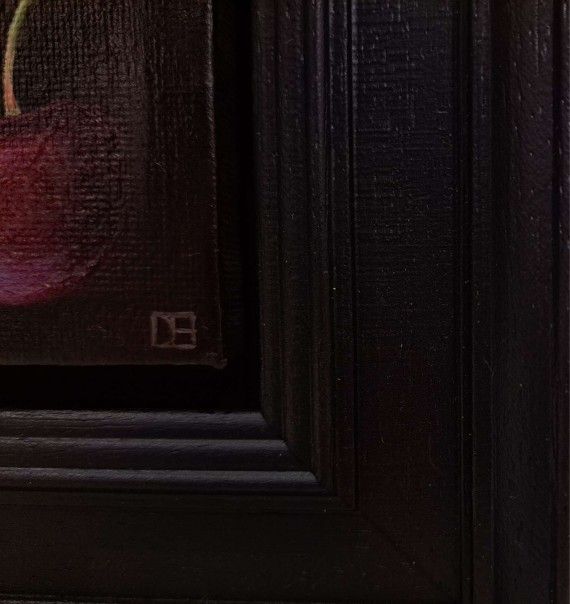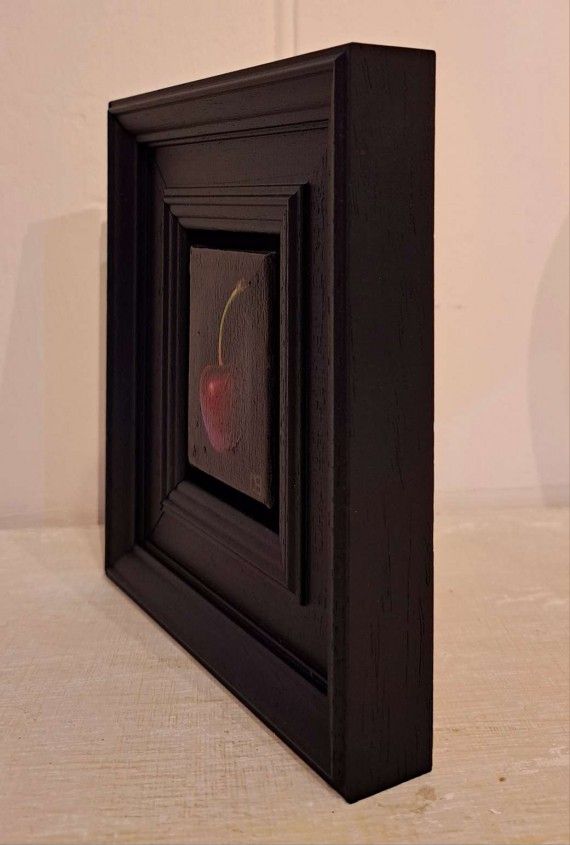 original Oil paint on canvas Image size: H:7 cm x W:5 cm Complete Size of Unframed Work: H:7 cm x W:5 cm x D:2cm Frame Size: H:17 cm x W:15 cm x D:5cm Sold Framed Please note that insitu images are purely an indication of how a piece may look Pocket Dark Cherry is an original oil