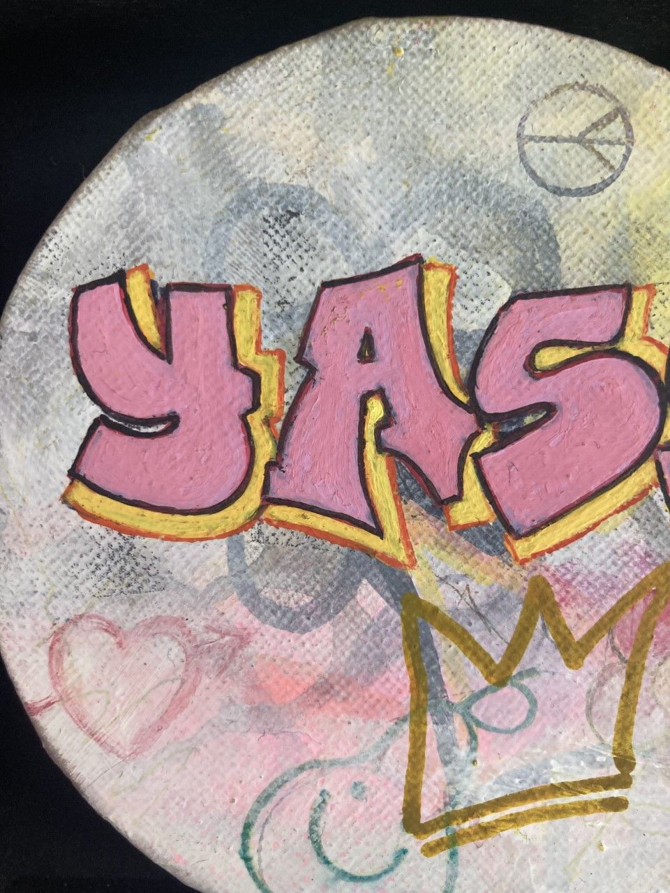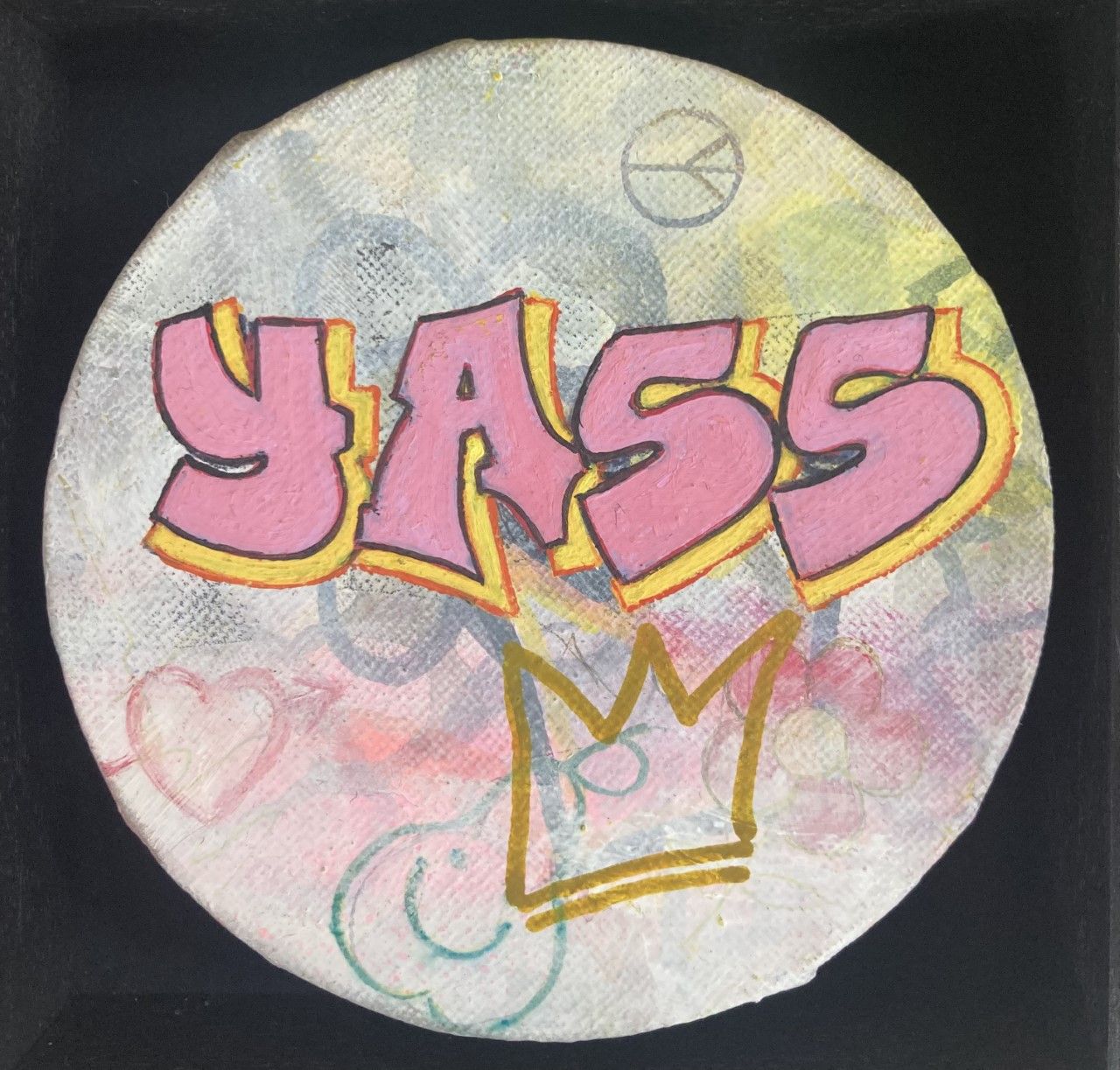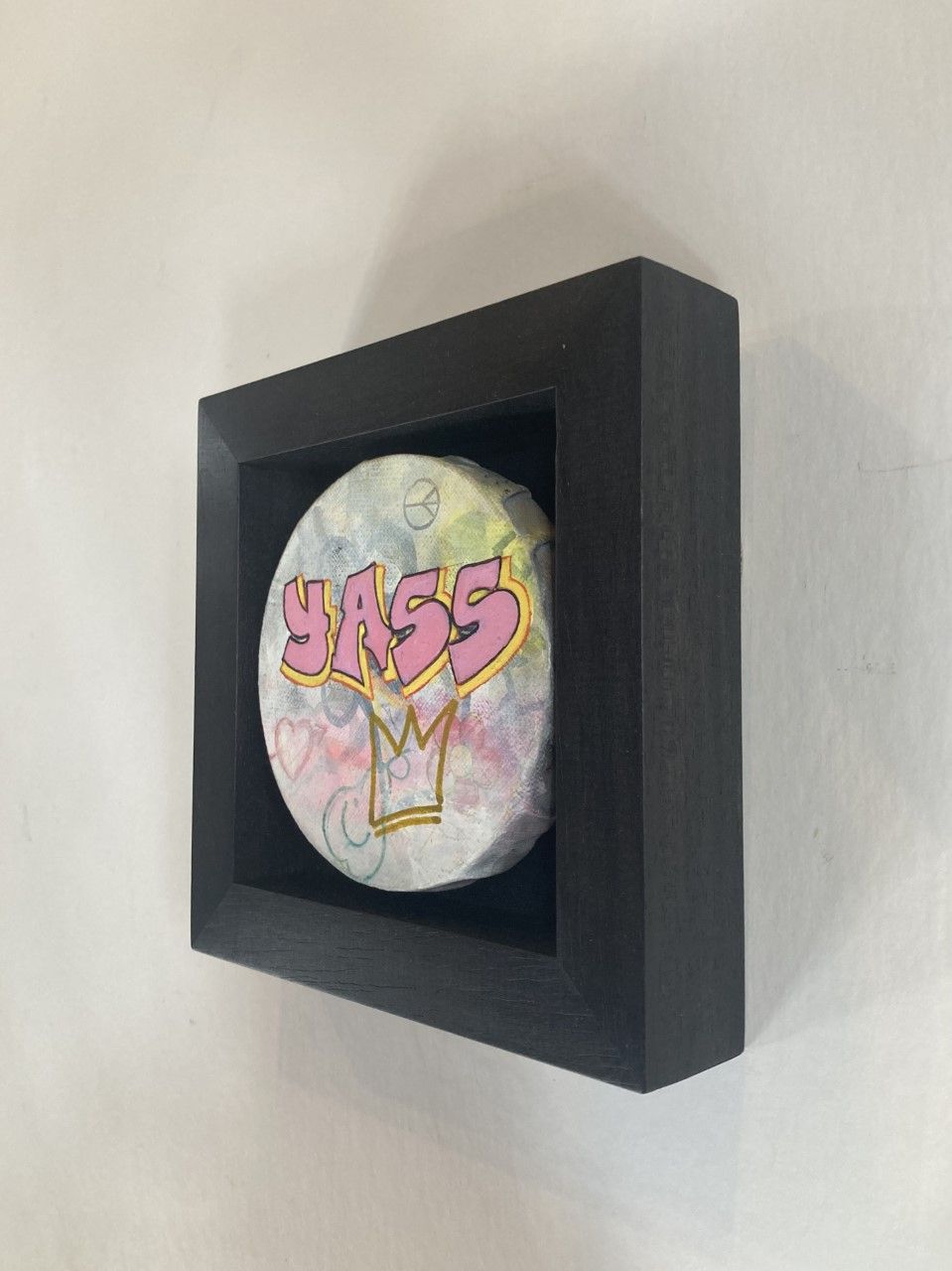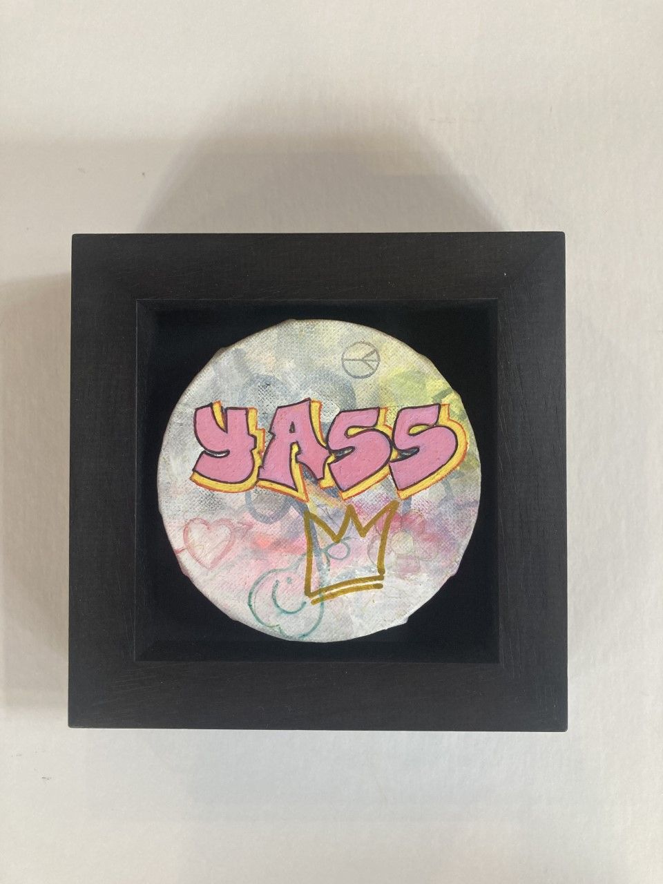 THIS ARTWORK IS NOW OUT OF STOCK. PLEASE SEE DANI HUMBERSTONE'S OTHER WORKS. Pocket Graffiti Wall: YASS is an original mixed-media piece by Dani Humberstone as part of her pocket graffiti collection.