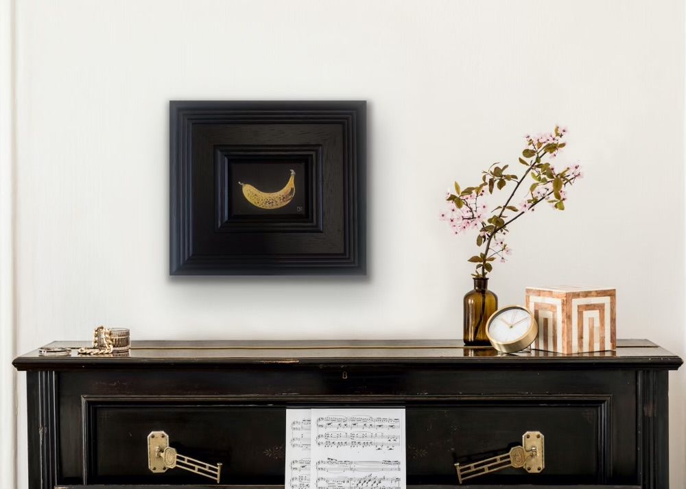 Pocket Ripe Banana is an original small scale oil painting by Dani Humberstone. As part of the artists pocket series.