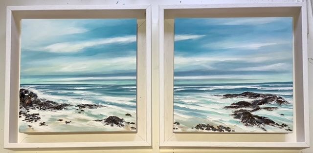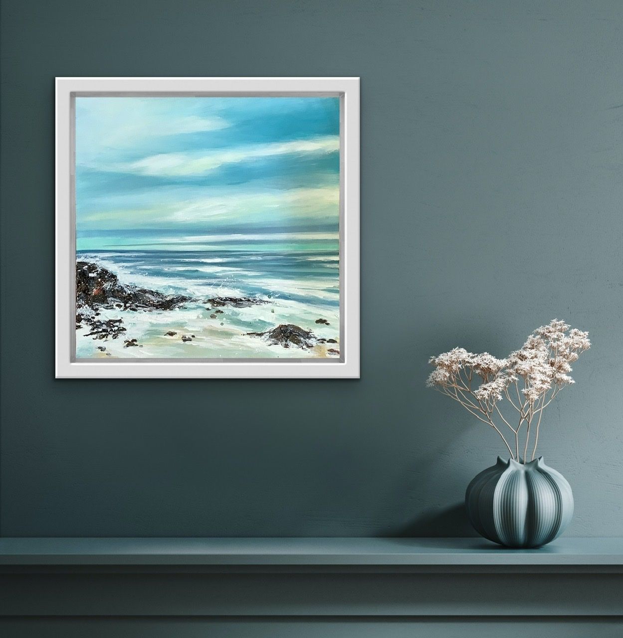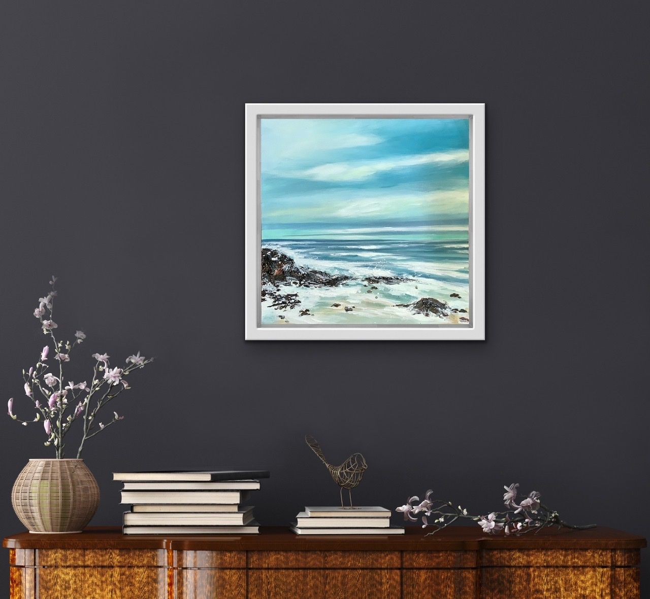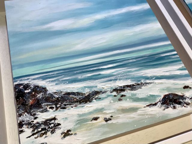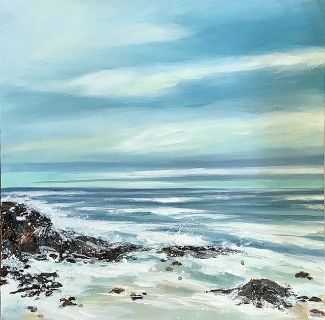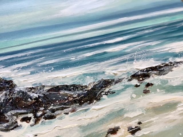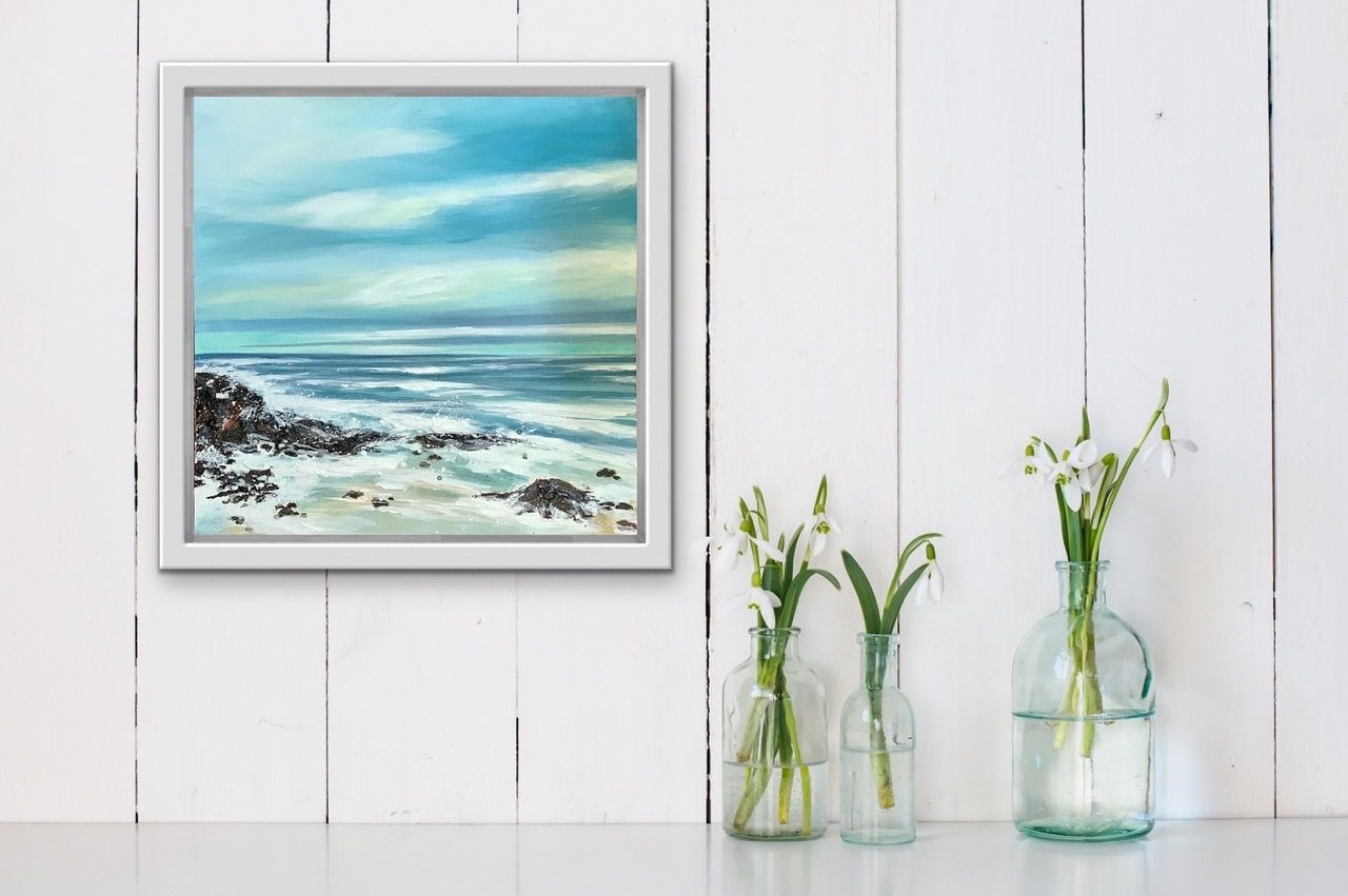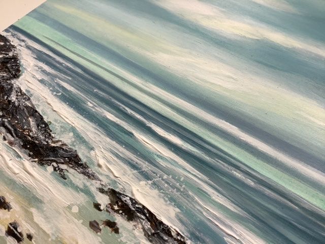 Priest Cove 1 has been painted from sketches Adele has taken on her many trip to Cornwall. Priests Cove is a spectacular part of the Cornish coastline and one Adele loves to paint in all weathers. Adele normally loves to start her works plein air,