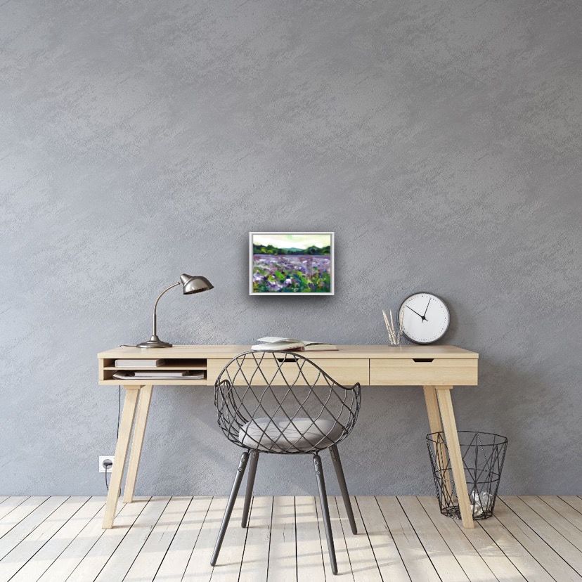 Rachel Painter Purple Fields Study Original Landscape Painting Oil On Board Image Size: 15 x 20 x 0.4 cm Sold Unframed Free Shipping Please note that in situ images are purely an indication of how a piece may look. Feel the breeze passing through the wildflowers in ‘Purple Fields’, an original landscape oil painting by Rachel Painter, painted