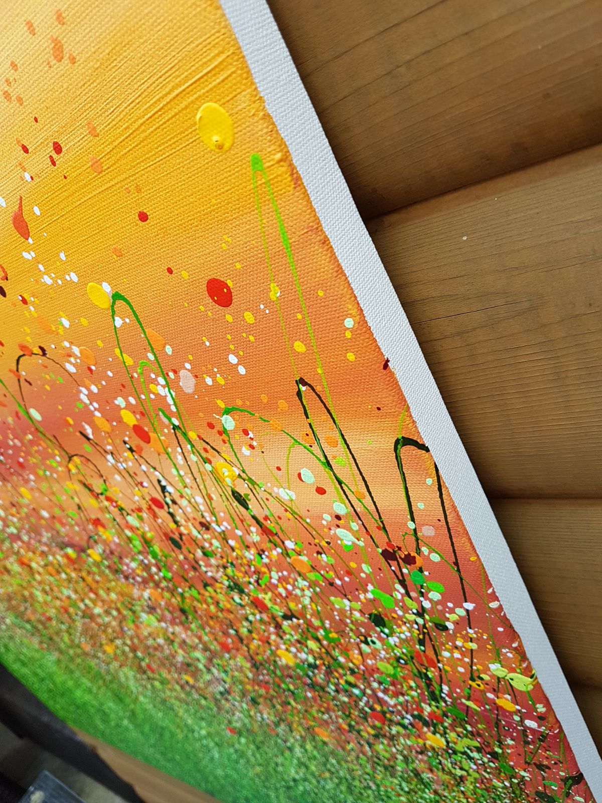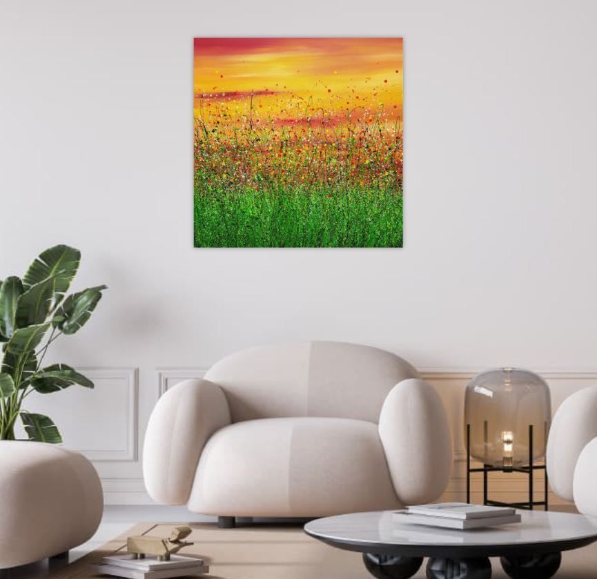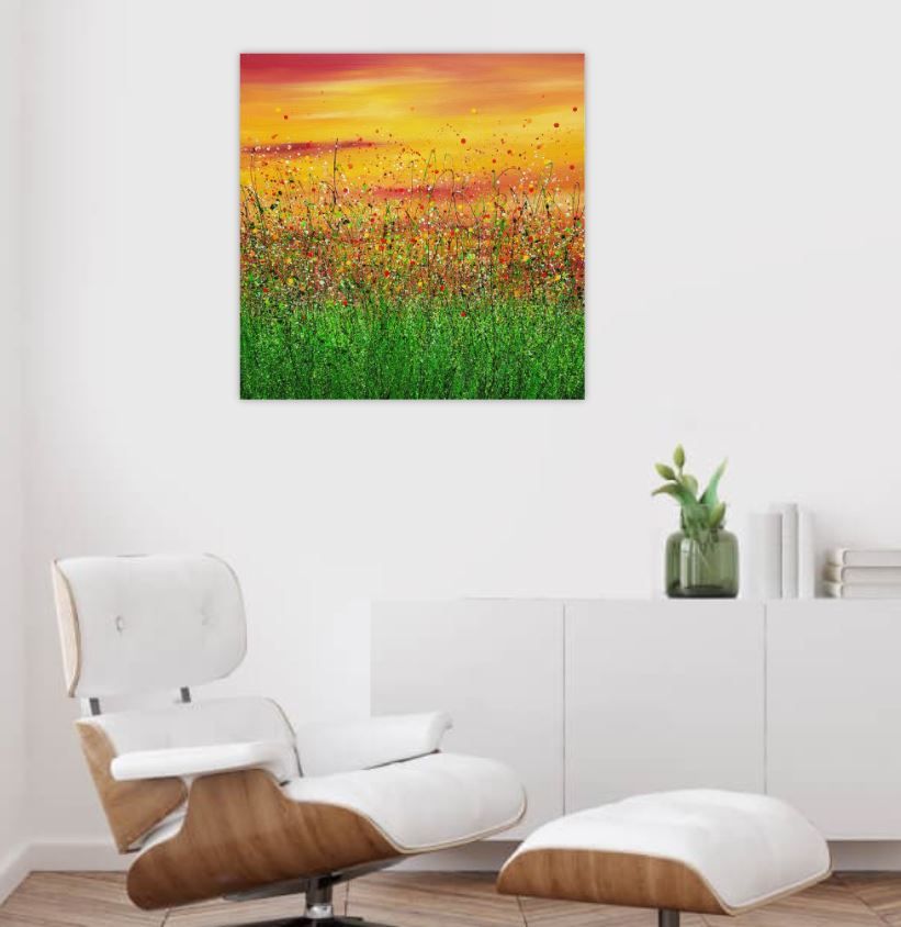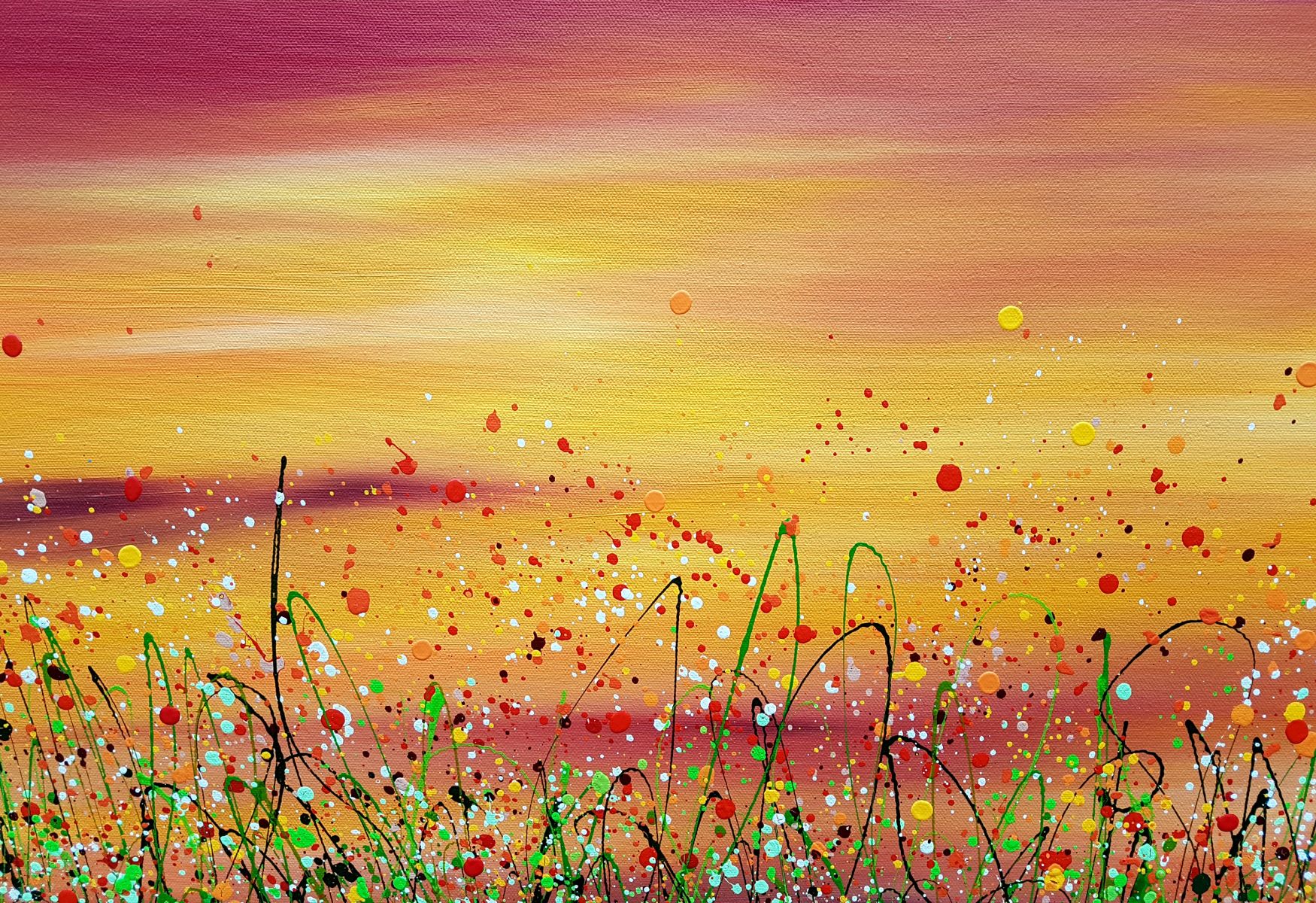 Red Sky In The Morning #10 An Original semi-abstract painting by Lucy Moore. Using her signature string grass technique Lucy has created a semi-abstract twist to her classic meadow paintings. This piece would brighten any home or office, bring a little of the outside inside. Lucy Moore comments "I have