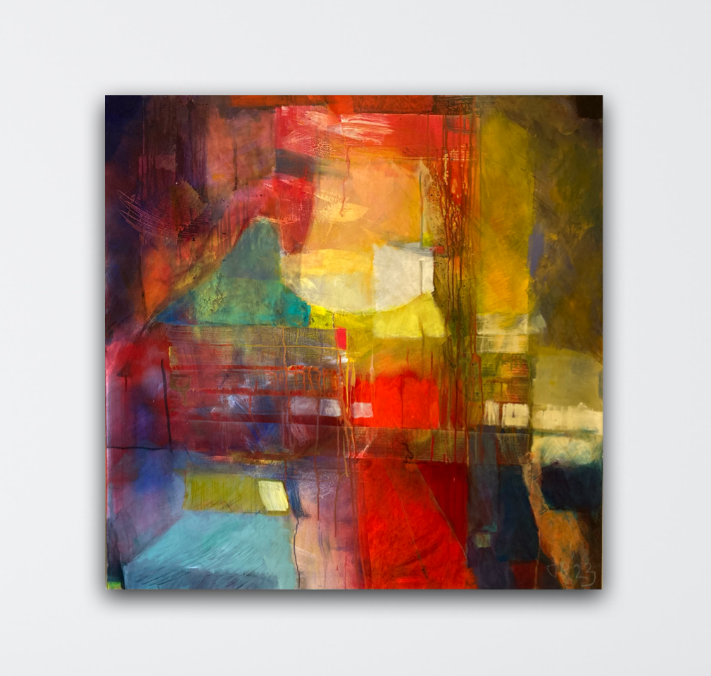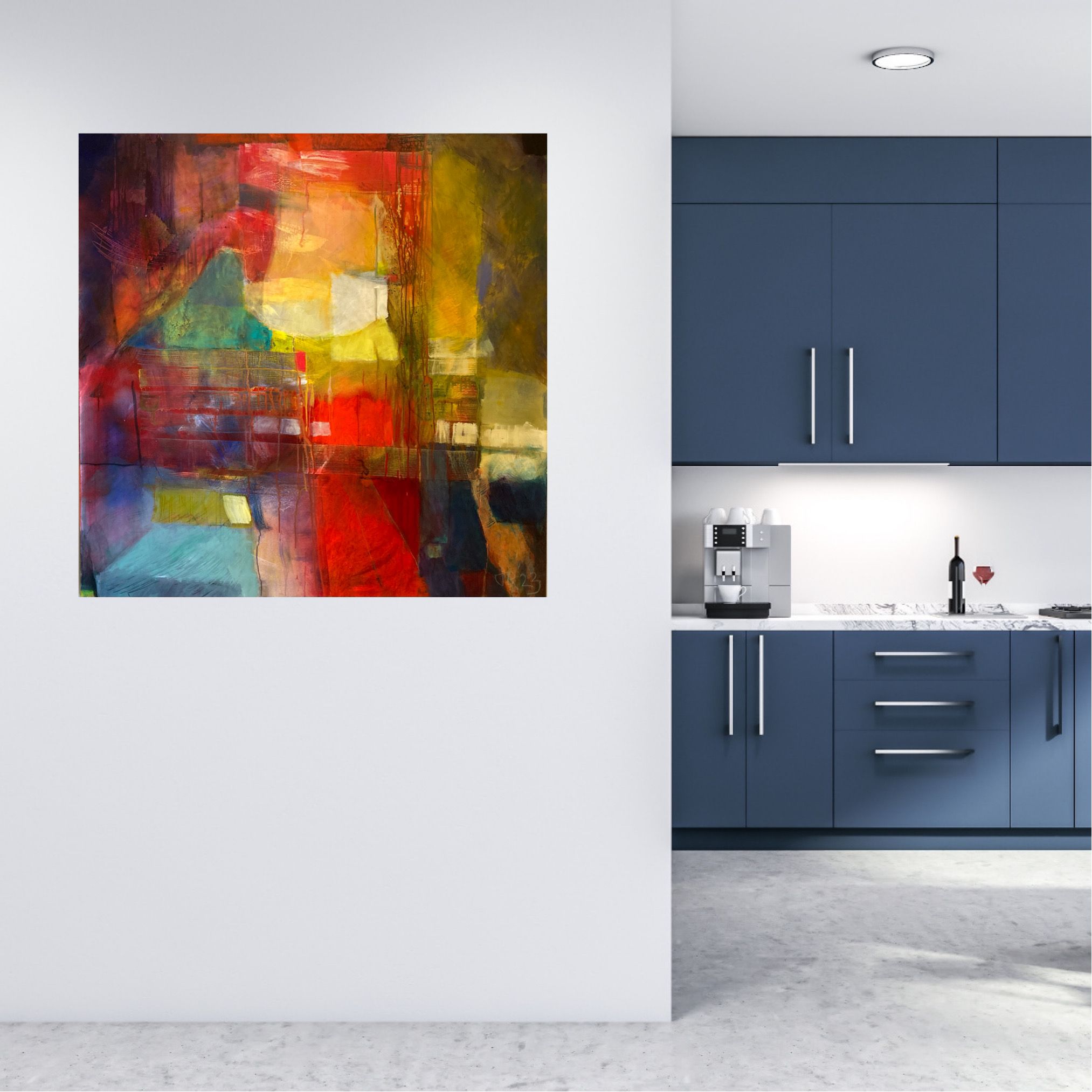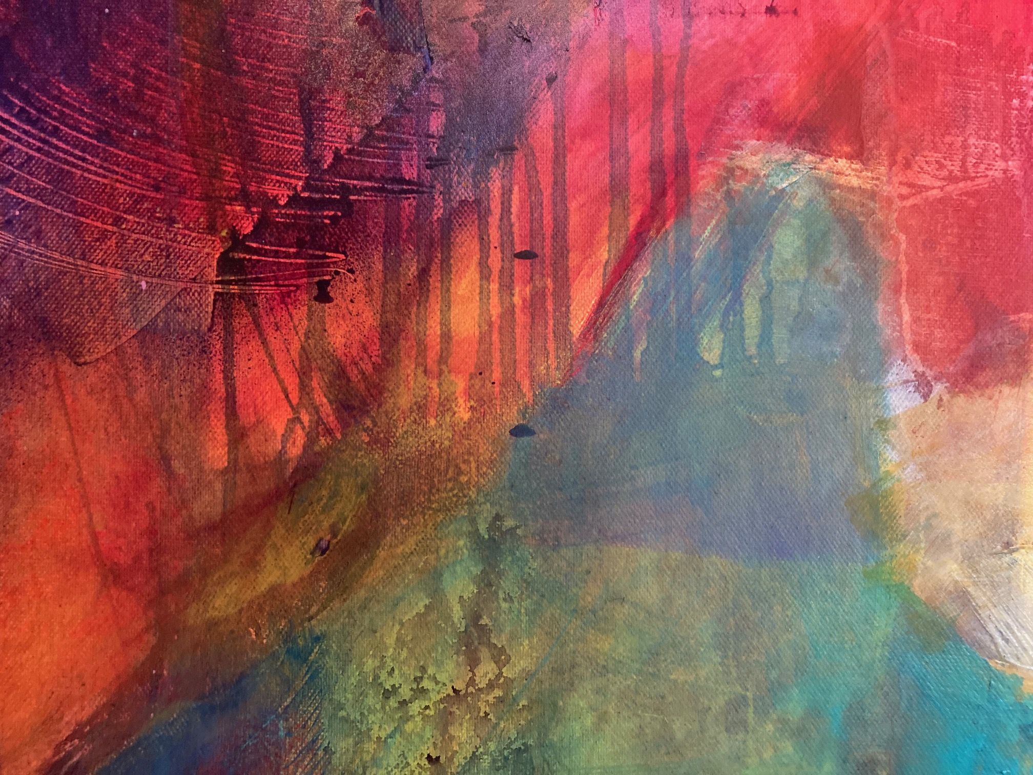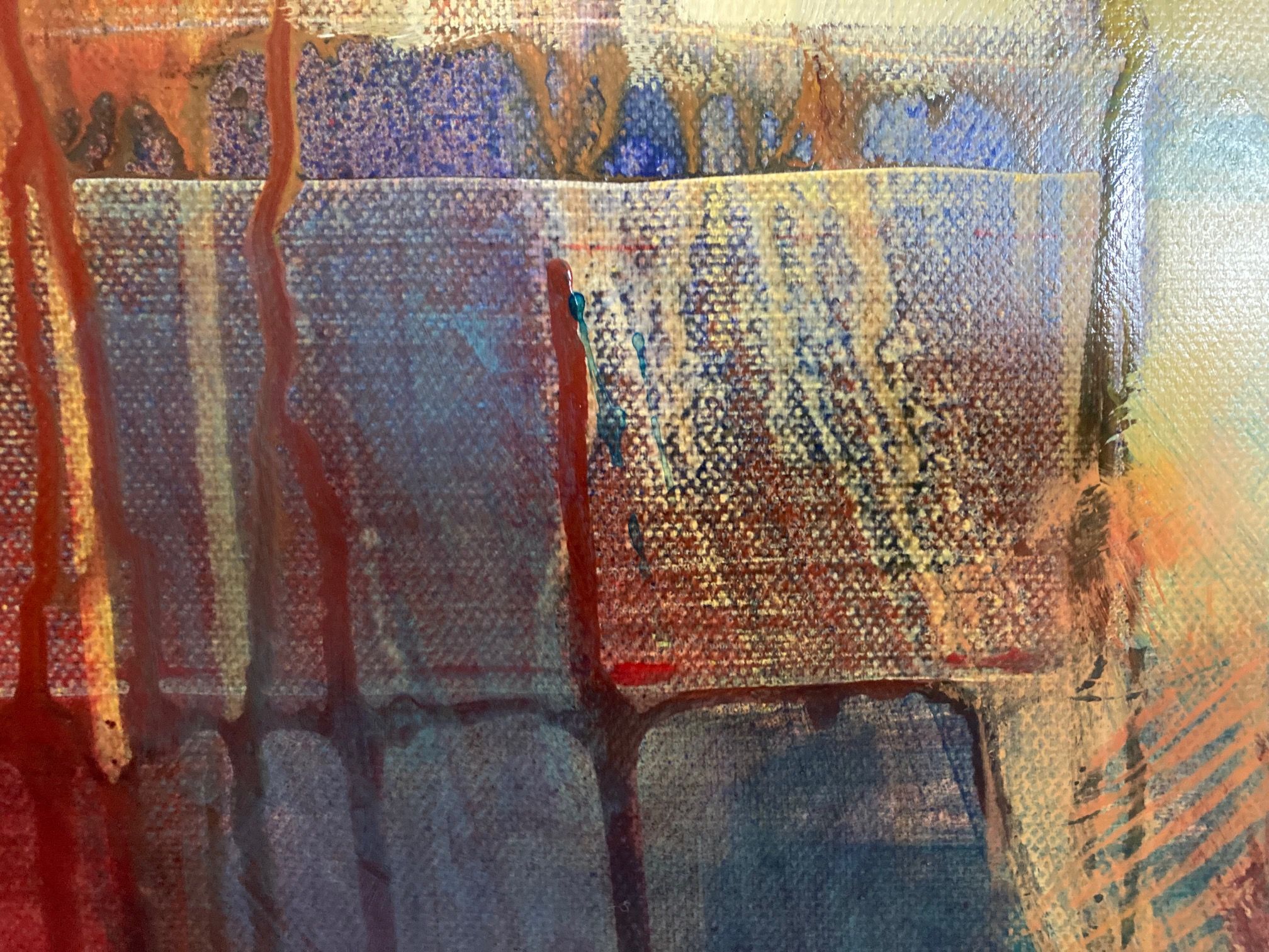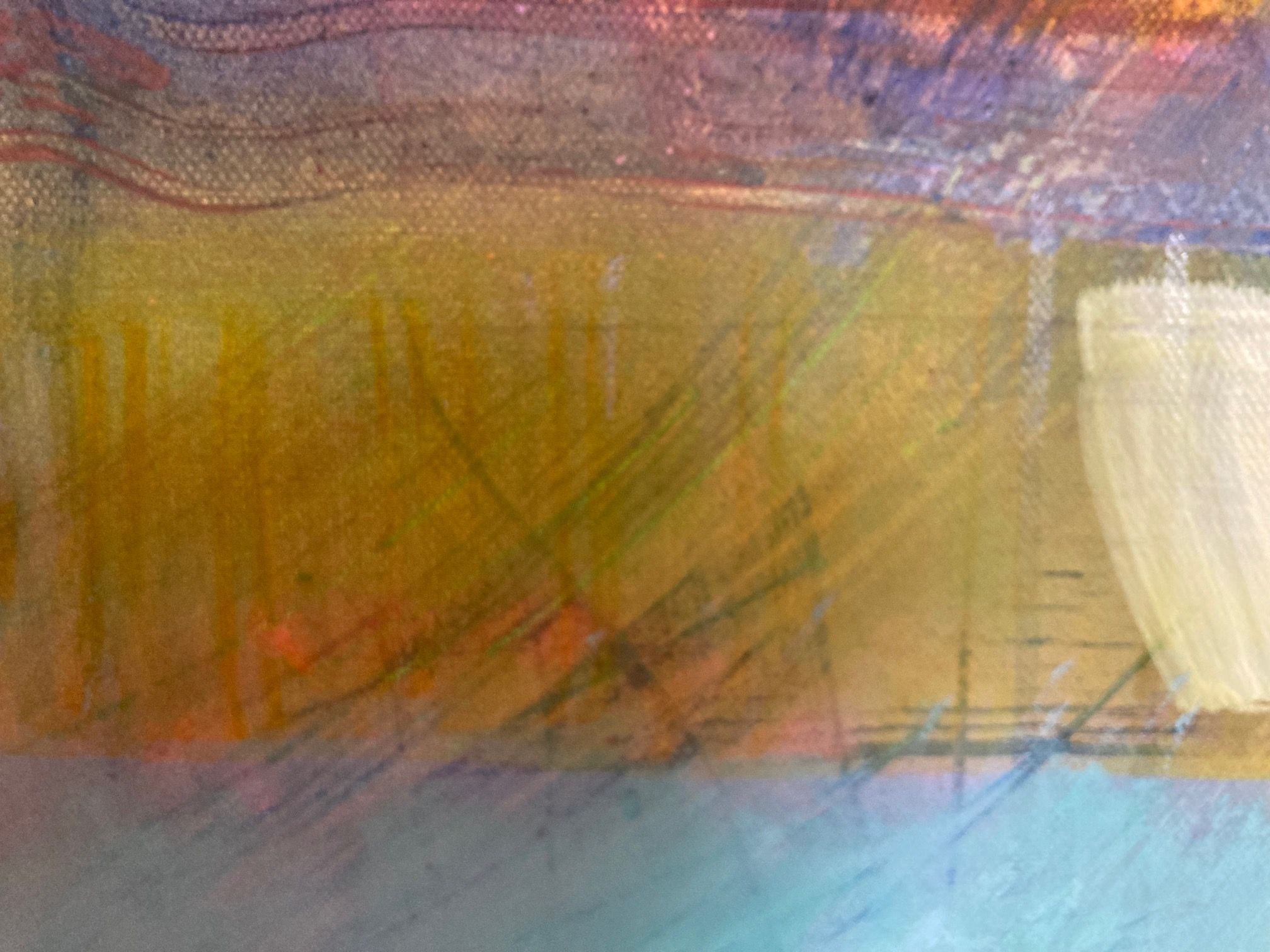 This painting and 'Passion Wave' are pure abstracts, demonstrating the effects of different attitudes. Whilst 'Passion Wave' reflects anticipation, liveliness, and happiness, 'Release' echoes the contentment when passion has passed. Whilst being an active painting, something that reflects the the changing nature of positive feeling, you an feel the restoration,