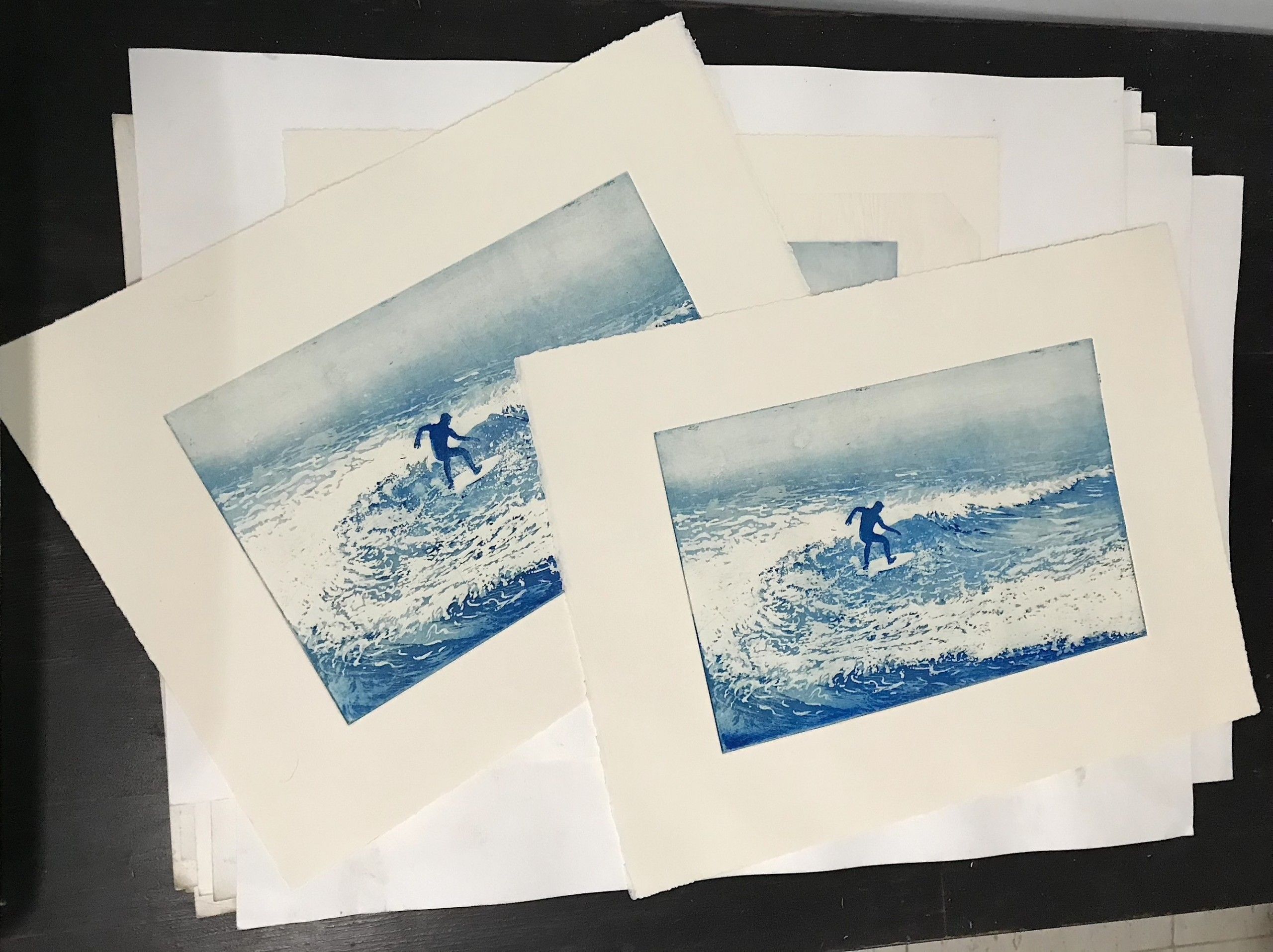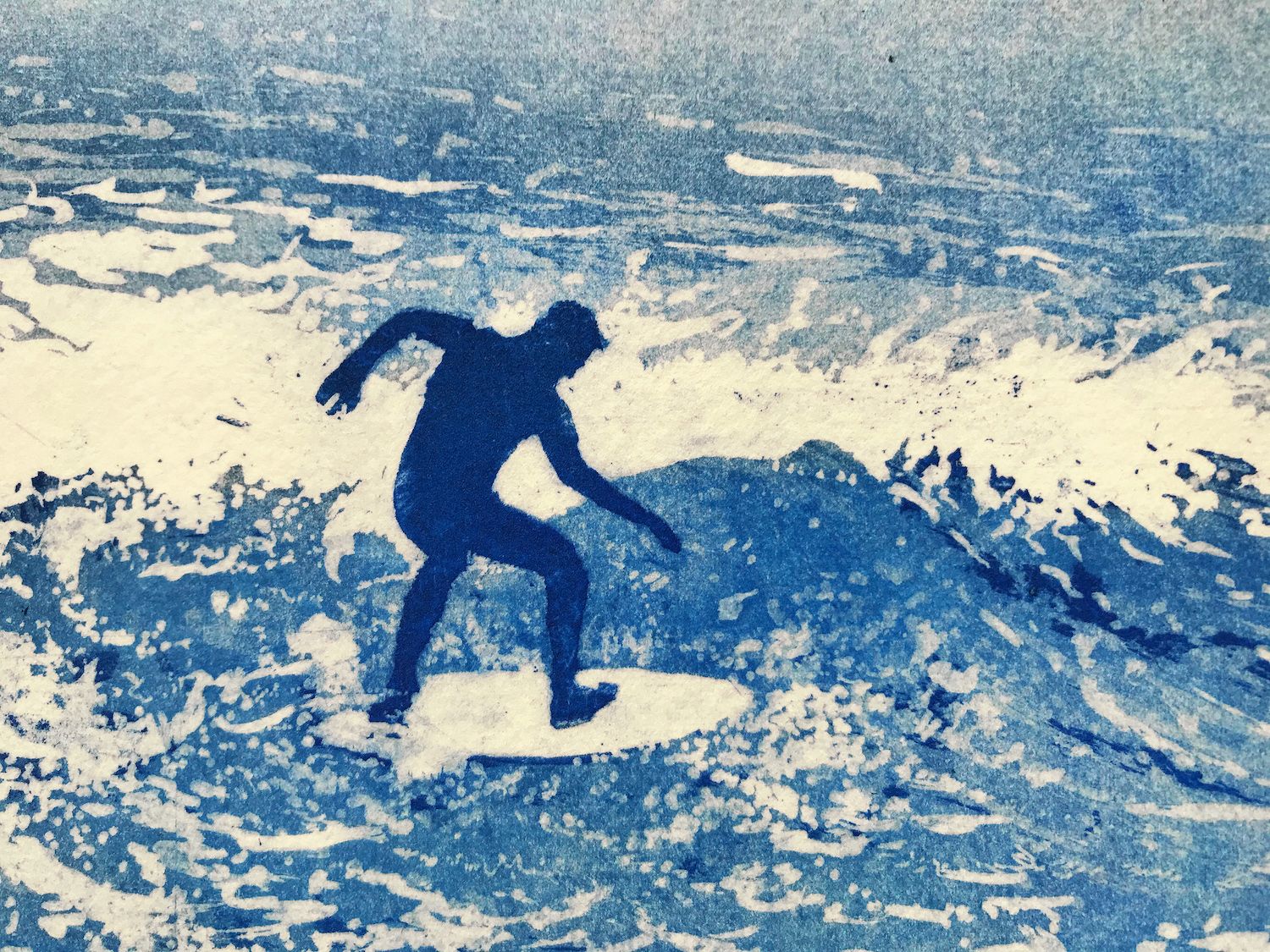 Tim Southall lives and works in Cadiz, Spain and just 3 miles from the Atlantic Ocean and a number of well-known surfing beaches. Many of his works are inspired by the sea. ‘Riding the Wave’ depicts the exhilarating freedom and action of a surfer duelling with the power and energy
