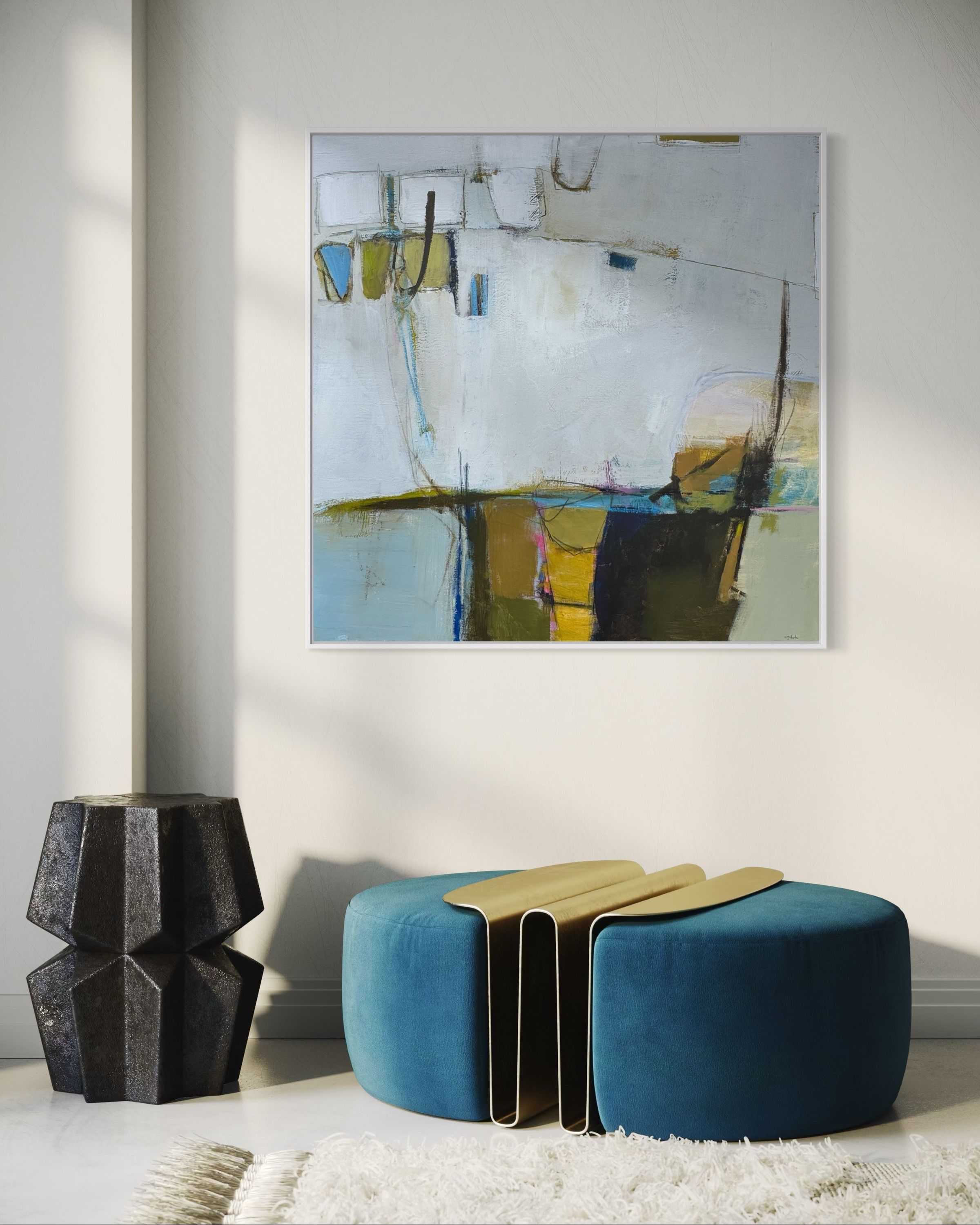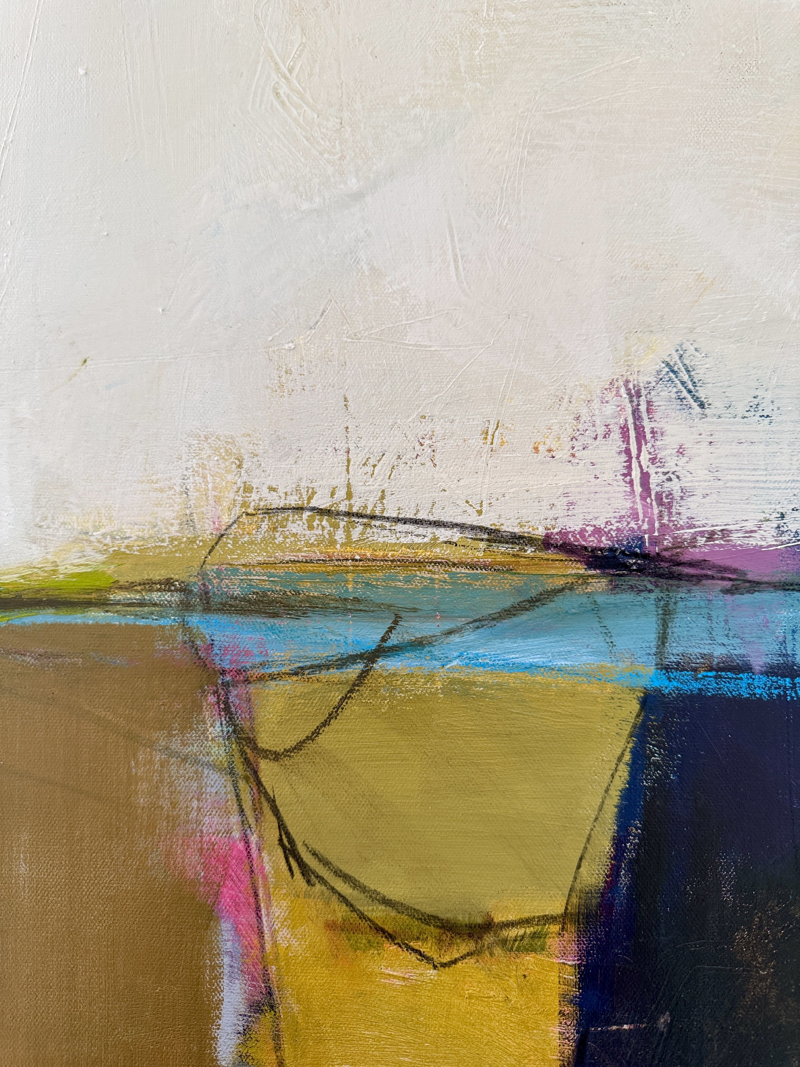 Focusing on the moments of placing colour, shape and texture on the canvas this painting is about being present - life is about taking moments to be present.